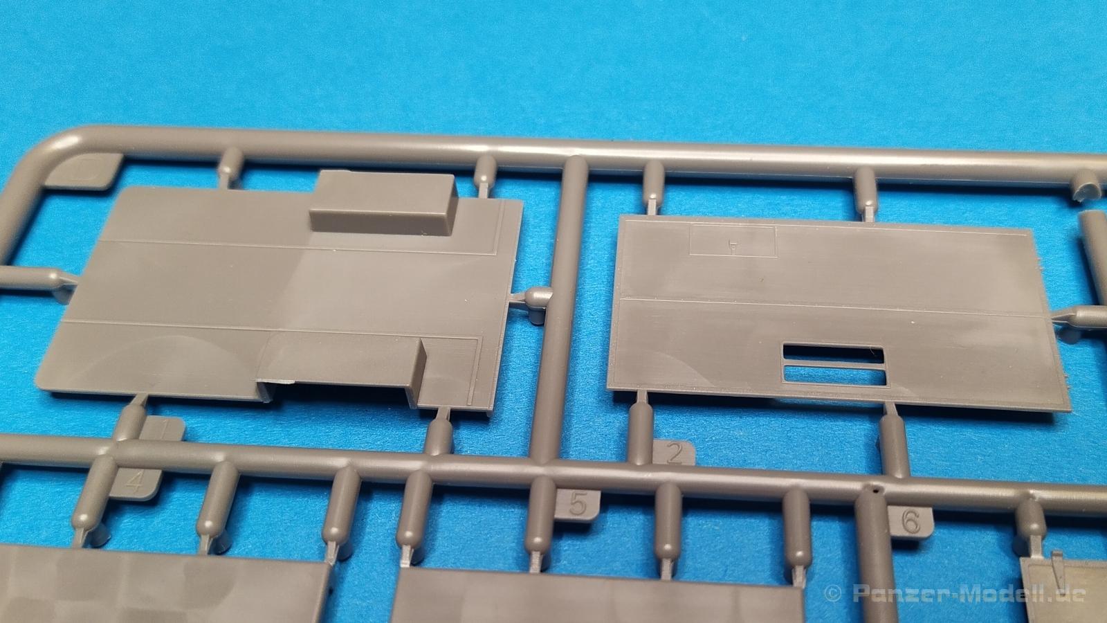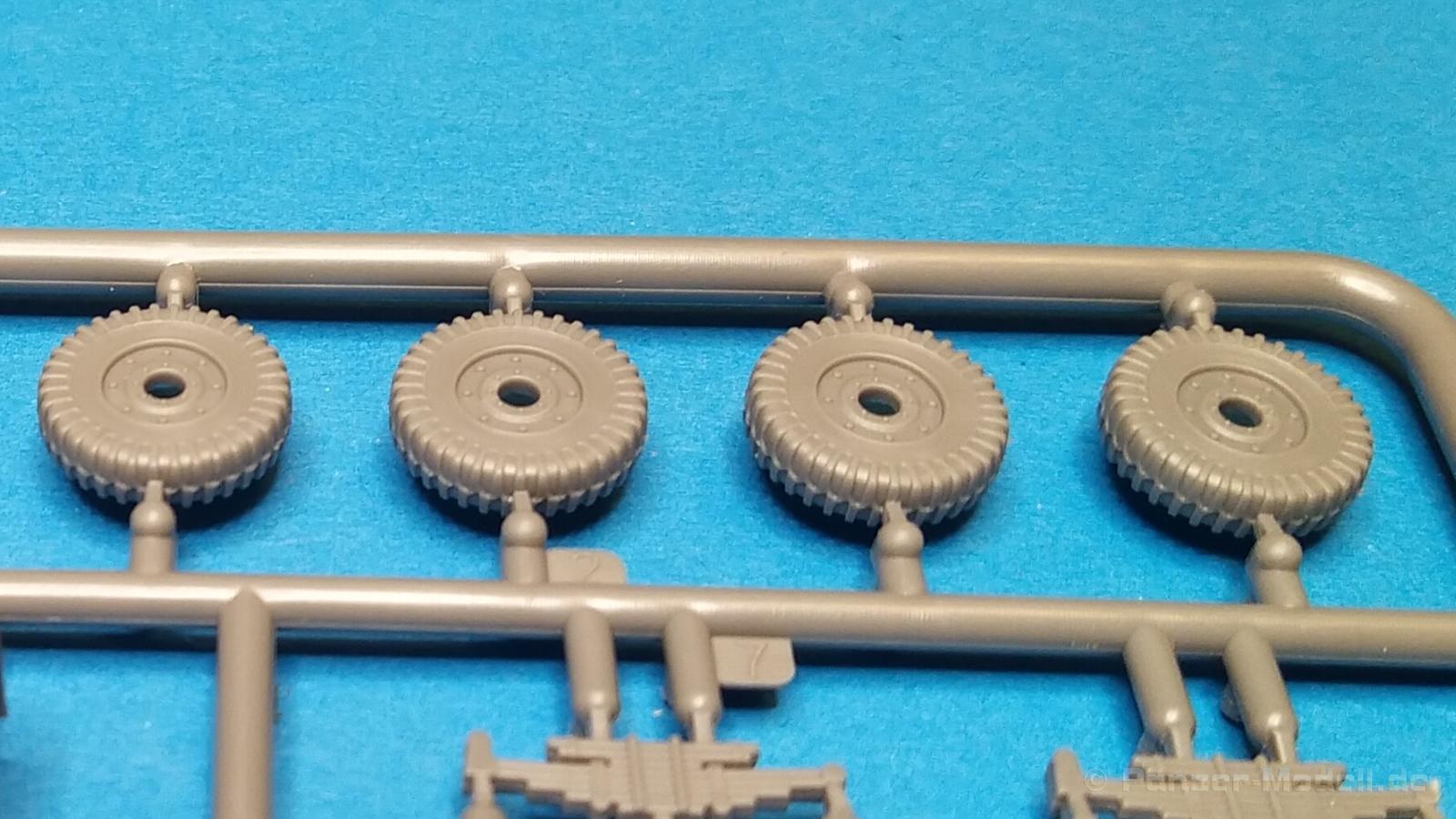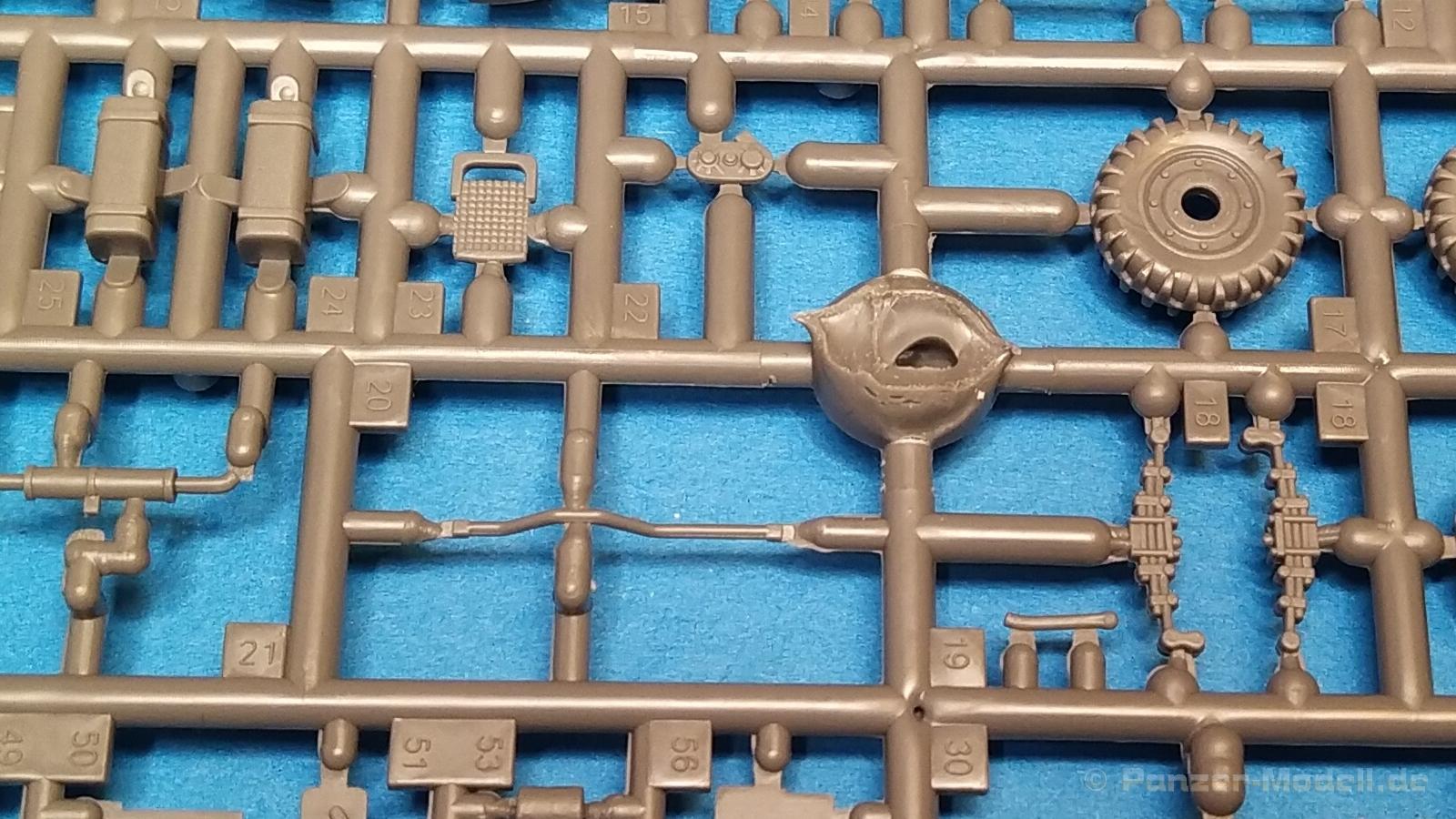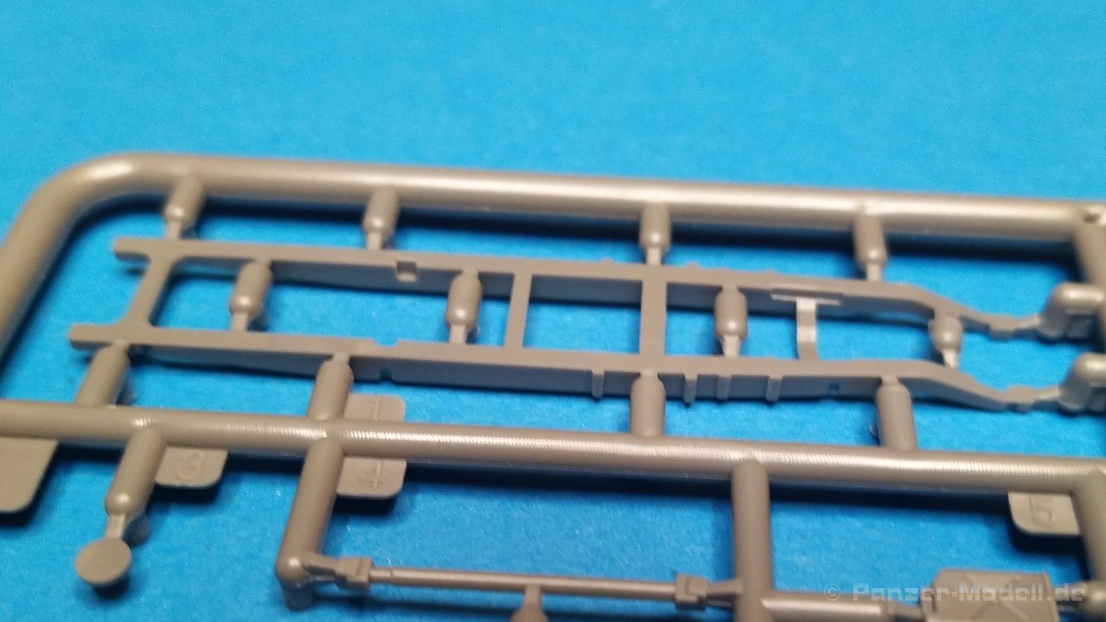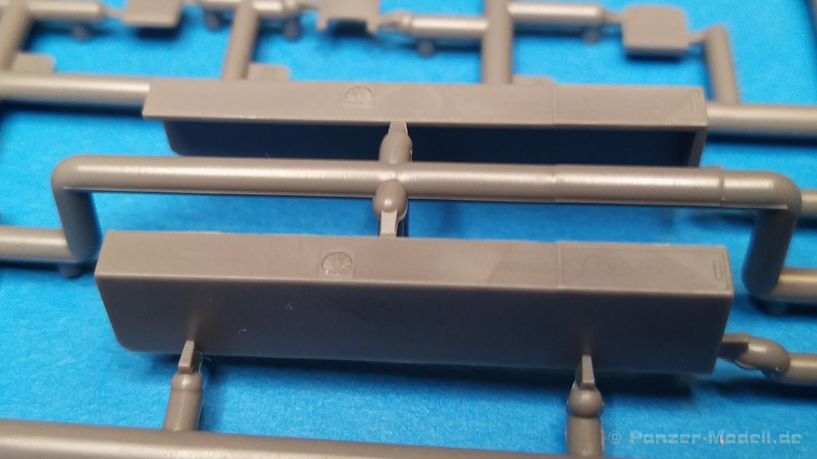 Die von IBG gewohnte Qualität in Detailierung und Gravierung der Teile ist auch bei diesem Bausatz wieder zu bewundern. Die Abspritzung der Bauteile ist tadellos. Alle Angüsse sind so gewählt, dass man diese gut entfernen kann. Nennenswerte Auswerfermarken an später sichtbaren Stellen sind nicht zu finden. Es gibt ältere vom Grundbausatz stammende Spritzlinge (ohne Bezeichnung) und neue Bauteile (Spritzlinge mit Bezeichnung). Wichtige und entscheidende Bauteile dieser Version wie die Räder, Rahmen und der Kofferaufbau wurden als neue Teile / Spritzlinge beigelegt. Dankenswerterweise ist der neue verlängerte Leiterrahmen als ein zusammenhängendes Bauteil konstruiert. So ist ein Ausrichten von Einzelteilen nicht nötig und der weitere Aufbau steht so auf einem soliden geraden „Fundament“. Genauso wie bei der Version „Office Lorry“ besitzt die Fahrerkabine auch hier eine Inneneinrichtung mit Pedalerie und Lenkrad. Konstruktionsbedingt lassen sich die Türen leider auch nicht geöffnet darstellen um später einen Blick darauf beim fertigen Modell zu ermöglichen. Auch die bekannte einfache Motornachbildung ist wieder vorhanden. Fotoätzteile kommen erst beim Bau des Kofferaufbaus und der Reserveradhalterung zum Einsatz. Sie sind aber nicht optional zu Plastikteilen zu verwenden, sondern werden immer zum Bau benötigt. Im Innenraum muss z.B. ein Regal aus diesem Material hergestellt werden. Und auch die Reserveradhalterung ist ein Modell am Modell aus PE-Teilen. Dünnwandige Schmutzfänger unter der Kabine und vorgenannte Dinge bewirken aber einen sehr hohen Grad an Feinheit und Detaillierung. Beim Kofferaufbau kann man die Hecktüren offen oder geschlossen bauen. Hier könnte man evtl. auch das Kofferdach lose auflegen um später einen besseren Blick auf den Innenraum zu erhalten. Alle Fenster des Bausatzes liegen als vorgezeichnete markierte Elemente auf einem Klarsichtfilm bei. IBG-typisch ist die übersichtliche Bauanleitung zweisprachig in polnisch und englisch ausgelegt. Auf der ersten Seite findet man eine Übersicht der enthaltenen Decals, Fotoätzteile, Klarsichtfilms und der insgesamt acht enthaltenen Spritzlinge. Mit einer Tabelle mit Farbangaben für die Hersteller Vallejo, Hataka, Life Color, Mr. Hobby, Lifecolor und AK Interactive endet die Einleitung. Auf der nächsten Seite beginnt auch schon die eigentliche Bauanleitung, die sich in 17 Baustufen gliedert. Einfarbige 3D-Zeichnungen pro Baustufe zeigen Schritt für Schritt der Weg zum fertigen Modell. Der Zusammenbau startet in Baustufe 1 mit dem Bau der Vorderachse, gefolgt von der Hinterachse in Baustufe 2. Die Motornachbildung wird in Baustufe 3 behandelt. Dann geht’s auch schon an den Zusammenbau der Fahrerkabine. Die Arbeiten dazu laufen bis in Baustufe 6. Dankenswerterweise wird am Ende eines Teilbereichs (z.B. Fahrerkabine) immer eine Zeichnung des fertigen Zustandes mit dargestellt. Mit dem Fahrgestell bzw. Leiterrahmen und den dazugehörigen Anbauteilen wie Achsaufhängung, Tanks, Stoßstange, etc. beschäftigen sich die Baustufen 7 bis 10. Den Abschluss bildet hier in Baustufe 10 die Montage der Räder. Ab der Baustufe 11 beschäftigen wir uns dann mit der Kabine und hier dann auch das erste Mal mit den enthaltenen Fotoätzteilen. Ein Regal muss dazu sauber und ordentlich gefaltet werden um eine korrekte „gerade“ Form zu erhalten. Alle anderen „Einbauten“ wie z.B. die Sitz- bzw. Liegebänke sind aus Plastikteilen zusammenzusetzen. Hier ist es bestimmt von Vorteil eine Teilbemalung des Kofferaufbauinnenraums durchzuführen, bevor man am Schluss dort nur schwer an Details herankommt. In den folgenden Baustufen werden dann nach und nach die Wände es Kofferaufbaus mit Details und Fenstern versehen und das ganze am Ende der Baustufe 14 mit dem Einbau der Türen komplettiert. In Baustufe 15 werden noch Teile unter dem Aufbau ergänzt und im Folgenden mit der sehr filigranen Reserveradhalterung schließlich in Baustufe 17 mit dem Fahrgestell vereinigt. Das Ende der Bauanleitung zeigt dann noch eine Zeichnung des fertig zusammengebauten Modells. Zu guter Letzt folgt auf der Rückseite der Anleitung ein Bemalungs- und Markierungsvorschlag: 1. Chevrolet C60L, ohne Kennzeichen, unbekannte Einheit, unbekannter Ort, unbekannter Zeitpunkt, einfarbig oliv drab Der mit nur zwei roten Kreuzen sehr übersichtliche Decalbogen kommt auf einem hellblauen Trägerpapier daher, augenscheinlich fällt kein Versatz beim Druck der Rotkreuzmarkierungen auf. Fahrzeugkennzeichen sind leider Fehlanzeige. Mein Fazit: Schlag auf Schlag folgen bei IBG Models weitere Versionen der bekannten Canadian Military Pattern Trucks (CMP) aus der Zeit des zweiten Weltkrieges im Maßstab 1:72. Ich bin gespannt welche Versionen noch erscheinen. Bei diesem Bausatz wurden Teile des bekannten Grundbausatzes mit neuen Teilen für den Aufbau und feiner detaillierten Rädern zu einer neuen Fahrzeugvariante zusammengestellt. Hier nun in der Variante des „San-Koffers“, der sicherlich auf vielen Dioramen seinen Platz finden wird. Die Detaillierung des Kofferaufbaus mit einigen Fotoätzteilen ist hervorragend, wenn auch z. B. die zu „faltende“ Reserveradhalterung für den ein oder anderen Modellbauer etwas abschreckend ist. Aber zu dem Bausatzpreis kann man sich ruhig einmal genauer mit dem Thema beschäftigen. Der Preis für die dargebotene Zusammenstellung und Qualität von Spritzgussteilen und Fotoätzteilen sind absolut ok. Die zu verwendenden Fotoätzteile machen den Bausatz sicherlich eher für den fortgeschrittenen Modellbauer geeignet. Für den aufgerufenen Preis von 15,50 Euro eine absolute Kaufempfehlung!