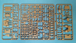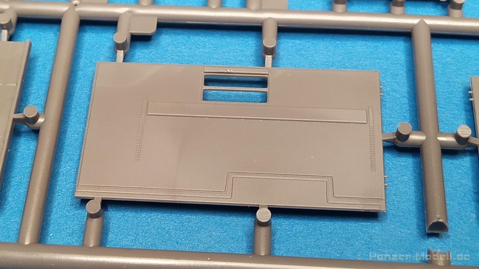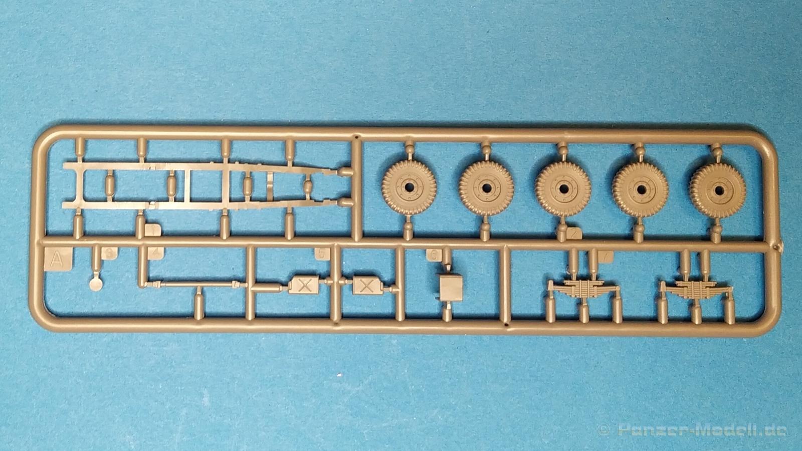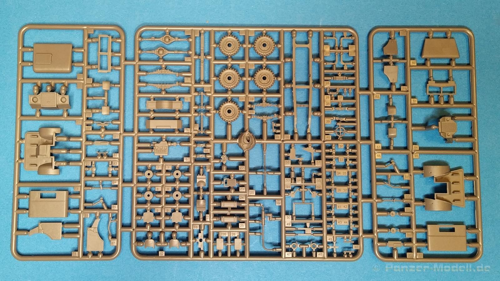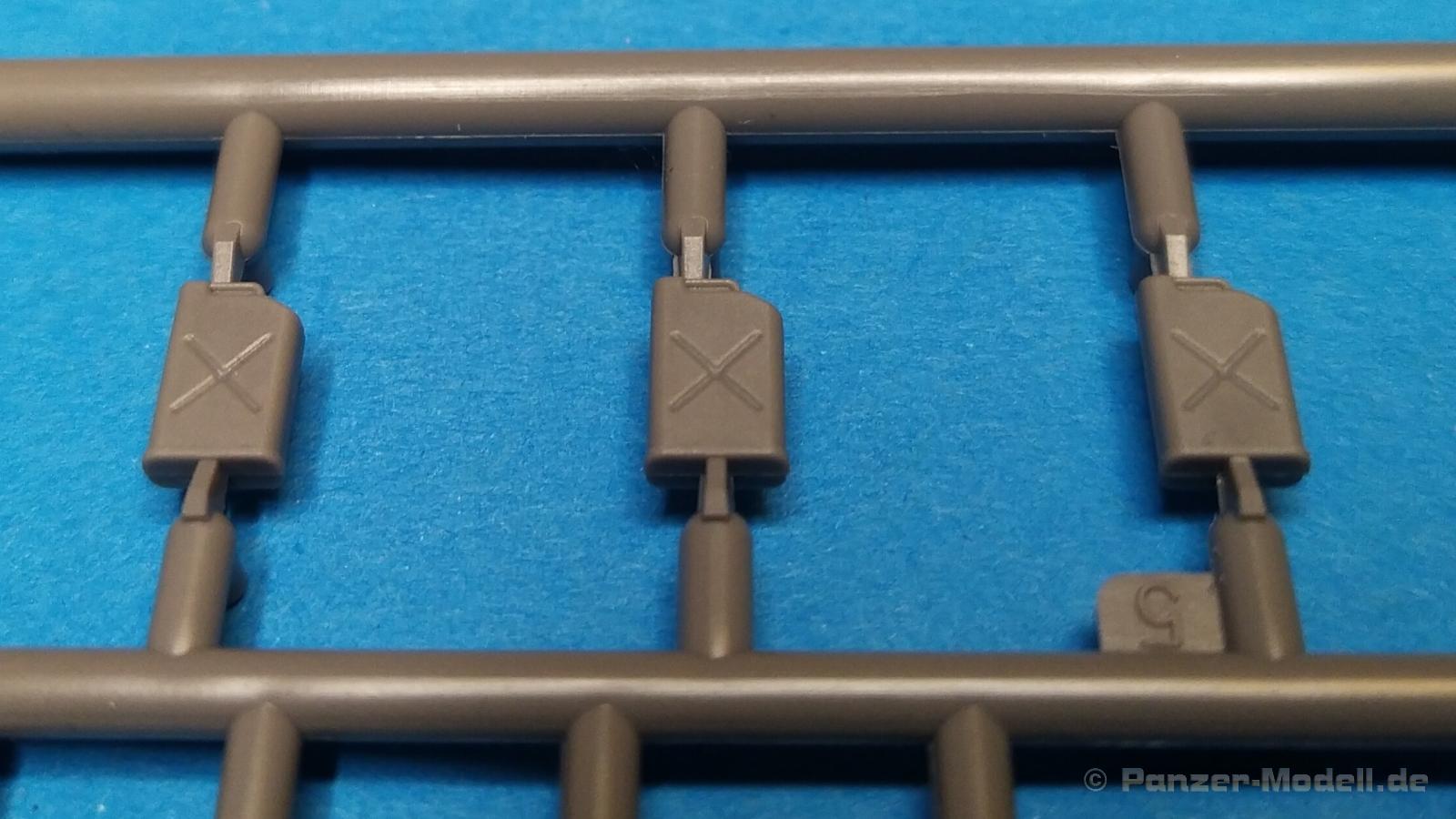 Die von IBG gewohnte Qualität in Detailierung und Gravierung der Teile ist auch bei diesem Bausatz wieder zu bewundern. Die Abspritzung der Bauteile ist tadellos. Alle Angüsse sind so gewählt, dass man diese gut entfernen kann. Nennenswerte Auswerfermarken an später sichtbaren Stellen sind nicht zu finden. Es gibt ältere vom Grundbausatz stammende Spritzlinge (ohne Bezeichnung) und neue Bauteile (Spritzlinge mit Bezeichnung). Wichtige und entscheidende Bauteile dieser Version wie die Räder, Rahmen und der Kofferaufbau wurden als neue Teile / Spritzlinge beigelegt. Dankenswerterweise ist der neue verlängerte Leiterrahmen als ein zusammenhängendes Bauteil konstruiert. So ist ein Ausrichten von Einzelteilen nicht nötig und der weitere Aufbau steht so auf einem soliden geraden „Fundament“. Genauso wie bei der Version „Office Lorry“ besitzt die Fahrerkabine auch hier eine Inneneinrichtung mit Pedalerie und Lenkrad. Konstruktionsbedingt lassen sich die Türen leider auch nicht geöffnet darstellen um später einen Blick darauf beim fertigen Modell zu ermöglichen. Auch die bekannte einfache Motornachbildung ist wieder vorhanden. Fotoätzteile kommen erst beim Bau des Kofferaufbaus und der Reserveradhalterung zum Einsatz. Sie sind aber nicht optional zu Plastikteilen zu verwenden, sondern werden immer zum Bau benötigt. Im Innenraum muss z.B. ein Regal aus diesem Material hergestellt werden. Und auch die Reserveradhalterung ist ein Modell am Modell aus PE-Teilen. Dünnwandige Schmutzfänger unter der Kabine und vorgenannte Dinge bewirken aber einen sehr hohen Grad an Feinheit und Detaillierung. Beim Kofferaufbau kann man die Hecktüren offen oder geschlossen bauen. Hier könnte man evtl. auch das Kofferdach lose auflegen um später einen besseren Blick auf den Innenraum zu erhalten. Alle Fenster des Bausatzes liegen als vorgezeichnete markierte Elemente auf einem Klarsichtfilm bei. IBG-typisch ist die übersichtliche Bauanleitung zweisprachig in polnisch und englisch ausgelegt. Auf der ersten Seite findet man eine Übersicht der enthaltenen Decals, Fotoätzteile, Klarsichtfilms und der insgesamt acht enthaltenen Spritzlinge. Mit einer Tabelle mit Farbangaben für die Hersteller Vallejo, Hataka, Life Color, Mr. Hobby, Lifecolor und AK Interactive endet die Einleitung. Auf der nächsten Seite beginnt auch schon die eigentliche Bauanleitung, die sich in 17 Baustufen gliedert. Einfarbige 3D-Zeichnungen pro Baustufe zeigen Schritt für Schritt der Weg zum fertigen Modell. Der Zusammenbau startet in Baustufe 1 mit dem Bau der Vorderachse, gefolgt von der Hinterachse in Baustufe 2. Die Motornachbildung wird in Baustufe 3 behandelt. Dann geht’s auch schon an den Zusammenbau der Fahrerkabine. Die Arbeiten dazu laufen bis in Baustufe 6. Dankenswerterweise wird am Ende eines Teilbereichs (z.B. Fahrerkabine) immer eine Zeichnung des fertigen Zustandes mit dargestellt. Mit dem Fahrgestell bzw. Leiterrahmen und den dazugehörigen Anbauteilen wie Achsaufhängung, Tanks, Stoßstange, etc. beschäftigen sich die Baustufen 7 bis 10. Den Abschluss bildet hier in Baustufe 10 die Montage der Räder. Ab der Baustufe 11 beschäftigen wir uns dann mit der Kabine und hier dann auch das erste Mal mit den enthaltenen Fotoätzteilen. Ein Regal muss dazu sauber und ordentlich gefaltet werden um eine korrekte „gerade“ Form zu erhalten. Alle anderen „Einbauten“ wie z.B. die Sitz- bzw. Liegebänke sind aus Plastikteilen zusammenzusetzen. Hier ist es bestimmt von Vorteil eine Teilbemalung des Kofferaufbauinnenraums durchzuführen, bevor man am Schluss dort nur schwer an Details herankommt. In den folgenden Baustufen werden dann nach und nach die Wände es Kofferaufbaus mit Details und Fenstern versehen und das ganze am Ende der Baustufe 14 mit dem Einbau der Türen komplettiert. In Baustufe 15 werden noch Teile unter dem Aufbau ergänzt und im Folgenden mit der sehr filigranen Reserveradhalterung schließlich in Baustufe 17 mit dem Fahrgestell vereinigt. Das Ende der Bauanleitung zeigt dann noch eine Zeichnung des fertig zusammengebauten Modells. Zu guter Letzt folgt auf der Rückseite der Anleitung ein Bemalungs- und Markierungsvorschlag: 1. Chevrolet C60L, ohne Kennzeichen, unbekannte Einheit, unbekannter Ort, unbekannter Zeitpunkt, einfarbig oliv drab Der mit nur zwei roten Kreuzen sehr übersichtliche Decalbogen kommt auf einem hellblauen Trägerpapier daher, augenscheinlich fällt kein Versatz beim Druck der Rotkreuzmarkierungen auf. Fahrzeugkennzeichen sind leider Fehlanzeige. Mein Fazit: Schlag auf Schlag folgen bei IBG Models weitere Versionen der bekannten Canadian Military Pattern Trucks (CMP) aus der Zeit des zweiten Weltkrieges im Maßstab 1:72. Ich bin gespannt welche Versionen noch erscheinen. Bei diesem Bausatz wurden Teile des bekannten Grundbausatzes mit neuen Teilen für den Aufbau und feiner detaillierten Rädern zu einer neuen Fahrzeugvariante zusammengestellt. Hier nun in der Variante des „San-Koffers“, der sicherlich auf vielen Dioramen seinen Platz finden wird. Die Detaillierung des Kofferaufbaus mit einigen Fotoätzteilen ist hervorragend, wenn auch z. B. die zu „faltende“ Reserveradhalterung für den ein oder anderen Modellbauer etwas abschreckend ist. Aber zu dem Bausatzpreis kann man sich ruhig einmal genauer mit dem Thema beschäftigen. Der Preis für die dargebotene Zusammenstellung und Qualität von Spritzgussteilen und Fotoätzteilen sind absolut ok. Die zu verwendenden Fotoätzteile machen den Bausatz sicherlich eher für den fortgeschrittenen Modellbauer geeignet. Für den aufgerufenen Preis von 15,50 Euro eine absolute Kaufempfehlung!