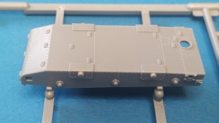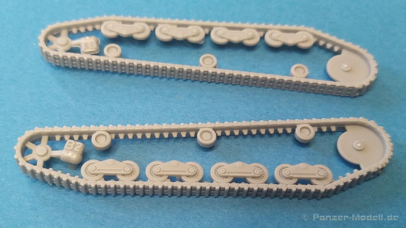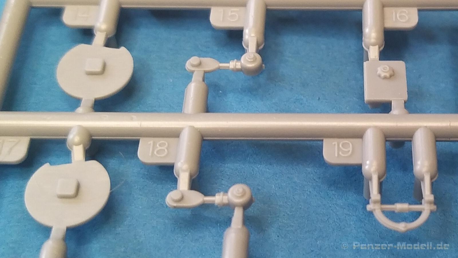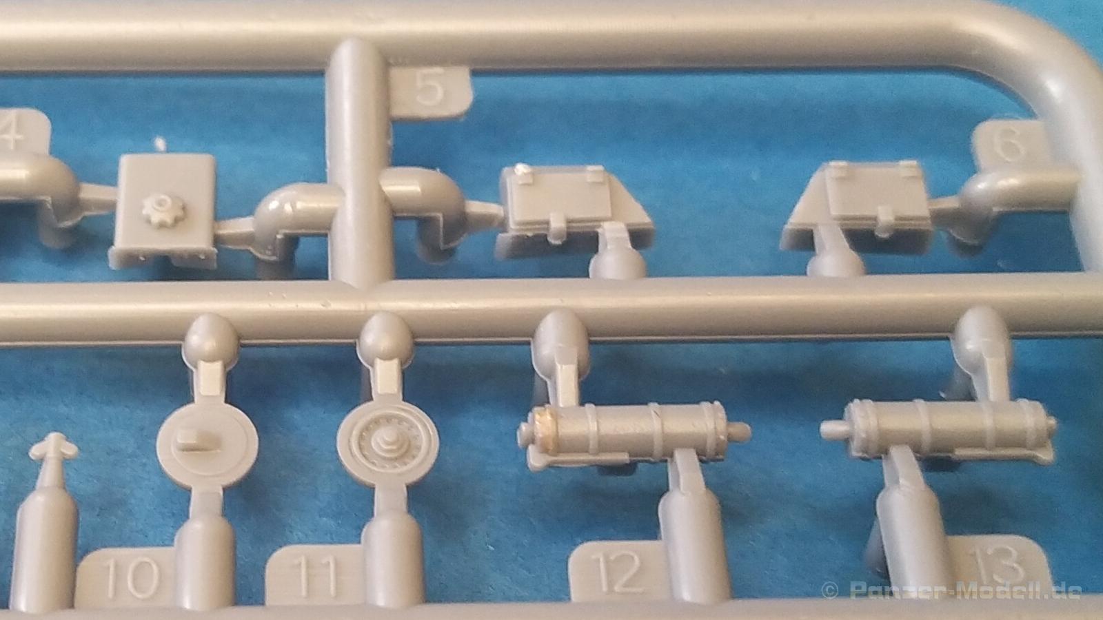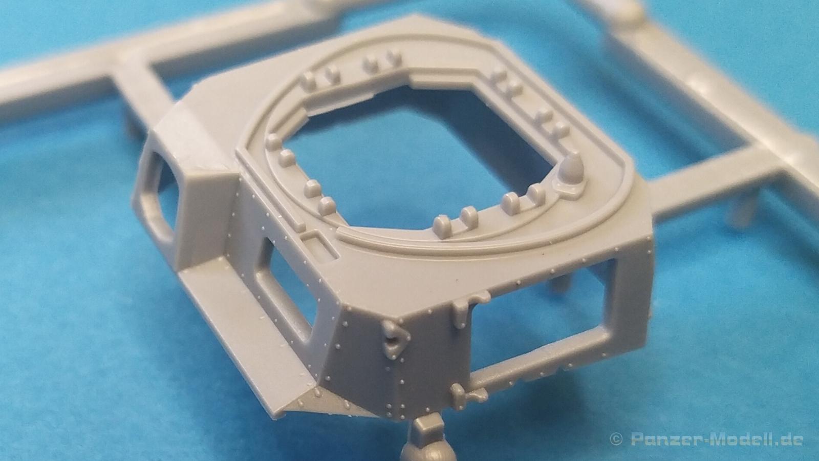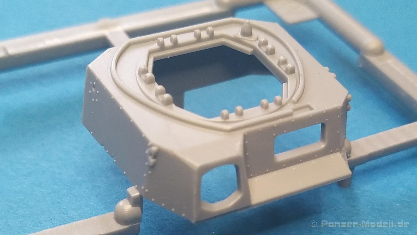 Ähnlich wie bei der Kampfpanzervariante (Nr. 72125) ist die gewohnt hohe IBG-Qualität auch bei diesem Bausatz wieder vor zu finden. Auswerfermarken auf später sichtbaren Stellen, Grat oder Fischhäute an den Bauteilen sind auch hier Fehlanzeige. Die Proportionen des Originals mit vielen Ecken und Kanten werden gut wiedergegeben. Die bei diesem Fahrzeugtyp bzw. der Bauweise markanten Nieten sind gut ausgeführt und wissen von der Darstellung zu gefallen. Wie von der vorangegangenen Version des Bausatzes bekannt sind die Ketten auch hier wieder in einem Stück gegossen und mit einer Hälfte der Laufrollen versehen. Der Zusammenbau wird dadurch wesentlich vereinfacht ohne dabei aber auf Details verzichten zu müssen. Fotoätzteile sind nur für wirklich wichtige Bauteile vorgesehen. Sie sind aber nicht optional zu Plastikteilen zu verwenden, sondern werden immer zum Bau benötigt. Die Fahrersichtluke sowie die Luken auf der Panzerkastenoberseite können offen oder geschlossen verbaut werden. Wenn man vorsichtig mit Kleber umgeht, bleiben der Bug-MG´s beweglich. Die Art und der Aufbau der Bauanleitung ist, wie von IBG gewohnt, wiedermal vorbildlich. Die wenigen Seiten lassen dank der detaillierten Darstellungen keine Fragen offen. Alle Hinweise sind in polnischer und englischer Sprache vorhanden. Auf der ersten Seite findet man eine Übersicht der enthaltenen Decals und Fotoätzteile. Gefolgt von den Farbangaben in tabellarischer Form für die Hersteller Vallejo, Hataka, Life Color, Mr. Hobby, AK Interactive und Mission Models. Die Übersicht der enthaltenen Spritzlinge folgt dann auf der nächsten Seite. Im Anschluss startet der Zusammenbau, der sich in nur 8 Baustufen gliedert. Hier wird pro Baustufe anhand von schwarz-weißen 3D-Zeichnungen der Weg zum fertigen Modell dargestellt bzw. erklärt. Der Bau des Modells startet in den Baustufen 1 und 2 mit der Komplettierung des rechten und linken Kettenlaufwerkes. Hier müssen nur noch die zweiten Hälften von Laufrollen, Antriebsrad und Spannrolle an die in einem Stück gegossenen Ketten angebracht werden. In Baustufe 3 wird die Wanne aus einer nahezu einteiligen Unterwanne und dreiteiliger Oberwanne zusammensetzt. Im Anschluss wird das Panzerkastenoberteil mit Anbauteilen wie dem Doppel-MG ergänzt um es dann in Baustufe 5 auf die Wanne zu setzten. Nach Anbringen der Spannradhalterung und einiger Staukisten können in Baustufe 6 schon die Laufwerke an der Wanne befestigt werden. In Baustufe 7 und der letzten Baustufe 8 werden weitere Anbauteile wie Aufstiegshilfen, Auspufftöpfe, Werkzeuge, etc. angebracht. Danach folgt eine Seite mit weiteren verfügbaren Bausätzen des Herstellers IBG im Maßstab 1:72. Den Abschluss der Bauanleitung bilden dann die 3 Bemalungs- und Markierungsvorschläge. Folgende Markierungs- bzw. Bemalungsvarianten werden gezeigt: