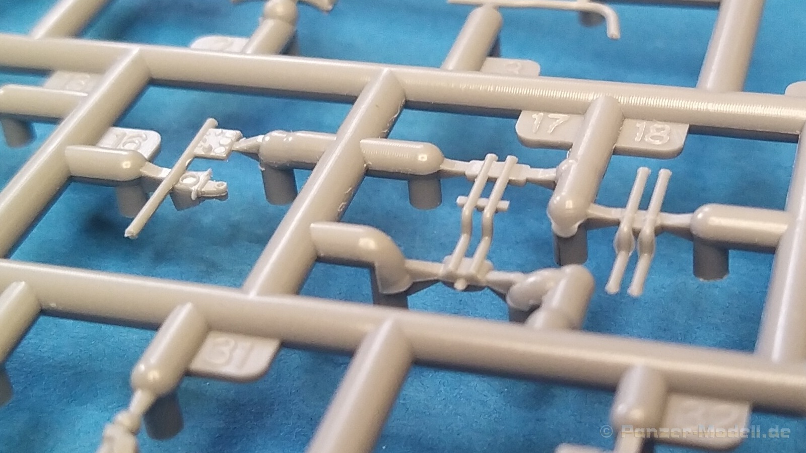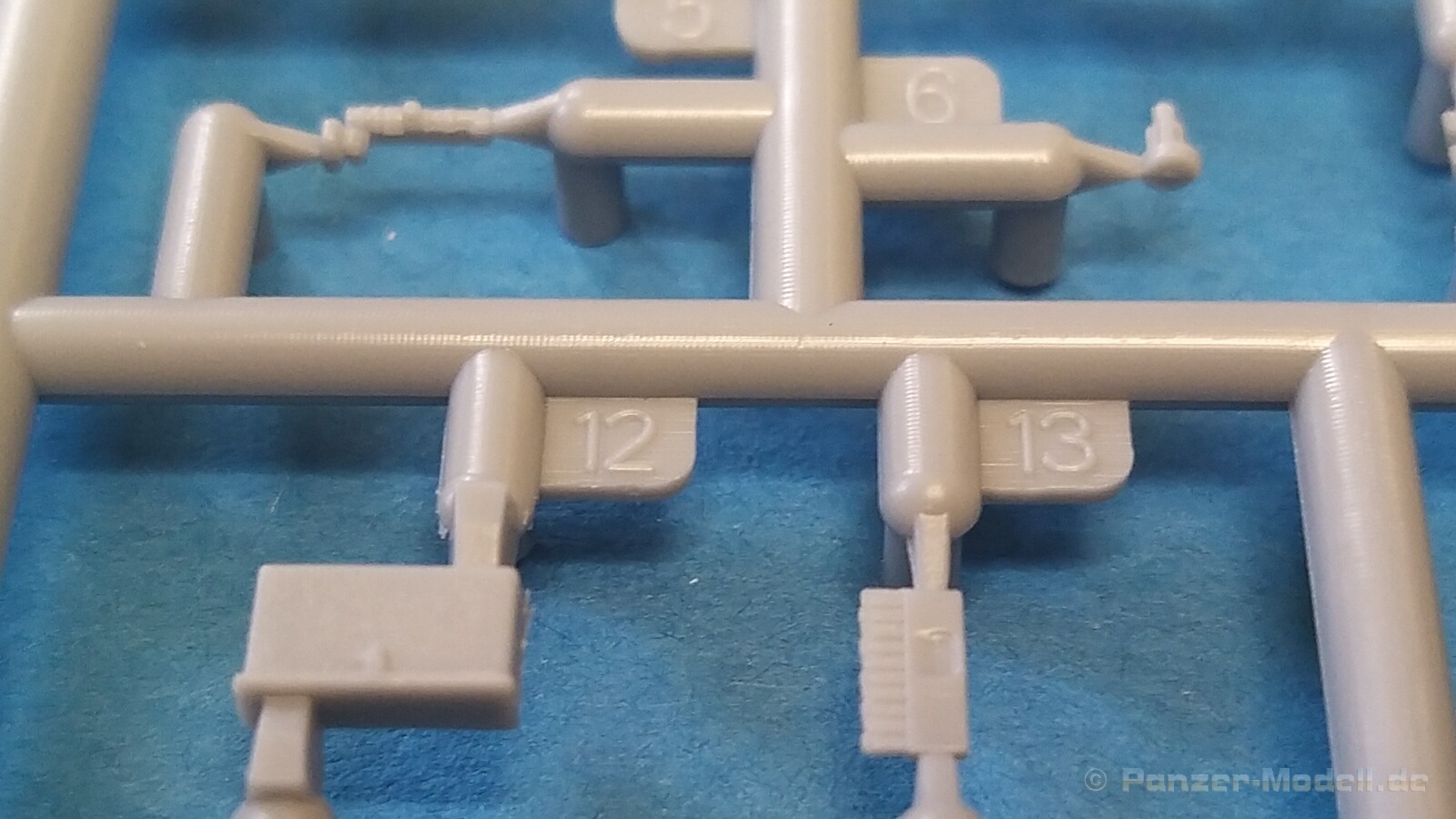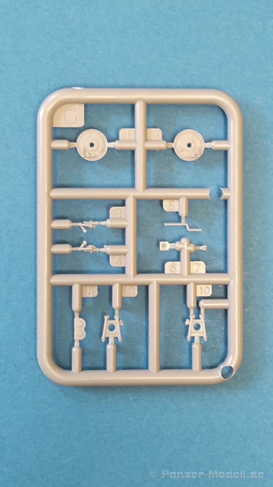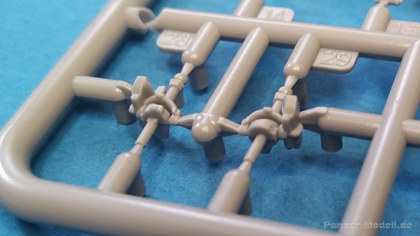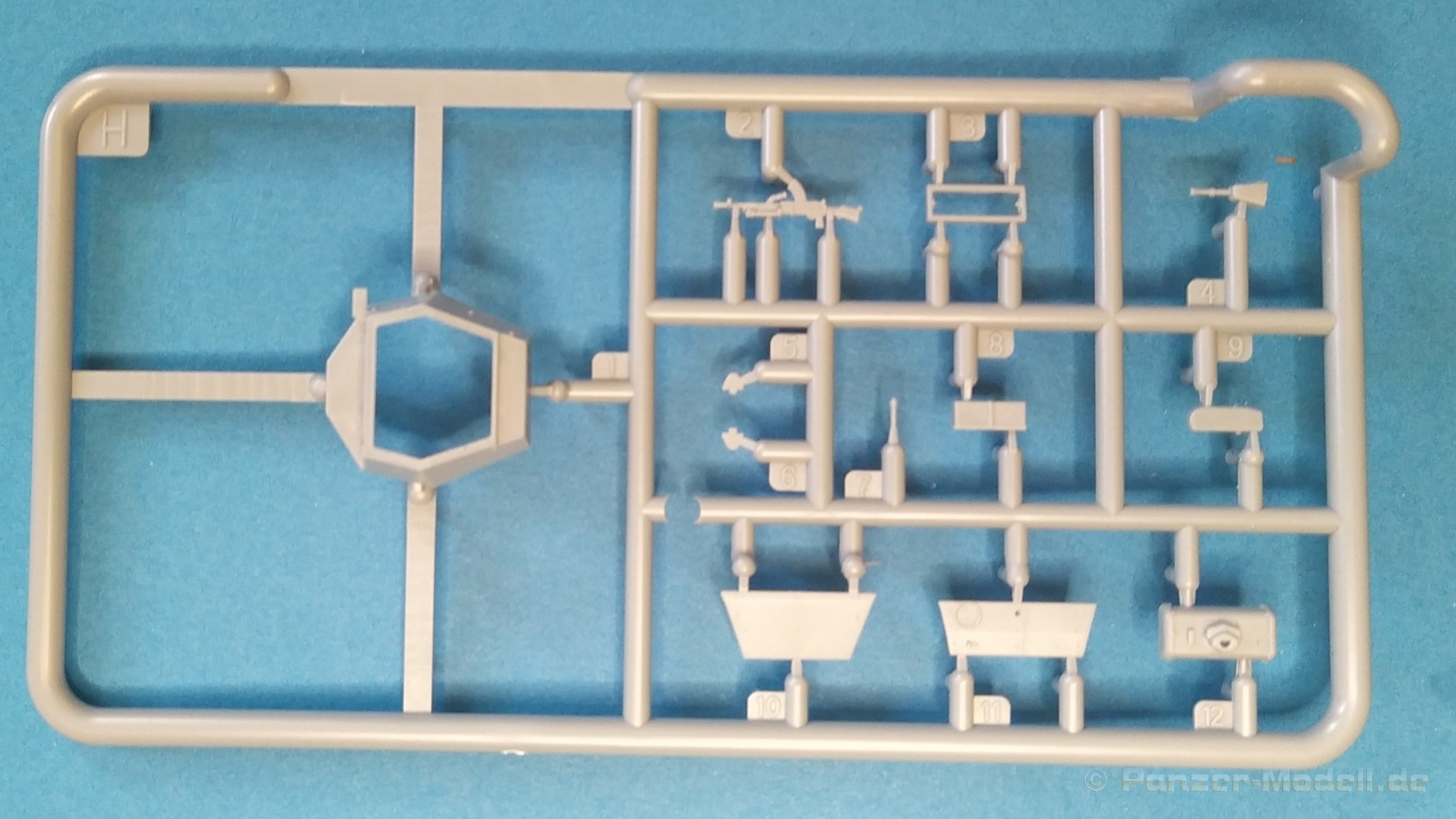 Nach Öffnen des Kartons finden wir wiedermal, wie von IBG gewohnt, sehr gut ausgeführte Spritzlinge in grauer Farbe ohne Grat oder Fischhäute an den Bauteilen. Nennenswerte Auswerfermarken sind auf später sichtbaren Stellen nicht zu finden. Die Details sind scharfkantig fein ausgeführt und die Proportionen des Originalfahrzeuges werden gut wiedergegeben. Die bei diesem Radfahrzeug markanten Räder sind bis auf die innenliegende Bremse einteilig ausgeführt ohne dabei auf Details verzichten zu müssen. Das Profil ist sehr gut wiedergegeben. Der Panzerkastenaufbau links und rechts sind zusammen mit großen Teilen der Federn und Radaufhängungen jeweils ein zusammenhängendes Bauteil. Ein entscheidender Vorteil um die Ausrichtung der Räder beim Bau zu vereinfachen. Erfreulicherweise gibt es für das Fahrgestell und den Turm eine detaillierte Inneneinrichtung. So schaut man bei der offenen Darstellung der Turmluke nicht in ein leeres Fahrzeug. Hier wurden Lenkräder, Munitionshalterungen, Turmbühne, Sitzplätze, Funkgerät und sichtbare Teile der Bewaffnung im Turm umgesetzt. Die Fahrersichtluke kann genauso wie die Turmluke offen oder geschlossen montiert werden. Fotoätzteile sind nur für wirklich wichtige und filigrane Bauteile vorgesehen. Sie sind aber nicht optional zu Plastikteilen zu verwenden, sondern werden immer zum Bau benötigt und sorgen für zusätzliche Detaillierung. Die Darstellungen in der beiliegenden Bauanleitung lassen keine Fragen offen. Alle Hinweise sind wie gewohnt in polnischer und englischer Sprache vorhanden. Anders wie bei anderen Bausätzen des Herstellers, findet man diesmal erfreulicherweise auf der ersten Seite der Bauanleitung einen kurzen historischen Abriss zum Originalfahrzeug. Die zweite Seite zeigt eine Übersicht der enthaltenen Spritzlinge, Decals und Fotoätzteile. Eine gesonderte Darstellung des Innenraumes von Turm und Fahrgestell mit Farbangaben und zugehöriger Tabelle für die Hersteller Vallejo, Hataka, Life Color, Mr. Hobby, AK Interactive und Mission Models folgt auf Seite drei. Im Anschluss startet der Zusammenbau, der sich in 26 Baustufen gliedert. Hier wird pro Baustufe anhand von schwarz-weißen 3D-Zeichnungen der Weg zum fertigen Modell dargestellt bzw. erklärt. Der Bau des Modells startet in den Baustufen 1 und 2 mit der Komplettierung des Innenraums auf der Grundplatte des Fahrgestells. Die folgenden Baustufen zeigen das Anbringen der Teile des Panzerkastens. Hier ist es sinnvoll schon den Innenraum zu bemalen bevor er durch Dach und weitere Aufbauten nicht mehr erreicht werden kann. In Baustufe 6 und 7 wird die Radaufhängung montiert. Die eigentlich einteiligen Räder werden mit einem separaten Innenteil bzw. angedeuteter Bremse in Baustufe 8 ergänzt. Die Baustufen 9 bis 12 zeigen die Montage der Schutzbleche bzw. Radabdeckungen. Hier ist sorgfältiges Arbeiten gefragt. Fotoätzeile müssen rechtwinklig gebogen werden um damit dann die großen Plastikteile zu ergänzen, die dann wiederrum am Panzeraufbau angebracht werden sollen. Die Räder sollen in Baustufe 13 zusammen mit einem Satz Schmutzfänger montiert werden. Für die Lackierung würde ich sie hier aber noch nicht anbringen. Die folgenden Baustufen zeigen dann das Anbringen diverser kleiner und großer Anbauteile wie z.B. Kanister, Kisten etc. bis das Fahrzeug ohne Turm in Baustufe 17 nahezu komplett ist. Ab Baustufe 18 wird der Turm montiert. Nach Einbau des Funkgerätes im Turmheck auf dem Turmunterteil folgt im Weiteren der Einbau der Bewaffnung, Blende und Innendetaillierung des Turmoberteils. Baustufe 24 und 25 zeigen das Anbringen weiterer Details außen am Turm. Der Bau des Modells endet mit Aufsetzen des Turmes in Baustufe 26 und einer nachfolgenden 3D-Ansicht des fertig montierten Modells. Den Abschluss der Bauanleitung bilden dann die 4 Bemalungs- und Markierungsvorschläge. Folgende Markierungs- bzw. Bemalungsvarianten werden gezeigt:
