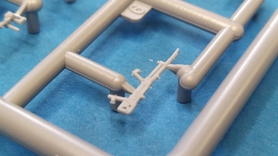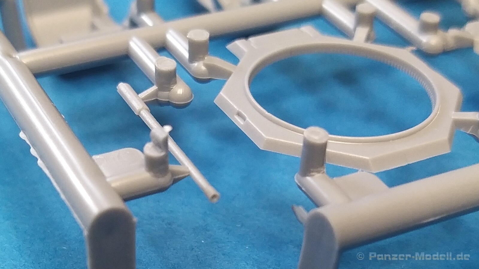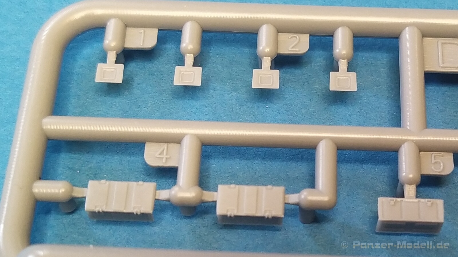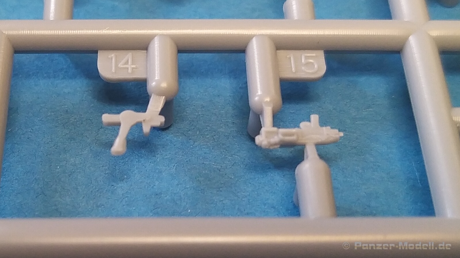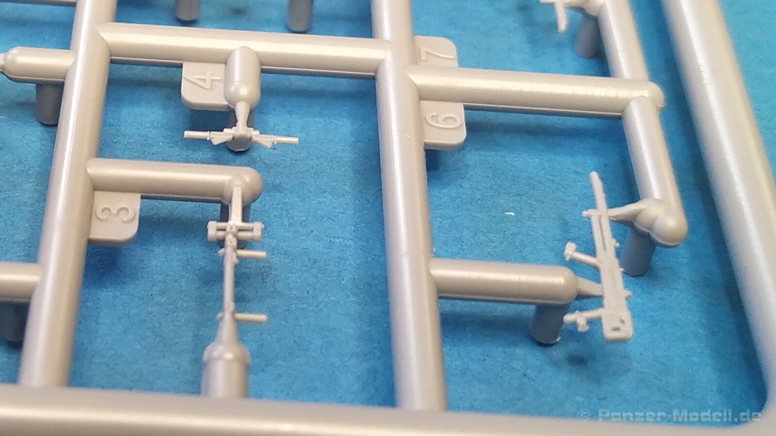 Nach Öffnen des Kartons finden wir wiedermal, wie von IBG gewohnt, sehr gut ausgeführte Spritzlinge in grauer Farbe ohne Grat oder Fischhäute an den Bauteilen. Nennenswerte Auswerfermarken sind auf später sichtbaren Stellen nicht zu finden. Die Details sind scharfkantig fein ausgeführt und die Proportionen des Originalfahrzeuges werden gut wiedergegeben. Die bei diesem Radfahrzeug markanten Räder sind bis auf die innenliegende Bremse einteilig ausgeführt ohne dabei auf Details verzichten zu müssen. Das Profil ist sehr gut wiedergegeben. Der Panzerkastenaufbau links und rechts sind zusammen mit großen Teilen der Federn und Radaufhängungen jeweils ein zusammenhängendes Bauteil. Ein entscheidender Vorteil um die Ausrichtung der Räder beim Bau zu vereinfachen. Erfreulicherweise gibt es für das Fahrgestell und den Turm eine detaillierte Inneneinrichtung. So schaut man bei der offenen Darstellung der Turmluke nicht in ein leeres Fahrzeug. Hier wurden Lenkräder, Munitionshalterungen, Turmbühne, Sitzplätze, Funkgerät und sichtbare Teile der Bewaffnung im Turm umgesetzt. Die Fahrersichtluke kann genauso wie die Turmluke offen oder geschlossen montiert werden. Fotoätzteile sind nur für wirklich wichtige und filigrane Bauteile vorgesehen. Sie sind aber nicht optional zu Plastikteilen zu verwenden, sondern werden immer zum Bau benötigt und sorgen für zusätzliche Detaillierung. Die Darstellungen in der beiliegenden Bauanleitung lassen keine Fragen offen. Alle Hinweise sind wie gewohnt in polnischer und englischer Sprache vorhanden. Anders wie bei anderen Bausätzen des Herstellers, findet man diesmal erfreulicherweise auf der ersten Seite der Bauanleitung einen kurzen historischen Abriss zum Originalfahrzeug. Die zweite Seite zeigt eine Übersicht der enthaltenen Spritzlinge, Decals und Fotoätzteile. Eine gesonderte Darstellung des Innenraumes von Turm und Fahrgestell mit Farbangaben und zugehöriger Tabelle für die Hersteller Vallejo, Hataka, Life Color, Mr. Hobby, AK Interactive und Mission Models folgt auf Seite drei. Im Anschluss startet der Zusammenbau, der sich in 26 Baustufen gliedert. Hier wird pro Baustufe anhand von schwarz-weißen 3D-Zeichnungen der Weg zum fertigen Modell dargestellt bzw. erklärt. Der Bau des Modells startet in den Baustufen 1 und 2 mit der Komplettierung des Innenraums auf der Grundplatte des Fahrgestells. Die folgenden Baustufen zeigen das Anbringen der Teile des Panzerkastens. Hier ist es sinnvoll schon den Innenraum zu bemalen bevor er durch Dach und weitere Aufbauten nicht mehr erreicht werden kann. In Baustufe 6 und 7 wird die Radaufhängung montiert. Die eigentlich einteiligen Räder werden mit einem separaten Innenteil bzw. angedeuteter Bremse in Baustufe 8 ergänzt. Die Baustufen 9 bis 12 zeigen die Montage der Schutzbleche bzw. Radabdeckungen. Hier ist sorgfältiges Arbeiten gefragt. Fotoätzeile müssen rechtwinklig gebogen werden um damit dann die großen Plastikteile zu ergänzen, die dann wiederrum am Panzeraufbau angebracht werden sollen. Die Räder sollen in Baustufe 13 zusammen mit einem Satz Schmutzfänger montiert werden. Für die Lackierung würde ich sie hier aber noch nicht anbringen. Die folgenden Baustufen zeigen dann das Anbringen diverser kleiner und großer Anbauteile wie z.B. Kanister, Kisten etc. bis das Fahrzeug ohne Turm in Baustufe 17 nahezu komplett ist. Ab Baustufe 18 wird der Turm montiert. Nach Einbau des Funkgerätes im Turmheck auf dem Turmunterteil folgt im Weiteren der Einbau der Bewaffnung, Blende und Innendetaillierung des Turmoberteils. Baustufe 24 und 25 zeigen das Anbringen weiterer Details außen am Turm. Der Bau des Modells endet mit Aufsetzen des Turmes in Baustufe 26 und einer nachfolgenden 3D-Ansicht des fertig montierten Modells. Den Abschluss der Bauanleitung bilden dann die 4 Bemalungs- und Markierungsvorschläge. Folgende Markierungs- bzw. Bemalungsvarianten werden gezeigt: