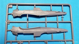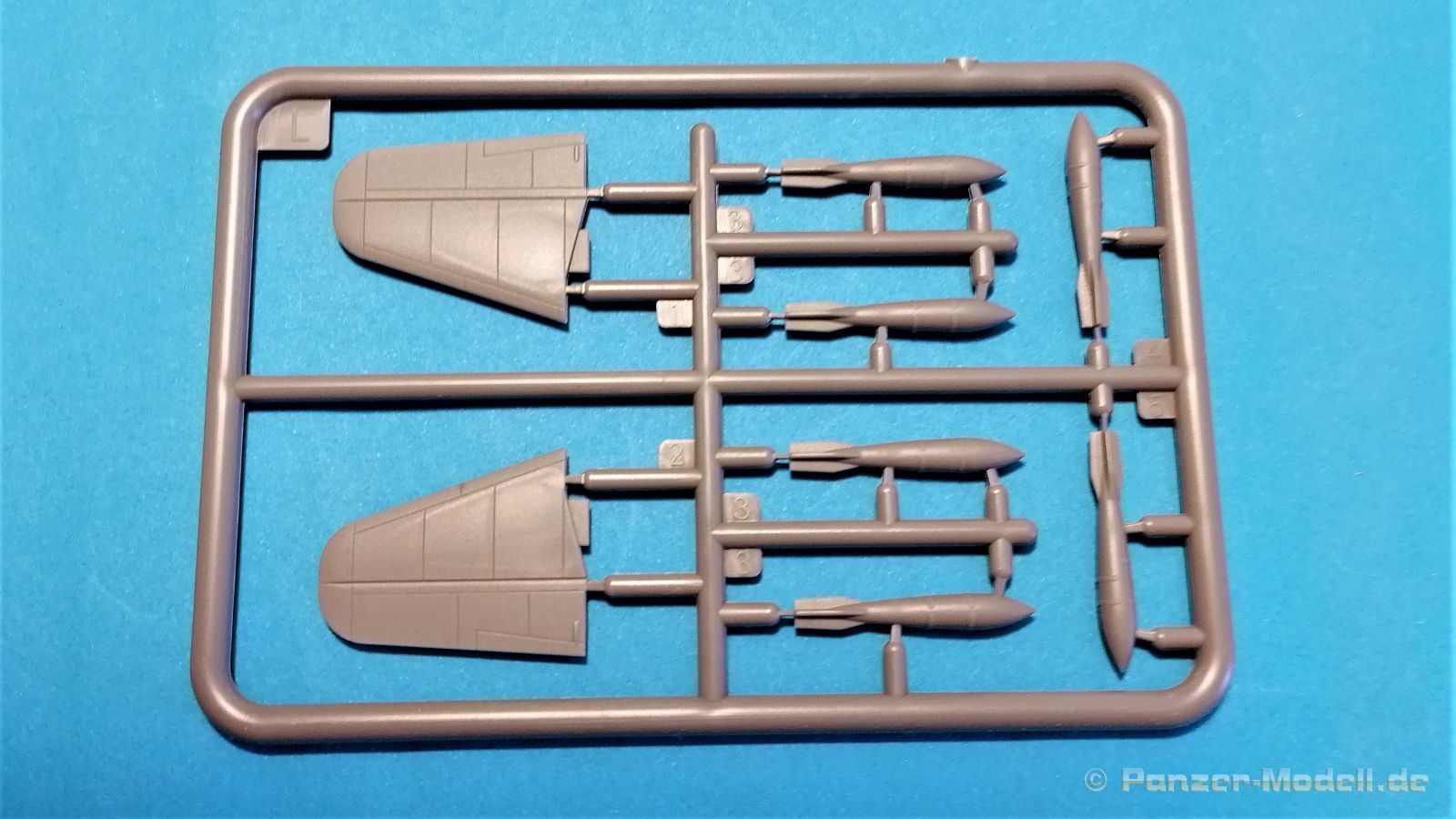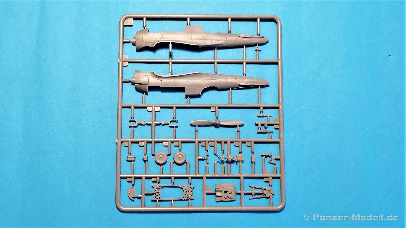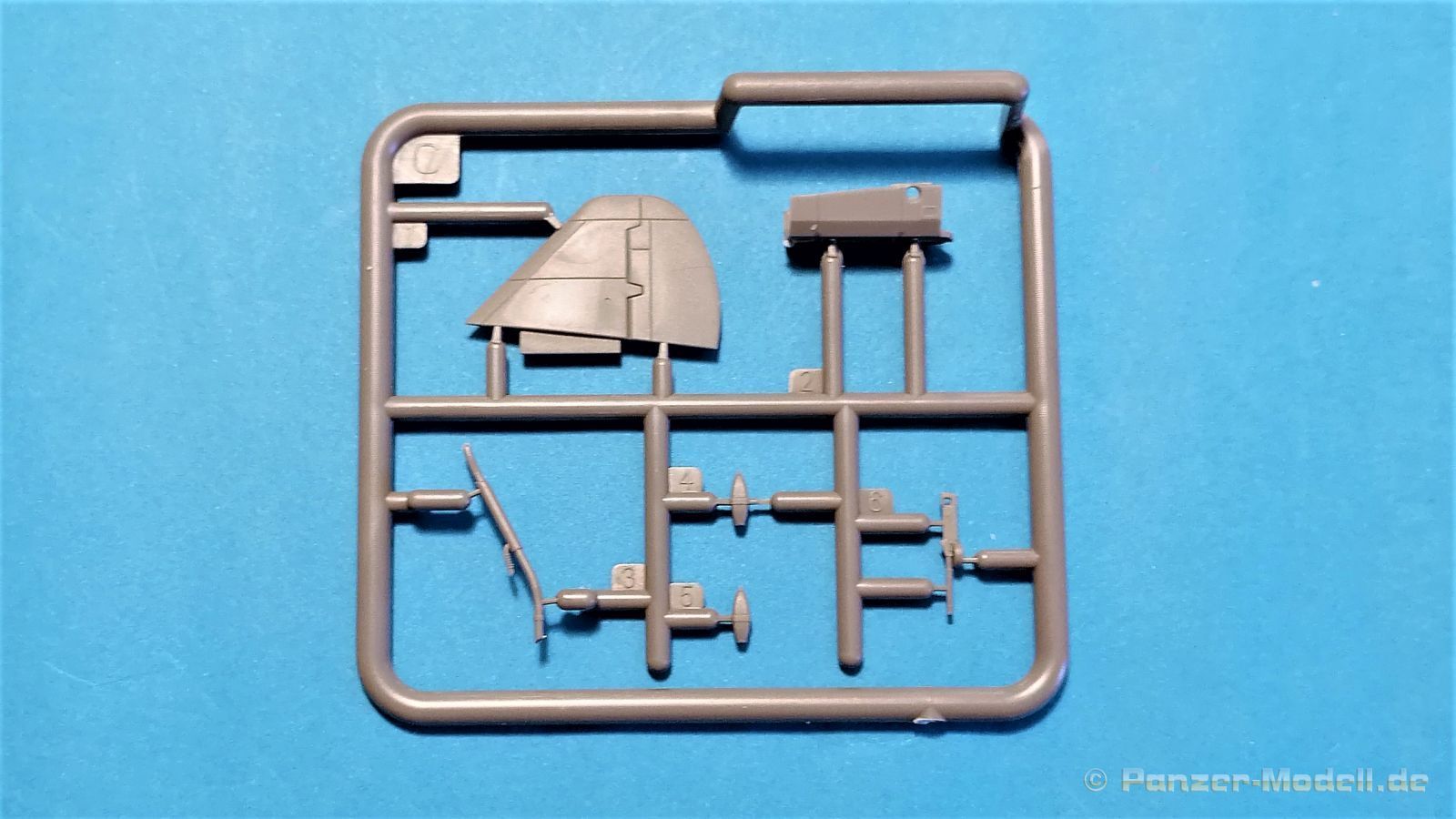In der Stülpbox befinden sich insgesamt 15 Rahmen in mittelgrauem Plastik, zwei Rahmen mit Klarteilen, zwei Ätzplatinen und ein Decalsheet. Die Bauanleitung steht für beide Maschinen und ist in Heftform gehalten. PZL.23A Karas Der PZL.23A ist ein alter Bekannter, der bereits 2017 unter der Nr. 72507 zum ersten Mal aufgelegt wurde. Ein “Ausgepackt” dieses leichten Bombers findet sich im Archiv. Deswegen gibt es an dieser Stelle nur einen kurzen Abriß. Insgesamt macht dieser Bausatz immer noch einen sehr guten Eindruck. Der Guß ist einwandfrei mit sehr schönen und zum Teil extrem feinen Gravuren. Details sind ebenfalls einwandfrei ausgearbeitet. Die Angüsse sind sehr klein gehalten, dürften sich aber leicht entfernen und versäubern lassen. Absolut schlierenfrei sind die Klarteile, mit für meinen Geschmack etwas zu prominenten Verstrebungen. Für die Lackierung dürfte es aber von Vorteil sein. Die Bauanleitung führt in 13 Schritten (vollflächige Computergrafiken) zum fertigen Flugzeug. Die PE-Teile fallen teilweise sehr fein und filigran aus. Damit ist dieser Bausatz nicht unbedingt für Anfänger geeignet. Erfahrung im Umgang mit Pes ist hier gefragt. Zwei Bemalungsvorschläge sind aufgeführt: