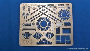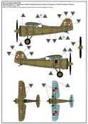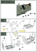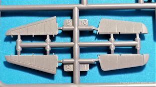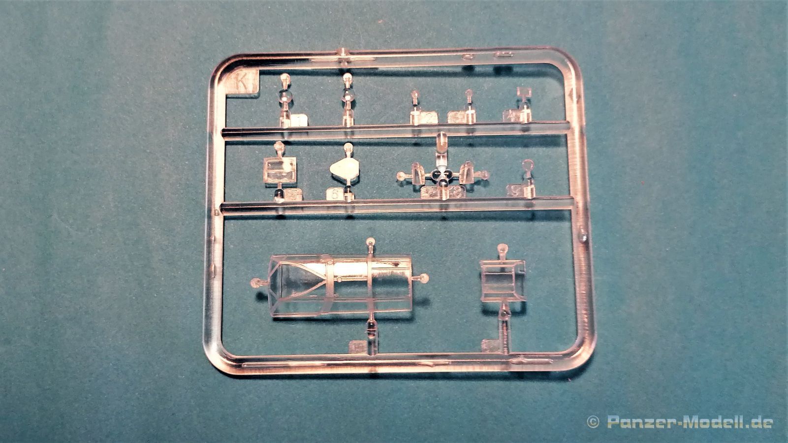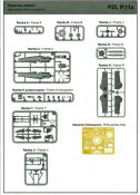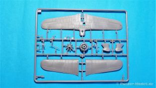 Die Decals wie gewohnt seidenmatt und so gut wie ohne Trägerrand. Die Farbangaben in der Anleitung beziehen sich auf die Sortimente von Vallejo Model Air, Hataka, Life Color, Mr. Hobby, AK-interactive und Mission Models. PZL P11a IBG präsentiert uns hier das Modell eines interessanten Hochdeckers einer Schulungseinheit. Wir finden im Karton 8 graue und 1 Klarsichtspritzling, 1 PE-Platine, Klarsichtfolie, Decals und die Bauanleitung. Die Spritzrahmen sind relativ dick im Vergleich zu den teils filigranen und gut detaillierten Teilen. Diese sind sauber ausgespritzt, fast ohne Grat und Versatz. Angüsse sind so gesetzt, dass Details nicht beeinträchtigt werden. Auswerferspuren sind augenscheinlich keine vorhanden. Das Cockpit besteht aus Bodenplatte, Sitz und Steuerknüppel. Sitzgurte, Pedale und Trimmrad sind aus PE. Das Trimmrad PE-21 ist in der Anleitung fast nicht zu sehen. Da es sehr blass ausgedruckt ist. Im Cockpitbereich in den Rumpfhälften sehen wir feine Spanten. Für die Armaturentafel gibt es ein buntes Decal. Die Rumpfhälften mit versenkten Gravuren zeigen bereits viele Details. Der Motor besteht aus 2 Ringen zu je 7 Zylindern. Dazu kommt ein Ring mit den Auspuffauslässen, ein PE Ring, eine gelochte Abdeckung und die Motorabdeckung aus einem Teil. Unterhalb der Haube findet ein Luftkanal seinen Platz. Die Oberseite des geknickten Flügels besteht aus einem Teil, die Unterseite aus zweien. Die Flügelteile zeigen eine sehr feine Riffelung und etliche Wartungsklappen. Die Querruder werden separat angebaut. Der Knickflügel sitzt auf dem Rumpf vor der Cockpithaube auf und wird auf jeder Seite von 2 Stützen am Rumpf abgestützt. Auch die Heckflügel haben separate Ruder und auch je 2 Stützen pro Seite. Seitenleitwerk und Seitenruder sind ebenfalls als separate Teile vorhanden. Wie bereits beim Flügel finden wir beim Höhen- und Seitenleitwerk feine Rippen und Riffelungen. Das feststehende Fahrwerk besteht aus V-Trägern pro Seite, die mittels PE-Gestänge gesichert werden. Die Räder sind wie beim Original einfach gehalten. Der Hecksporn ist bereits an den Rumpfhälften angegossen. Pro Seite kommen 2 winzige Bomben unter die Flügel. Propeller und Nabe bestehen aus einer Einheit und werden fest mit der Motornabe verklebt. Oben in der Mitte des Knickflügels wird eine Visiereinrichtung aus PE Teilen angebracht. Bei der Cockpithaube hat man die Wahl zwischen Klarsichtteilen aus Plastik oder Rahmen aus PE, in die Folien als Cockpitverglasung eingesetzt werden. Anfänger werden sich vielleicht eher mit den Plastikteilen begnügen, Fortgeschrittene versuchen sich wohl eher an PE und Folien. Die PE-Teile fallen teilweise sehr fein und filigran aus. Damit ist dieser Bausatz nicht unbedingt für Anfänger geeignet. Zwei Bemalungsvorschläge gibt es: