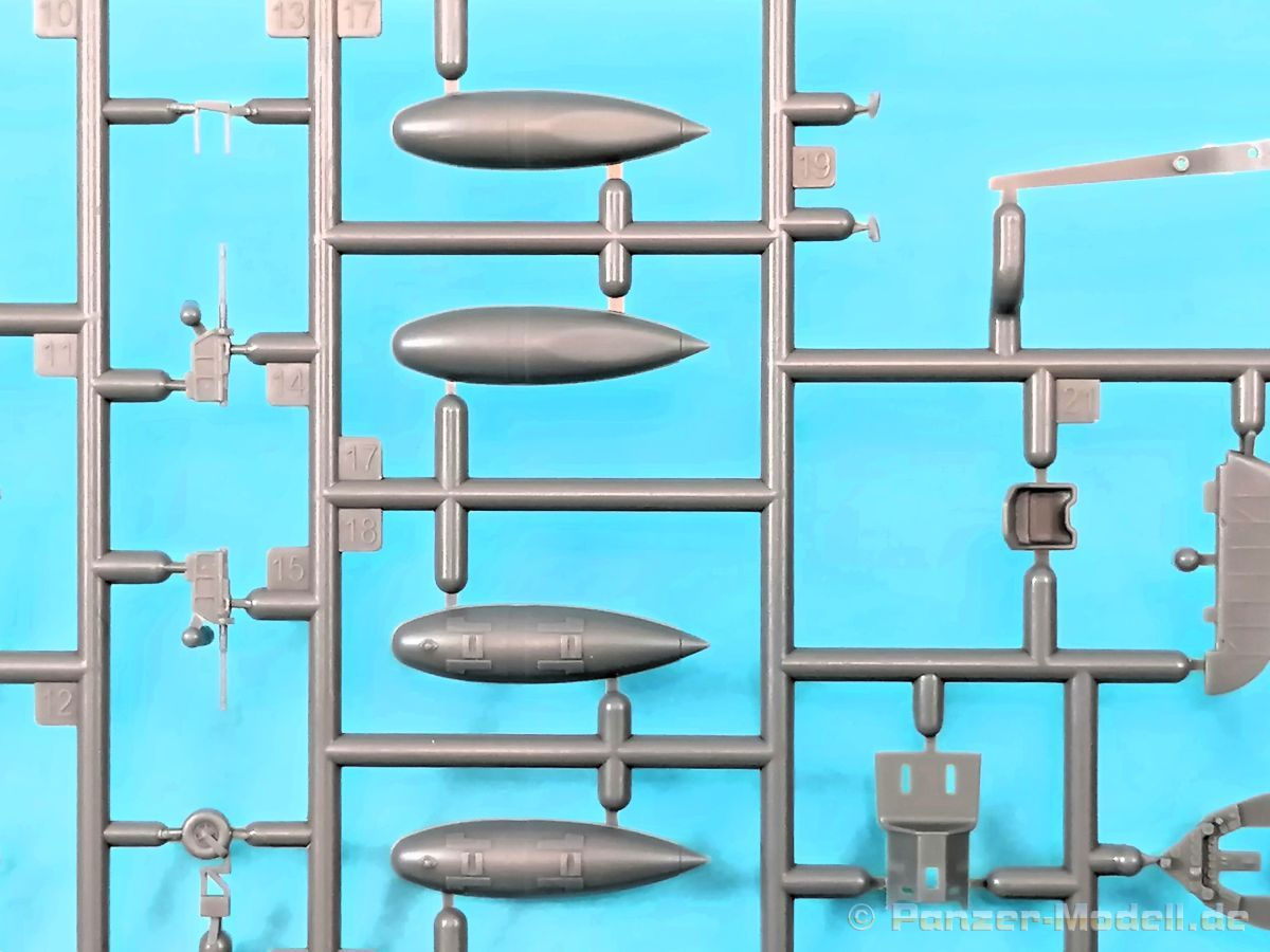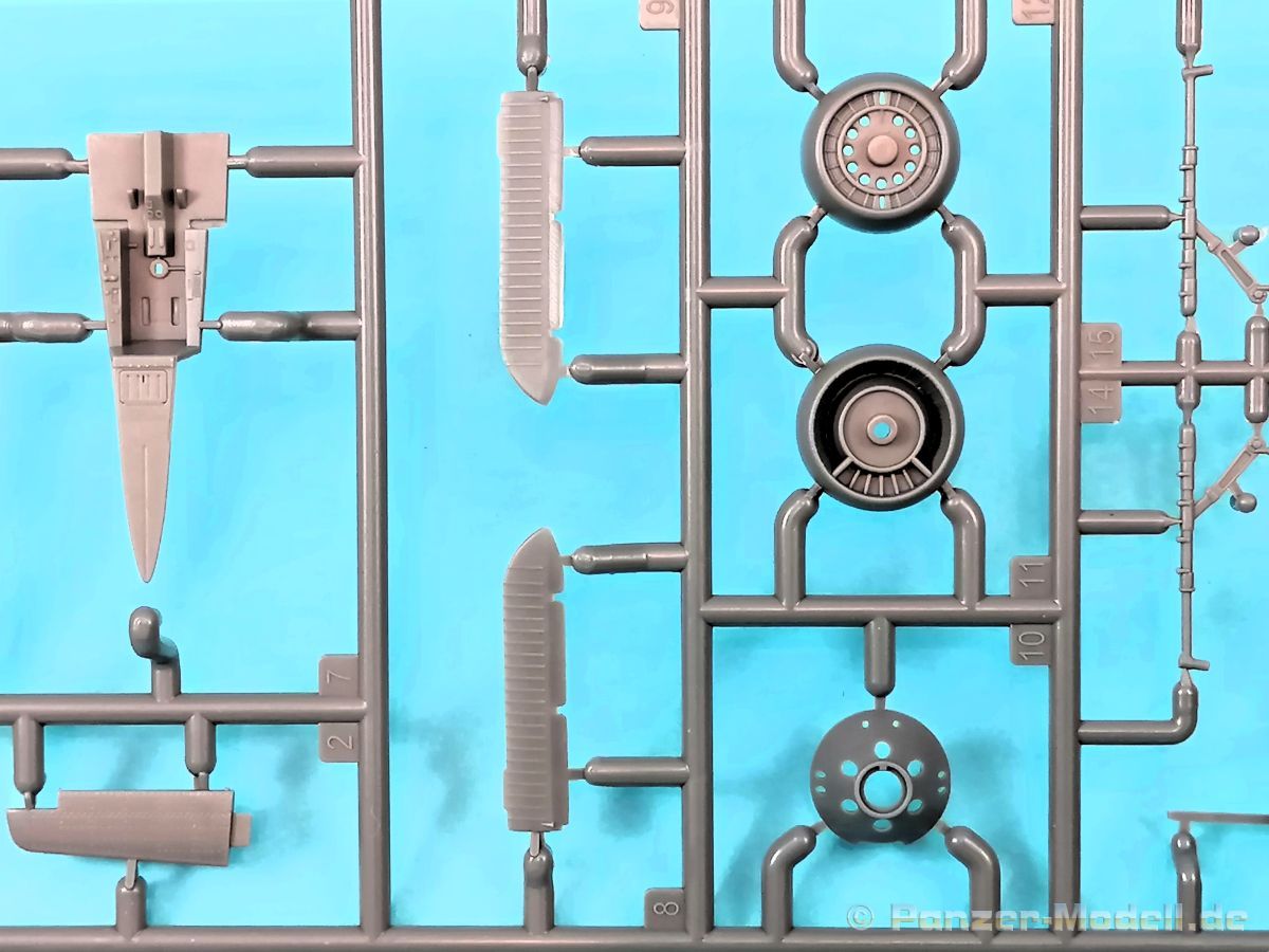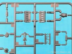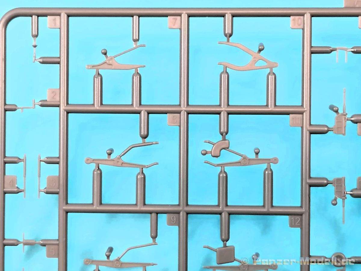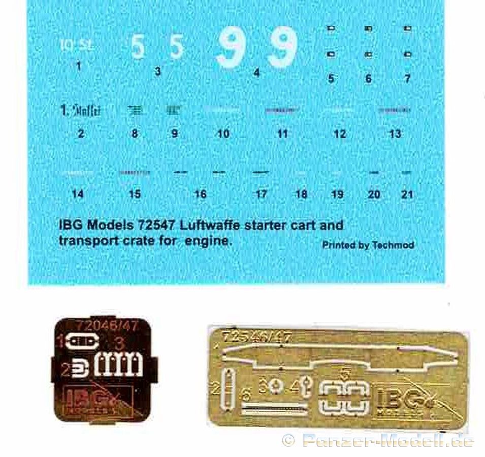 Erfreulich, wenn ein Hersteller nicht nur Flugzeuge im Modell herausbringt, sondern auch Zubehör für diesen Bereich in dem doch so einiges fehlt. IBG hat mit dem o.g. Kit etwas Abhilfe geschaffen. Gerade für Flugzeugbauer, die gerne ihre Exponate in einem kleinen Dio mit einer Wartungsszene präsentieren wollen dürfte das Gebotene durchaus willkommen sein. Der mittlerweile für IBG typische Top-Opener enthält fünf unterschiedlich große Spritzlinge, einen Decalbogen, zwei winzige PE-Platinen und die obligate Bauanleitung. Die Rahmen A, B und Z sind alte Bekannte und bereits in den Kits der Fw 190 enthalten. Allerdings beherbergen diese Spritzlinge alle notwendigen Teile zum Bau des “Jumo 213”. Der große Rest wandert in die Vorratskiste! Das Transportgestell wird mit den Teilen von Rahmen C realisiert und für den Bau des Starterwagens liegt der Rahmen F bei. Alle Rahmen mit den Bauteilen sind absolut sauber gespritzt. Versatz und/oder Grat ist nicht vorhanden. Auch Formtrennnähte konnte ich nur minimal an wenigen Stellen ausmachen. Die Angüsse sind geschickt auf den Rahmen gesetzt und die Teile weisen einen trotz ihrer Filigranität sehr hohen und scharfen Detaillierungsgrad auf. Spritzguß vom Feinsten; eigentlich wie gewohnt von IBG. Die Bauanleitung im A4 Format ist in schwarz-weiß mit farbigen Akzenten gehalten und umfasst lediglich vier Seiten. Auf der ersten Seite sind die Rahmen, die Decals und die PEs gelistet. Dazu die recht umfangreichen Farbtabellen von Hataka, Vallejo, Life Color, Mr. Hobby und AK Interactive. Auch einige Piktogramme finden wir hier. Auf Seite zwei ist der Bau des Jägermotors in vier Schritten dokumentiert und findet seinen Abschluß in der Montage der Motorträger. Zwei weitere Schritte sind dem Transportgestell, mit einigen PEs veredelt, gewidmet, nach dessen Zusammenbau der Motor problemlos eingesetzt werden kann. Schlußendlich kommt noch der Starterwagen zum Zuge, dessen Bau sich über weitere vier Schritte erstreckt. Den gesamten Raum der vierten Seite nehmen Bemalungshinweise des LW-Zubehörs ein. Bei der Genauigkeit der Anleitung sollten auch keine Fragen auftreten. Ein kleines, schönes Set mit Potential. Auch das Preis/Leistungsverhältnis geht in Ordnung.