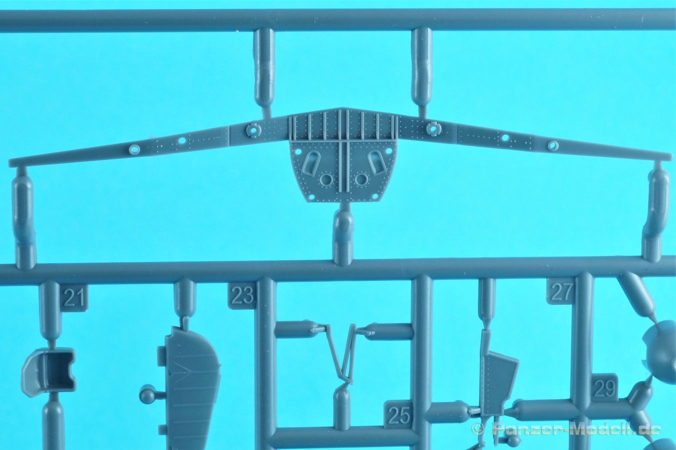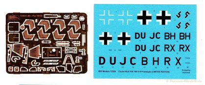 Die V53, zusammen mit der V54 waren die letzten Prototypen vor dem serienmäßigen Anlauf der D-9. Sieben graue Spritzlinge finden sich in dem für IBG typischen Karton, gefolgt von einem Rahmen mit Klarteilen. Weiterhin gibt es zwei recht umfangreiche Abziehbilderbögen, eine filigrane PE-Platine und natürlich die obligate Bauanleitung. Als Zugabe gint es noch zwei gedruckte Bordwaffen und Waffenschachtabdeckungen. Alle Rahmen mit den Bauteilen sind sehr sauber gespritzt. Versatz und/oder Grat ist keiner zu finden. Angüsse sind geschickt auf den Rahmen gesetzt. Alle Teile weisen einen hohen und scharfen Detaillierungsgrad auf. Naturgemäß bleiben einige Teile für die Grabbelkiste übrig. Fangen wir doch mal bei dem Triebwerk an. Für diesen Maßstab ist der Jumo 213A-1 recht schön wiedergegeben. Es sind einige, teils winzige Aggregate zu verbauen bis man den Motor mit den Motorträgern verbinden kann. Sehr schön gemacht und umgesetzt. Detailfanatiker werden sich hier sicher auch noch austoben… Das Cockpit ist ebenfalls gut gestaltet und besitzt die nötige Ausstattung incl. dem Gurtzeug für den Piloten. Die Gerätebretter und Seitenkonsolen können sowohl mit dem Pinsel bemalt oder aber mit Decals belegt werden. Jeder nach seinem Gusto. Ein paar Ätzteile werten den Führerraum weiter auf. Gleichwohl gibt es auch noch zwei ebenfalls ansprechend gemachte MG 131 mit Magazinen die vor der Cockpitfront verbaut werden. Leider verschwindet alles unter einer ebenfalls toll umgesetzten Motorhaube. Eine Option diese offen darzustellen gibt es nicht. Allerdings zeigt sich der Motor später durch die Öffnungen in den Fahrwerksschächten. Auch in diesem Fall hat IBG gute Recherchearbeit betrieben. Rumpf und Tragflächen sind mit einer Unzahl von fein ausgeführten Panellinien und Nietenreihen überzogen. Für manche etwas irritierend, aber es gibt genügend Fotos auf denen diese Details deutlich zu sehen sind. Top umgesetzt. Sehr schöne Idee ist auch der Spant, der vor dem Cockpitbereich eingebaut wird. Dieser wird bei dem späteren Einbau der Tragflächen eine große Hilfe sein da die Flächen dann im richtigen Winkel zum Rumpf liegen. Leider ist das Pitotrohr am rechten oberen Flügel mit angegossen. Lieber abtrennen und erst am Ende des Baus wieder ankleben. Für die Komplettierung der Radschächte kommen wieder Ätzteile zum Einsatz und zwei weitere MG 151/20 in den Flügelwurzeln. Diverse Ruderflächen sind einzeln beigelegt und können in der vom Modellbauer gewünschten Stellung fixiert werden. Stifte für die Kontrolle eines ausgefahrenen Fahrwerks sind ebenfalls vorhanden und auf der Oberseite der Tragflächen einzubauen. Ein Detail das immer wieder bei anderen Kits vernachlässigt wurde. Punkten kann das gesamte Fahrwerk und wenn ich mich nicht täusche sind die Reifen dezent abgeplattet. Lediglich Bremsleitungen können ergänzt werden. Die Kanzel ist schlierenfrei, angenehm dünn gespritzt und wird mit einer Kopfstütze sowie einer Strebe komplettiert. Durch die Feinheit der Teile sollte einer Lackierung mit dem Airbrush der Vorzug gegeben werden. Bei einer Pinselbemalung besteht eventuell die Gefahr zu viele Details in Farbe zu ersticken. Die 16-seitige Bauanleitung im A4 Format ist in schwarz-weiß mit farbigen Akzenten gehalten. Kurze Beschreibungen oder Anleitungen sind in Polnisch und in Englisch. Auf der ersten Seite finden wir etwas zur Geschichte des Flugzeuges. Seite 2 zeigt uns die Teileübersicht. Auf Seite 3 gibt es eine Bemalungstabelle mit Farbnummern für Valejo, Hataka, Life Color, Mr. Hobby und AK Interactive. 23 Bauschritte führen einen zum fertigen Modell in sinnvoll aufgeteilten, leicht verständlichen Schritten mit ausreichend großen Zeichnungen, Farbangaben wo notwendig incl.. Einzelne Baugruppen, die in einem späteren Bauschritt verbaut werden, erhalten eine weiße Nummer in einem Dreieck. Bei Verwendung der Baugruppe erscheint das Dreieck wieder, dann in schwarzer Schrift. Am Ende der Bauschritte gibt es noch eine Zeichnung des fertigen Modells aus drei Blickwinkeln. Zwei Seiten sind für die Anbringung von Wartungshinweisen reserviert und zwei Bemalungsvorschläge gibt es auf den letzten Seiten. Diese sind am Ende des Bildteil zu sehen. Die Decals stammen von Techmod und machen einen exzellenten Eindruck. IBG hat einen richtig tollen Bausatz geliefert mit Details die oft nicht einmal Kits in 1:48 aufweisen können. Richtig gut gemacht und auf der Höhe der Zeit. Nichts für Anfänger auf Grund der Komplexität. Für das Gebotene geht auch der Preis absolut in Ordnung!