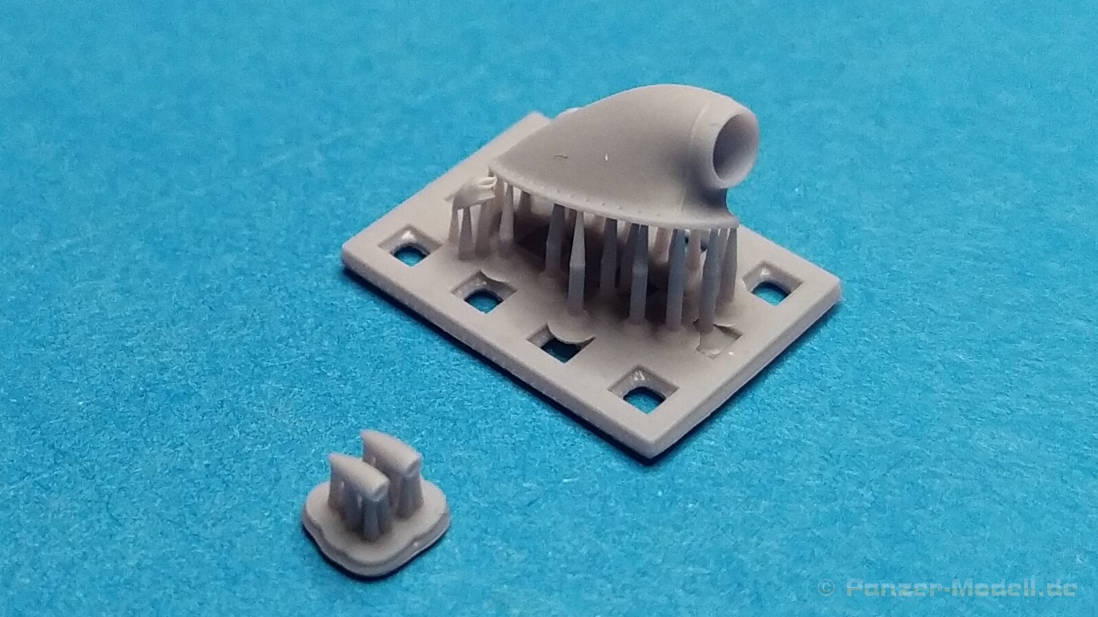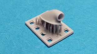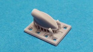 Seamless air intakes for FW 190 D-9 – 1:72 Für seine Plastikspritzgußbausätze bietet der polnische Hersteller IBG-Models mittlerweile auch Detailierungssets und Figuren im 3D-Druck an. Für die Serie der Focke-Wulf FW 190D im Maßstab 1:72 wurden einige interessante Detailierungssets herausgebracht. Unter der Bausatz-Nummer 72U012 erschien ein Set mit der Bezeichnung „Seamless air intakes for Fw 190 D-9“ Folgender Inhalt wird in einem kleinen schwarzen Karton geliefert: - 1 Stützkonstruktion mit dem großen Lufteinlass und zwei kleinen in grauer Farbe - 1 Stützkonstruktion mit weiteren drei kleinen Lufteinlässen in grauer Farbe Hierbei handelt es sich also um eine Detailierungsmöglichkeit für die verschiedenen Lufteinlässe Focke-Wulf FW 190 D, die beim Plastikbausatz meist zweiteilig bzw. weniger detailliert beiliegen. Alle Teile werden geliefert wie gedruckt müssen also noch von Ihren Stützstreben befreit worden. Scharfes Werkzeug ist unerlässlich beim Heraustrennen, damit keine Details verloren gehen. Die Qualität des 3D Drucks ist hervorragend und die Details wirken sehr realistisch. Wenn schon die Bauteile des Plastikbausatzes in diesen Bereichen zu überzeugen wussten wird durch dieses Set noch eine Schippe drauf gelegt. Als Beispiel seien hier die Bohrungen am großen Lufteinlass und die Wandstärke an den Öffnungen zu nennen. Beeindruckend in diesem kleinen Maßstab. Eine Bauanleitung ist nicht vorhanden, aber auch nicht nötig. Die Anbringung am Grundbausatz dürfte klar sein. Mein Fazit: Dieses Detailierungsset ist das Sahnehäubchen für die ohnehin schon sehr guten Bausätze der FW 190 D aus gleichem Hause. Der Preis von ca. 7€ für die Teile in dieser Qualität und in diesem Maßstab geht in Ordnung.