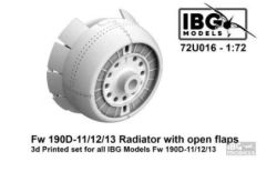 Fw 190D – 11/12/13 Radiator with open flaps für die Fw 190D family – 1:72 Zubehör für die Modelle der Fw 190 Reihe gibt es mittlerweile eine ganze Reihe von IBG. Mit der Nummer 72U016 erschien zur weiteren Aufrüstung der ohnehin schon schönen Fw 190er Modelle eine komplett im 3D Druck hergestellte Motorabdeckung mit offenen Kühlerklappen. Das Ganze in einer Qualität, die in Spritzguß so nicht darstellbar ist. Fehler im Druck konnten keine festgestellt werden. Top umgesetzt und ideal für kleine Flugplatz- bzw. auch Wartungsszenen. Verwendbar für die Muster 11,12 und 13! Alles gut verpackt in der Standardschachtel. Eine richtig schöner Kit, der absolut überzeugt!