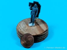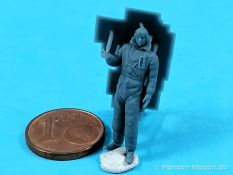 Polish Air Force Pilot 1939 – 1:72 Neben Zubehör von Flugzeugen hat IBG auch den 3D-Drucker für die erste Pilotenfigur bemüht. Unter der Nummer 72U018 (Polish Air Force Pilot) gibt es die erste Figur eines polnischen Piloten aus dem Zeitraum um 1939. Mit der entspannten Pose, neben einem Flugzeug platziert, kann diese Figur zur weiteren Verfeinerung eines kleinen Dios dienen. Alles wie immer sehr gut verpackt in einer geräumigen Standardschachtel. Der Pilot ist absolut fehlerfrei gedruckt, eine Tatsache von der sich manche anderen Hersteller eine Scheibe abschneiden können. Der Faltenwurf der Uniform, das Gurtzeug und auch die Gesichtszüge gefallen. Für diesen Maßstab gehen auch die Details in Ordnung. Die feinen Supports sind jedenfalls leicht zu entfernen. Leider liegen keine Bemalungshinweise bei. Empfieht sich nur noch ein ruhige Hand bei der Bemalung. Empfehlenswert!