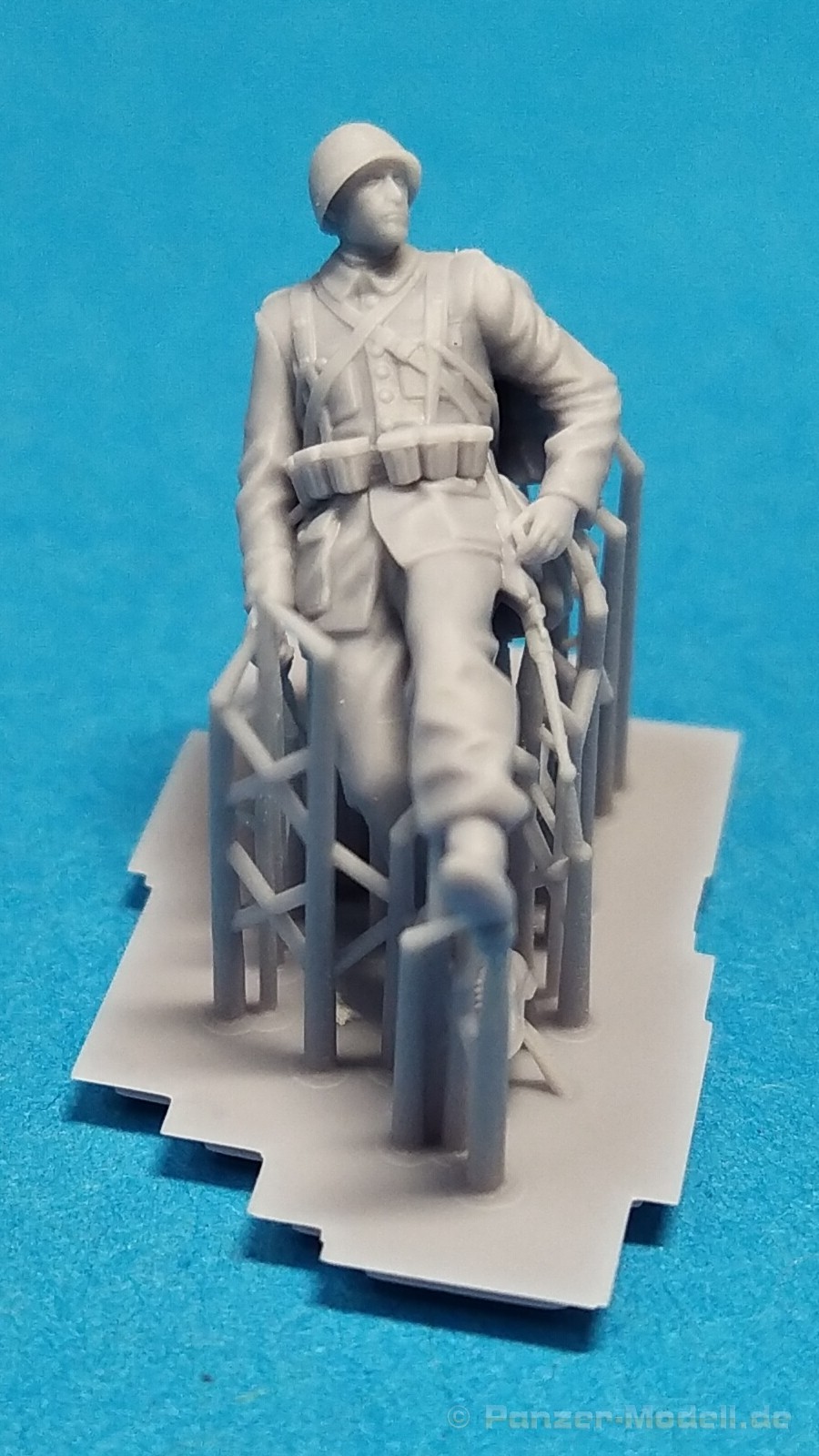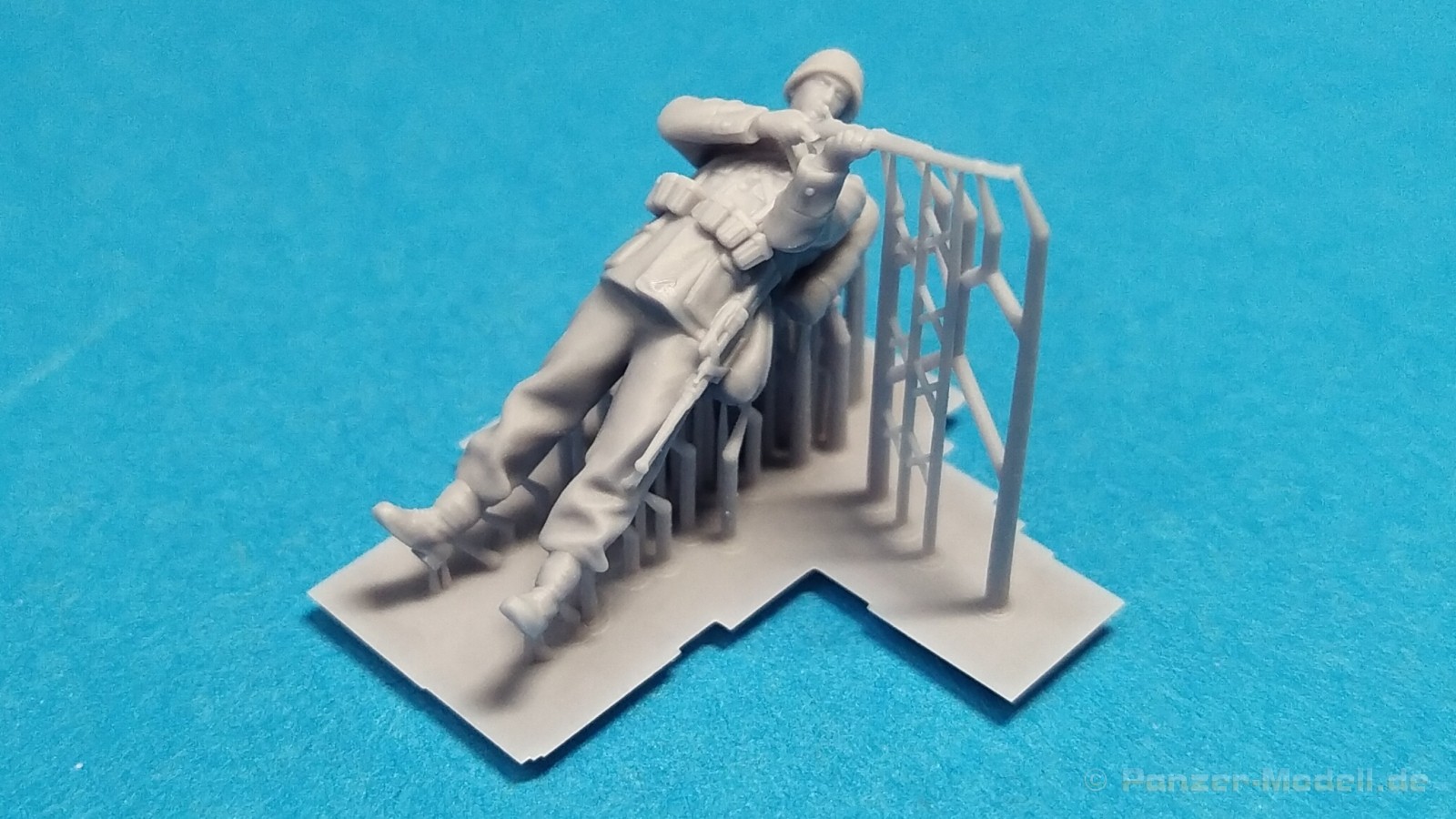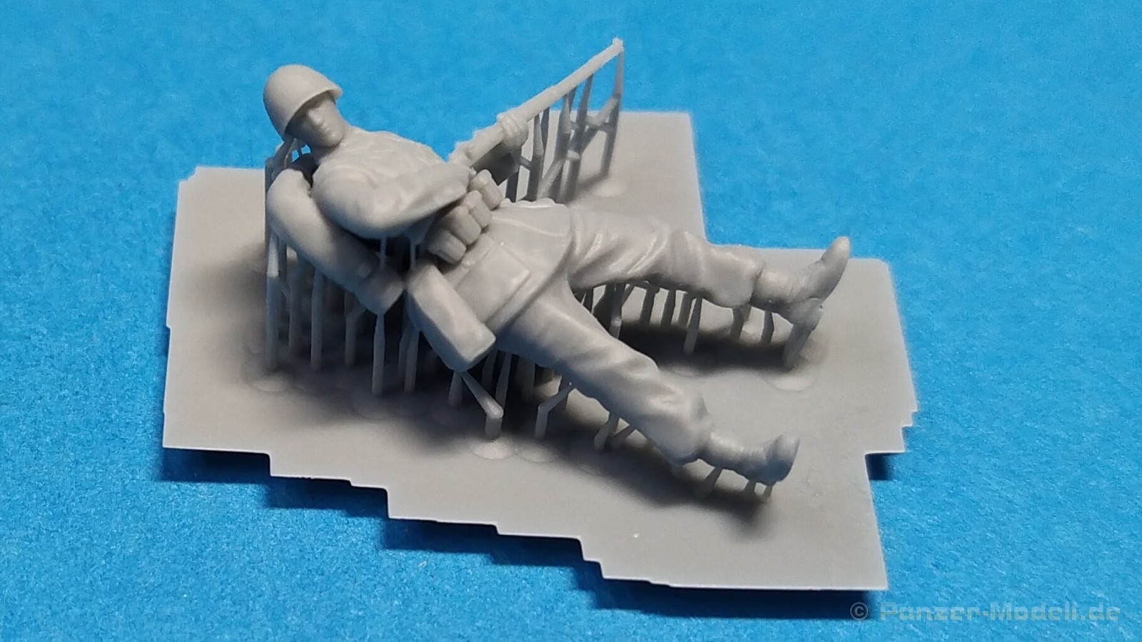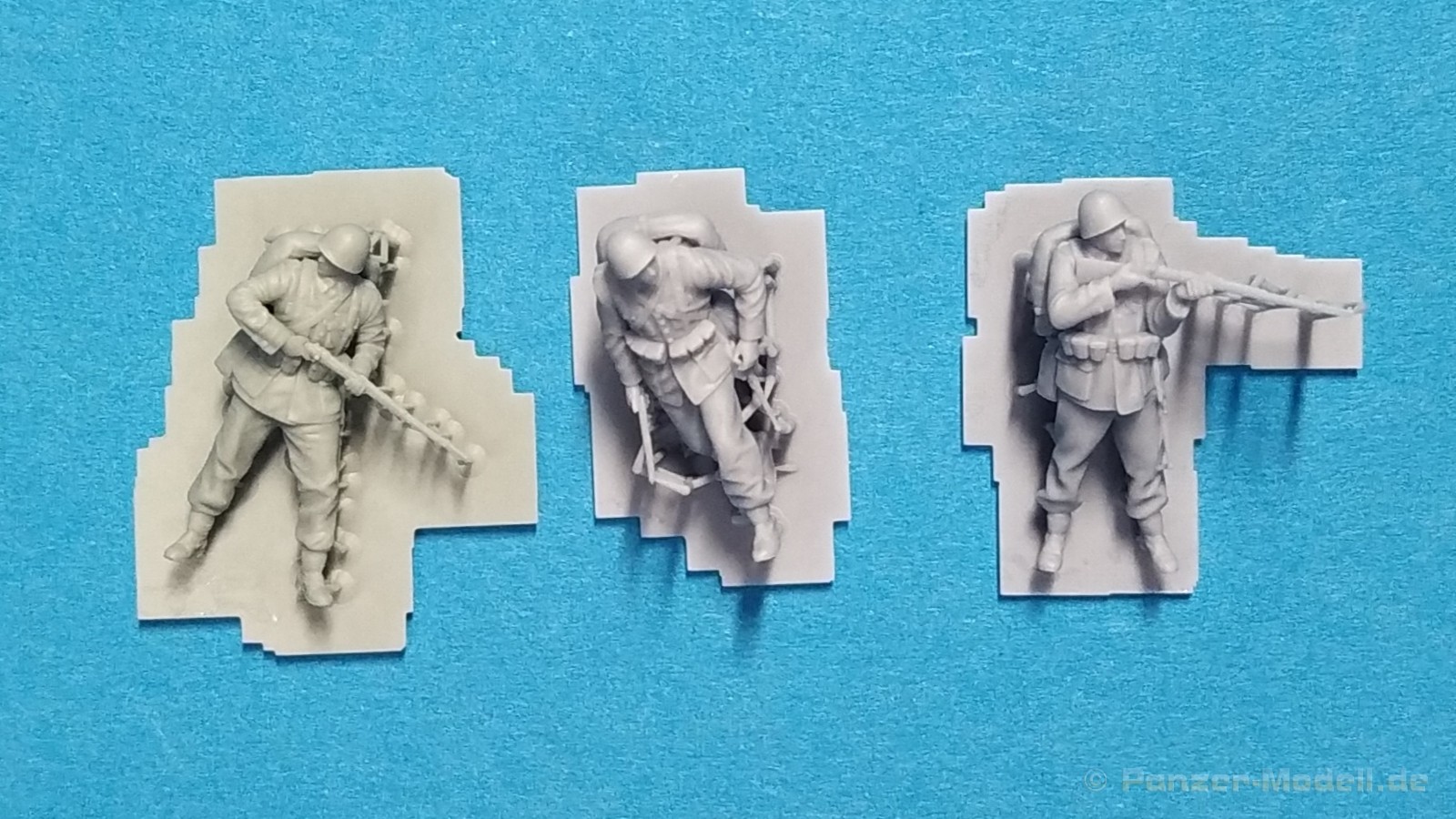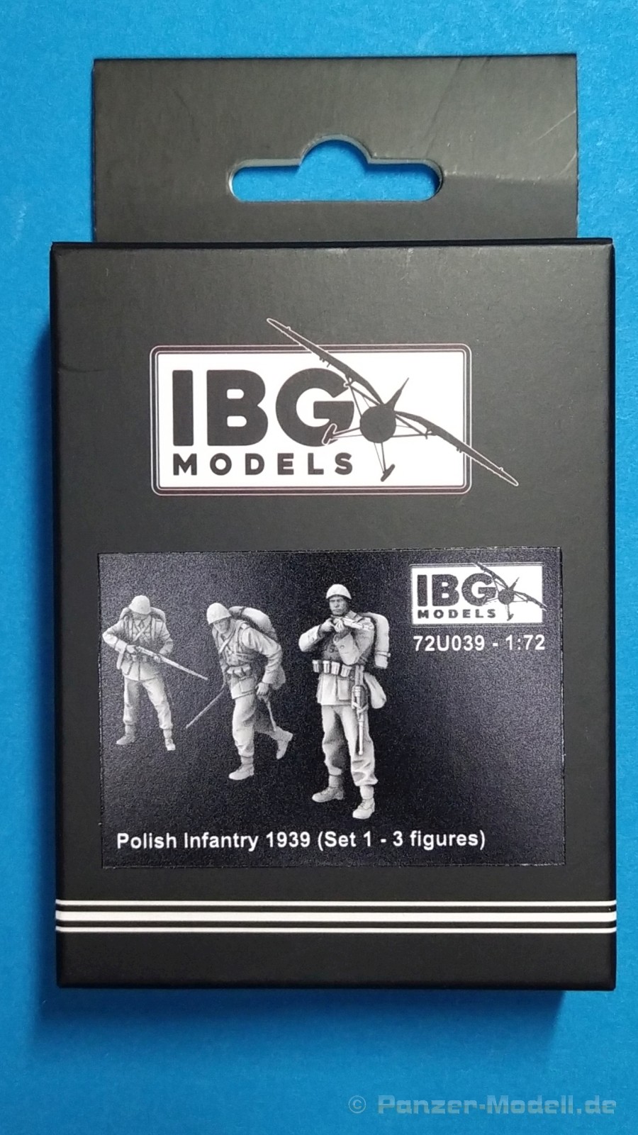 Polish Infantry 1939 Set 1 – 1:72 Ein weiterer neuer Figurensatz der polnischen Firma IBG Models im kleinen Maßstab 1:72 beschäftigt sich mit polnischen Infanterie-Soldaten aus der Anfangszeit des Zweiten Weltkrieges. Unter der Nr. 72U039 ist mit der Bezeichnung „Polish Infantry 1939 Set 1“ eine Zusammenstellung von drei verschiedenen polnischen Soldaten erhältlich. Auch diese Figuren sind im 3D-Druckverfahren hergestellt und werden in einem kleinen schwarzen Karton ausgeliefert. Enthalten sind insgesamt drei 3D-gedruckte Figuren in grauer Farbe. Bei den Figuren handelt es sich drei polnische Soldaten in stehender bzw. laufender Position. Ausgestattet sind diese mit der typischen polnischen Uniform, Sturmgepäck und Gewehren als Bewaffnung. Alle Figuren tragen einen Helm als Kopfbedeckung. Die Körperhaltung ist bei allen drei verschieden. Ein Soldat steht mit Gewehr im Anschlag, ein Soldat läuft leicht gebückt und der Dritte steht abwartend leicht um die Ecke schauend mit Gewehr in Hüfthöhe. Alle Figuren sind noch nicht von Ihren Stützstreben befreit worden. Sie werden also geliefert wie gedruckt. Beim Heraustrennen muss aufgepasst werden damit keine Details verloren gehen. Dazu ist scharfes Werkzeug unerlässlich. Mein Fazit: Noch ein schönes und gefälliges Figurenset, das gerade Dioramen mit Thema Beginn Zweiter Weltkrieg mit Leben erfüllen wird. Der Preis von ca. 16€ für 3 Figuren in dieser Qualität in diesem Maßstab geht in Ordnung. Wir bedanken uns bei IBG-Models für das Besprechungsmuster.
