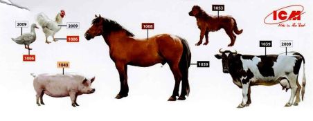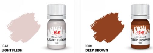 Dieses Mal hat es unsere tierischen Freunde erwischt. Die Palette der von ICM angebotenen Farben umfasst aktuell 77 Farbtöne mit jeweils 12ml Inhalt (Incl. 3 Klarlacke, Basisfarben etc.). Dazu kommen laufend neue Sets heraus die auf die jeweiligen Bausätze von ICM abgestimmt sind. Sechs Grundierungen mit 17ml runden das Angebot ab. Das vorliegende Set kommt mit fünf Farbtönen (Grundfarben) und einem Primer (17ml) in 12ml Kartuschen zum Endverbraucher. Im Einzelnen: 1006 Deep Orange Auf der Rückseite sind noch verschiedene Tiere abgebildet mit Angaben wo welche Farben verwendet werden können/sollten. Die Farben machen auf den ersten Blick keinen schlechten Eindruck. Ausgelegt sind sie zur Verwendung mit dem Pinsel während bei Gebrauch einer Airbrush laut Hersteller 40-60% Wasser oder Verdünner zugesetzt werden soll. Eine Reinigung des Werkzeugs sollte ebenfalls mit Wasser erfolgen… Die Konsistenz der Farben würde ich ungefähr mit der von Joghurt gleichsetzten, also recht zäh. Bei Verwendung mit einem Pinsel dürfte ein kleiner Zusatz von Wasser hilfreich sein. Die Deckkraft ist jedoch gut und ausreichend. Negativ fällt auf, das nachdem der Deckel aufgeschraubt ist, das Fehlen eines Tropfenzählers oder etwas Vergleichbarem. Entnahme also nur durch Schrägstellung/Kippen des Gebindes oder mit Hilfe einer Pipette. Zum Aufmischen der Farbe sollte auf jeden Fall eine kleine Stahlkugel eingebracht werden. Was mir ebenfalls nicht gefällt ist die geringe Füllmenge der Gebinde, die meines Erachtens mit 12ml viel zu gering ist. Ebenfalls nicht schön ist die Tatsache, das bei den Farben keine RAL, RLM oder FS Nummern angegeben sind. Farbsets liegen im Verkauf bei rund EUR 10,00 und einzelne Kartuschen bei circa EUR 2,00. Leider kann mich die Farbpalette von ICM nicht so ganz überzeugen. Mir persönlich ist das Händling zu aufwändig. Zudem dürften sich durch die relativ geringe Anzahl an Farben u.U. Mischorgien ergeben. Die in den Sets angebotenen Farben stimmen auch nicht immer mit den Originalfarben überein. Das soll aber nicht als Credo verstanden werden. Jeder darf und soll seine Wahl treffen.