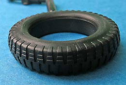 Ähnliches gilt für die Vinylreifen, die auf die Plastikfelgen gezogen werden. Machart und Detaillierung sind ok, das Profil ganz ansprechend, aber es fehlen z.B. die markanten Herstelleraufdrucke an den FLanken.