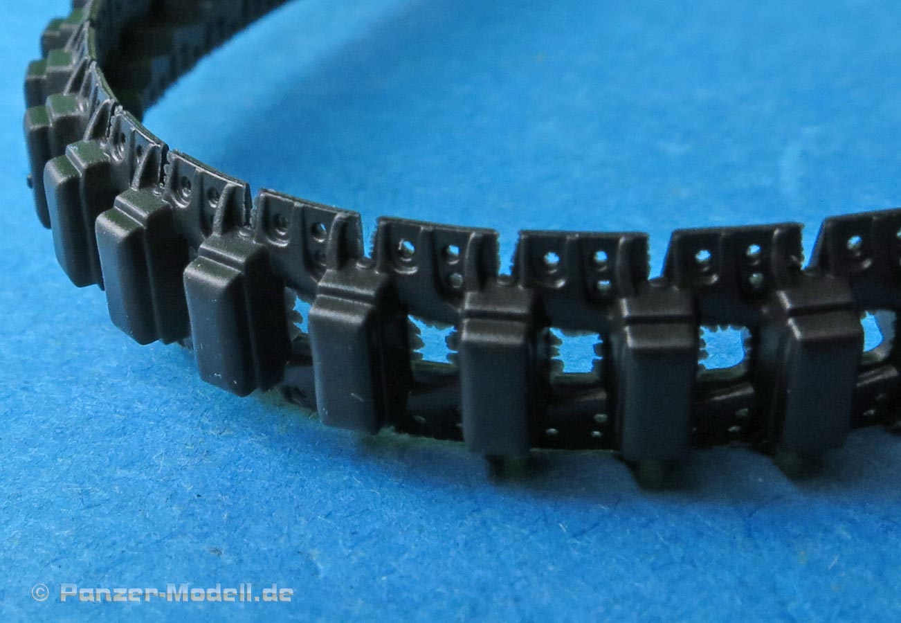 Die Ketten sind einteilige Vinylketten - die Darstellung ist ok, aber nicht mehr wirklich zeitgemäß. Gerade in den inneren Aussparungen finden sich einige Fischhautreste, die schwer zu versäubern sind. Die Details sind für Viylketten ok, aber es geht noch deutlich besser.