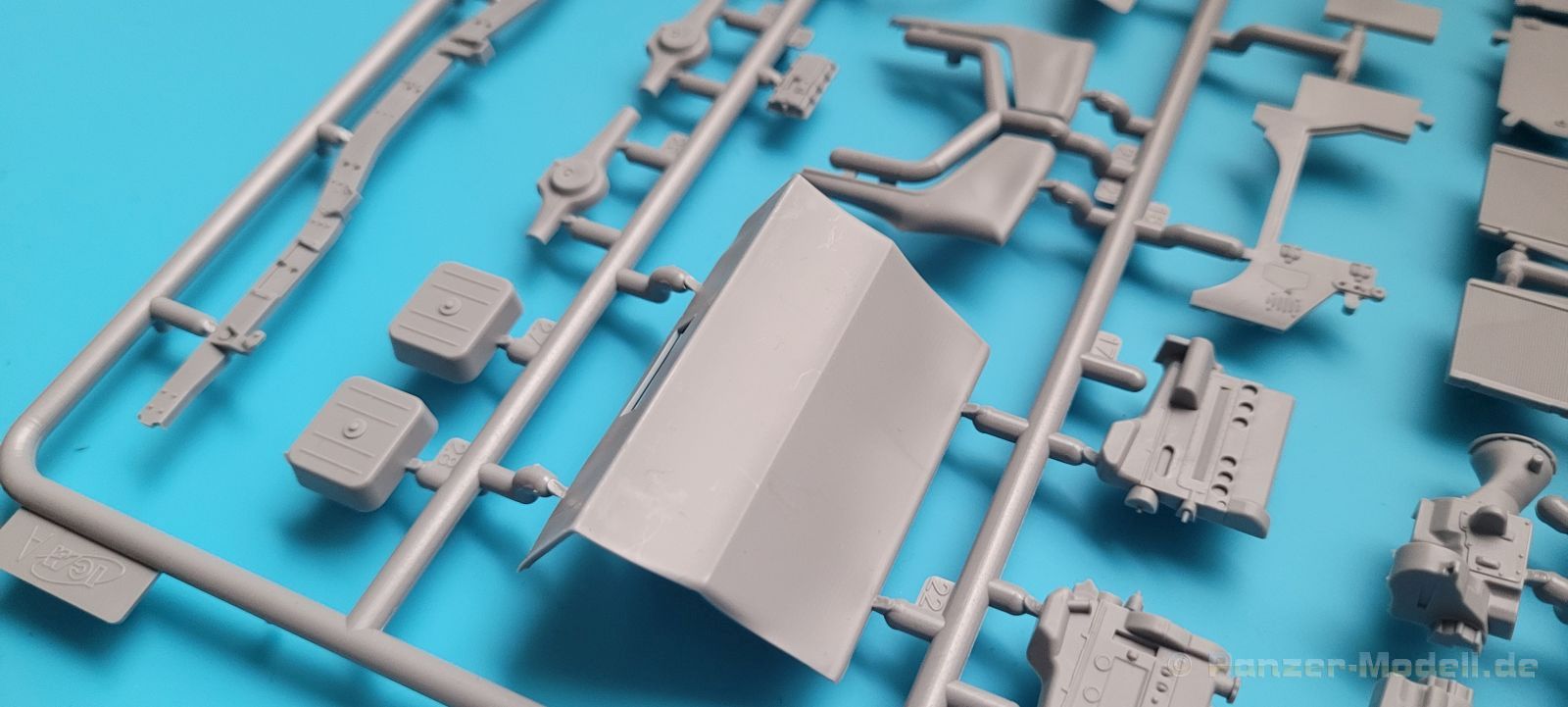 Auch bei diesem Bausatz gilt: Die MLC-Schilder (Militärische Lastenklasse) liegen als Decals bei, dies ist nur bei der Version in Dreifarbtarn korrekt.