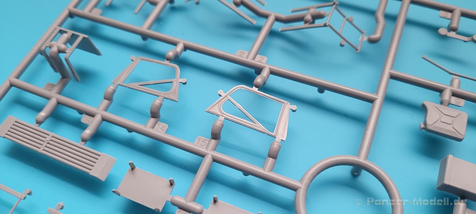 Auch das Riemengeflecht welches als Tarnnetzhalter dient, und an der Hecktür befestigt ist, hat ICM leider nicht bedacht. Jedoch sind die Befestigungsösen angedeutet.