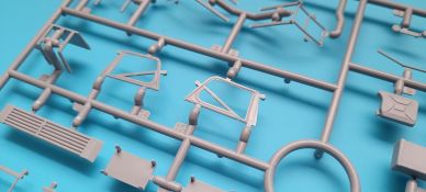 Auch die eigentlich im Original recht einfach gehaltene Fahrerkabine weiß zu gefallen, alle wichtigen Bauteile sind fein dargestellt und das Instrumentenbrett kann mit den beiliegenden Decals und der guten Bemalungsanleitung nah an das Original gebracht werden.