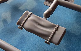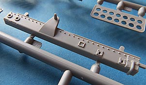 Die Oberwanne ist einteilig und wird nur mit wenigen Teilen verfeinert, in der Hauptsache die Lüftergrätings an der Seite und dem Motordeck, die ganz ok aussehen, aber leider nicht durchbrochen sind. Desweiteren Werkzeug (mit angegossenen Halterungen) und das Auspuffystem.