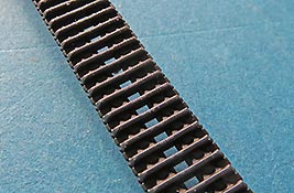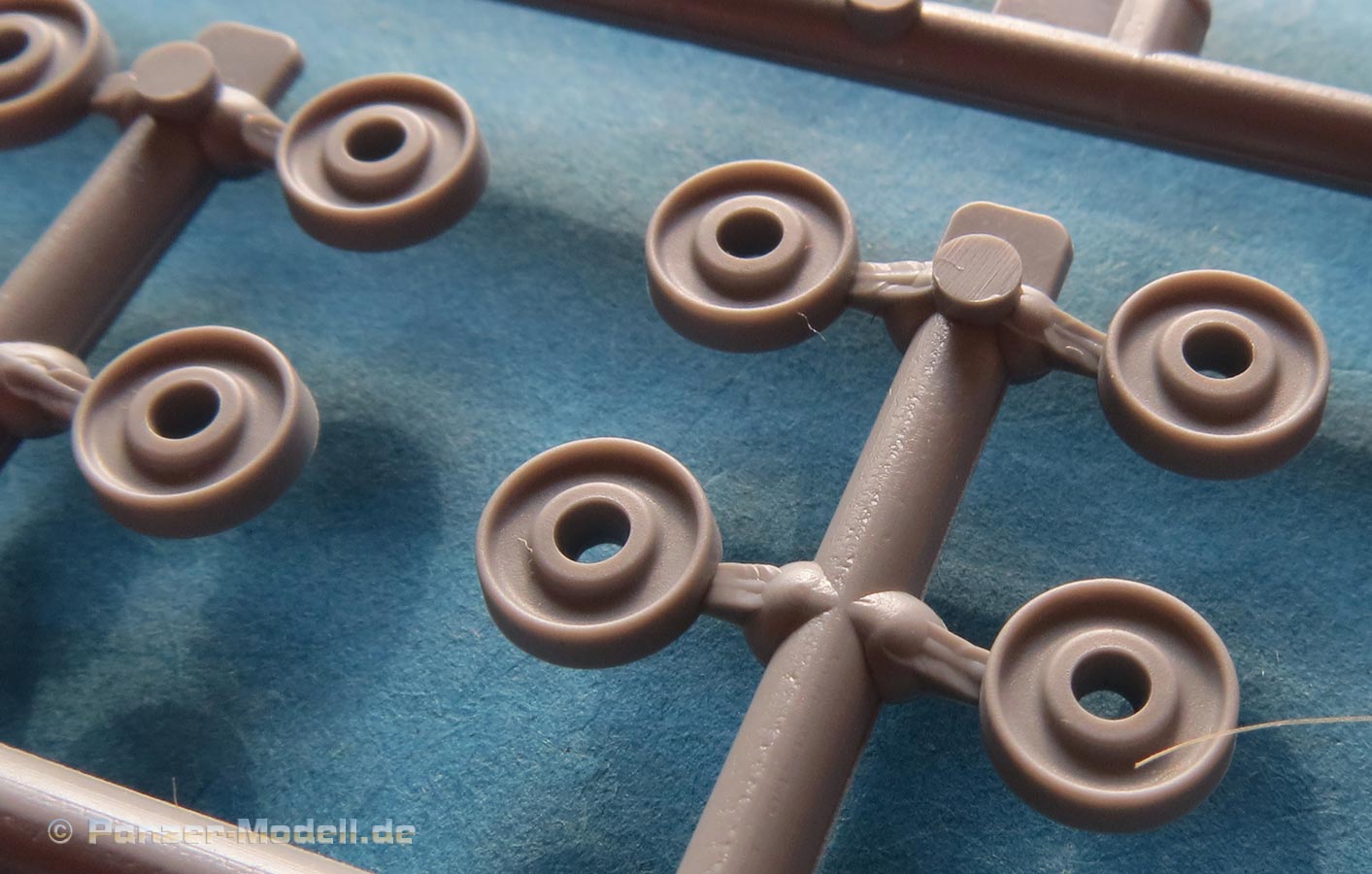 Die Ketten liegen als Vinylketten vor, wobei sich mir nicht erschließen will, warum sich jeder Strang auch noch in zwei Hälften unterteilt, denn dieses Material zu verbinden gestaltet sich immer etwas schwierig, zumal hier die Kontaktstellen nahezu winzig sind. Die Detaillierung der Kette macht soweit einen ganz guten Eindruck - auf der Innenseite finden sich ein paar kleine Auswerferstellen, die aber am Modell kaum sichtbar sein dürften.