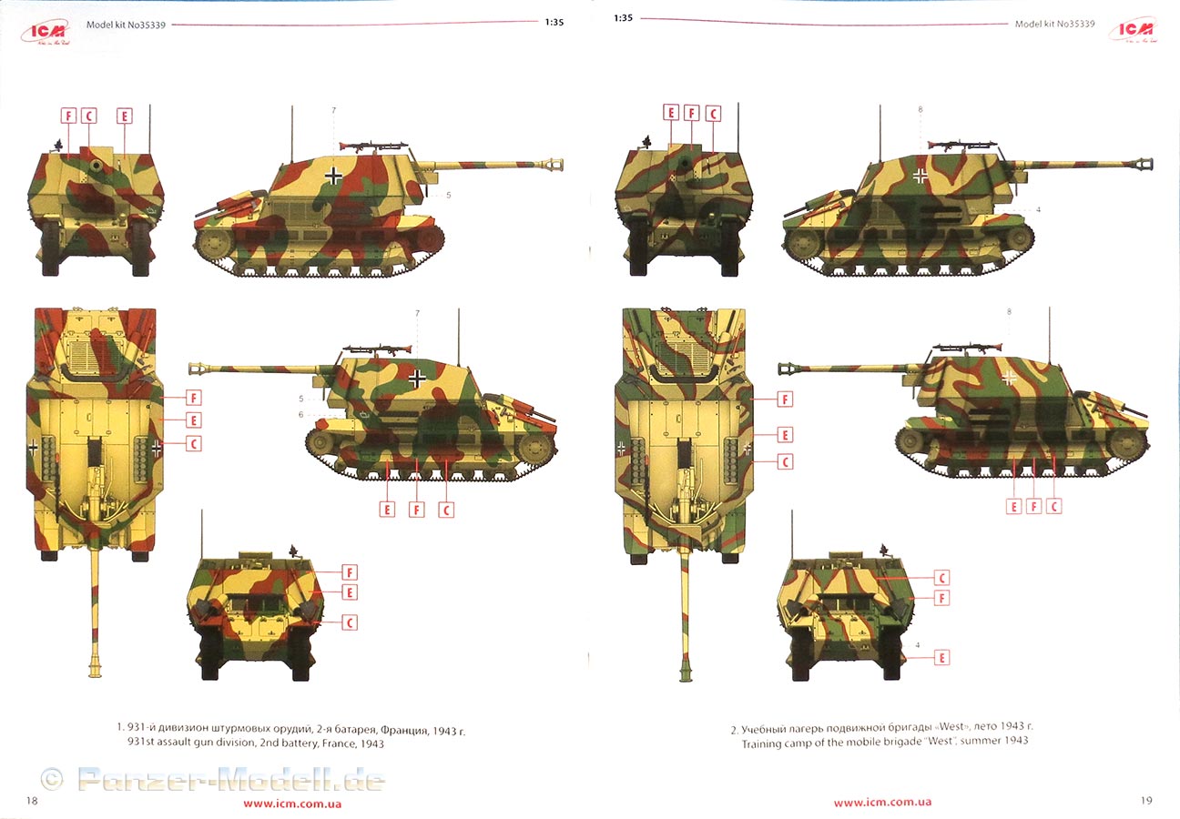 Die Decals sind seidenmatt mit geringem Trägerrand und mit dünnen Trägerfilm. Zusammen mit den drei farbig gedruckten Farbprofilen am Ende der Anleitung lassen sich folgende Fahrzeuge darstellen: