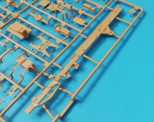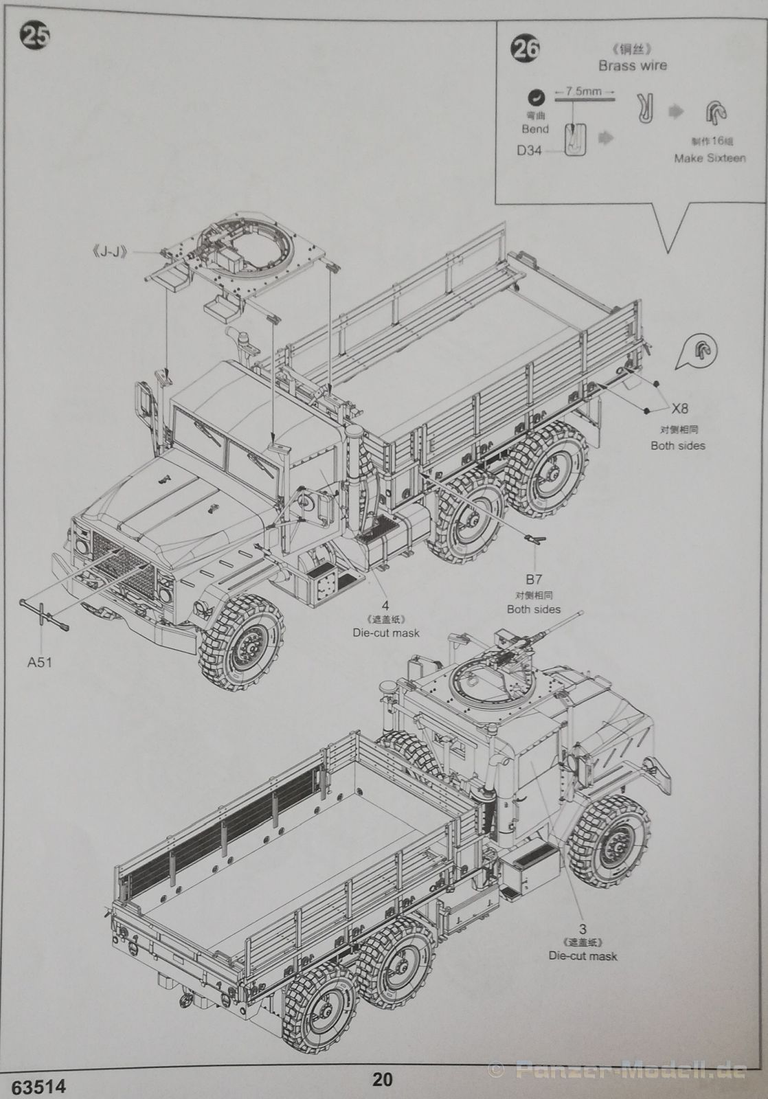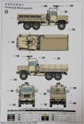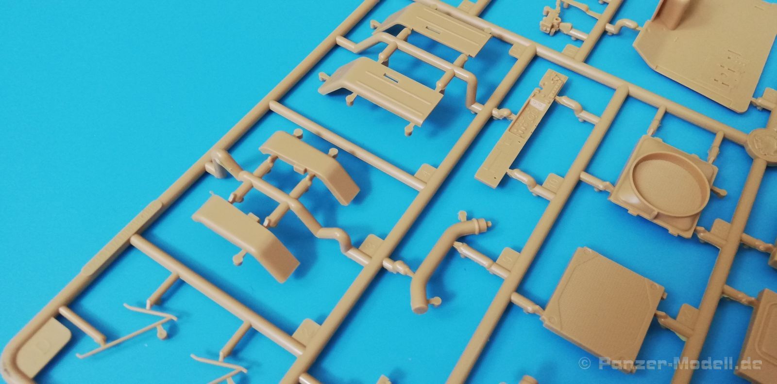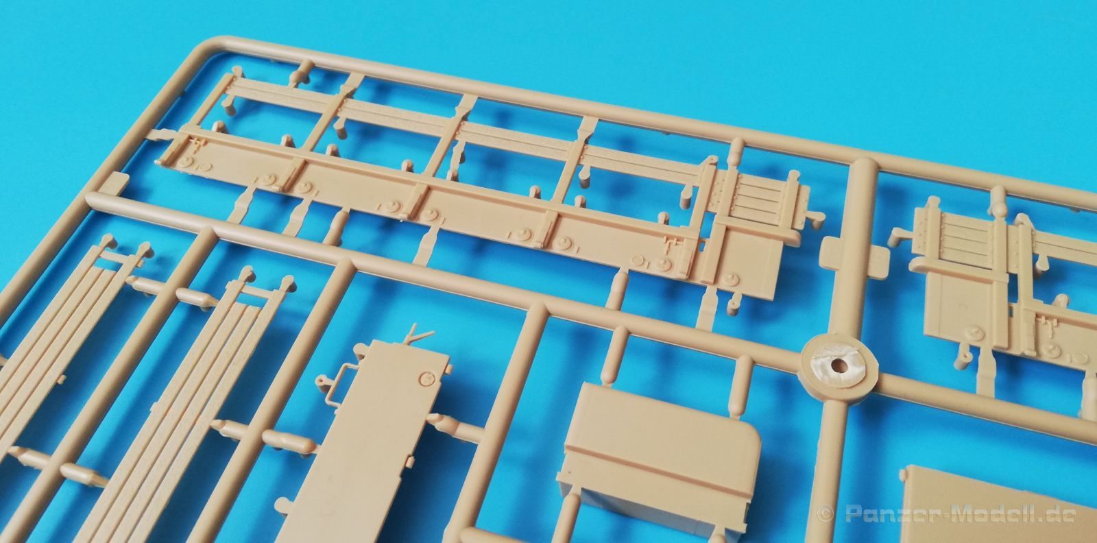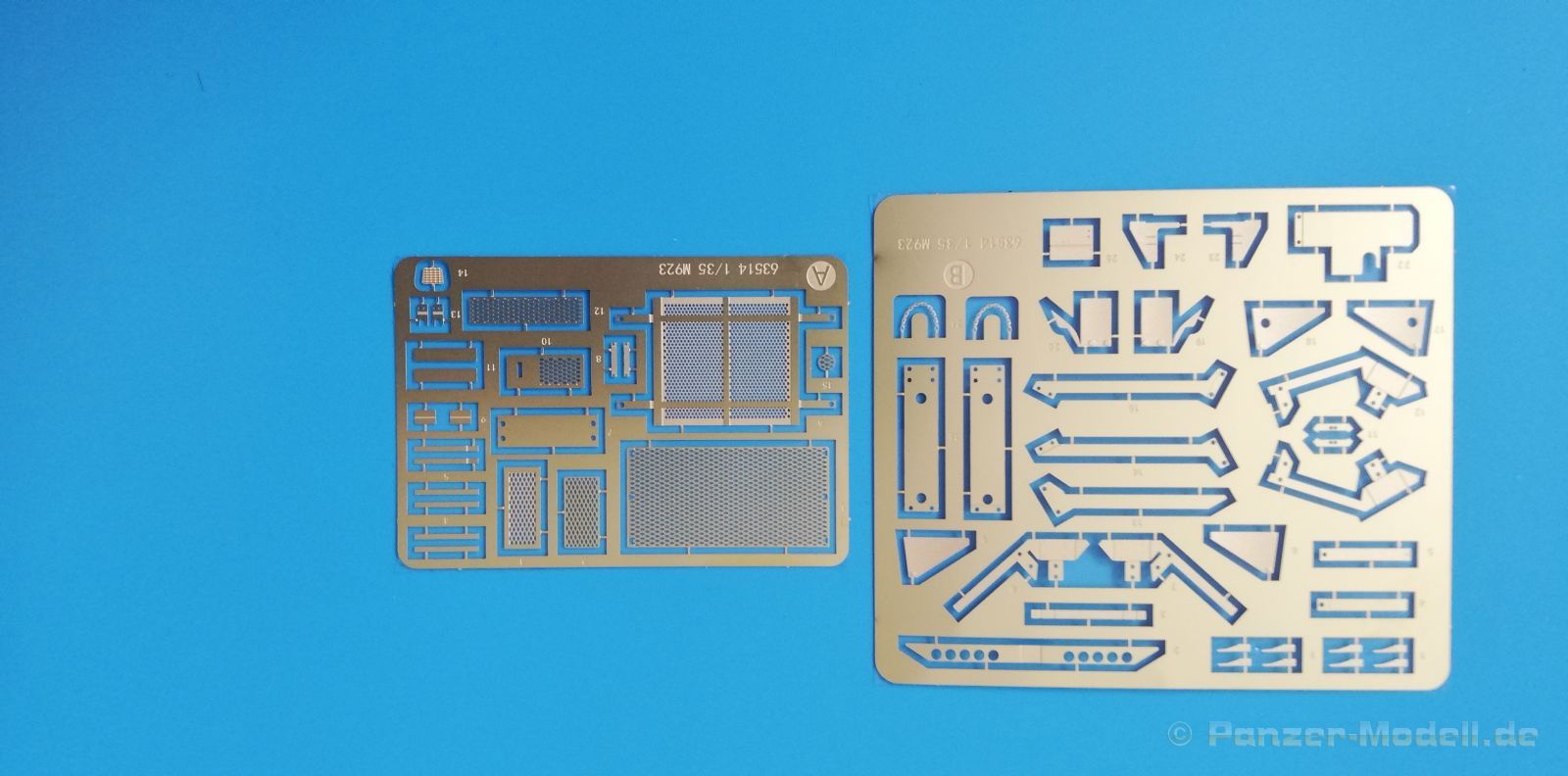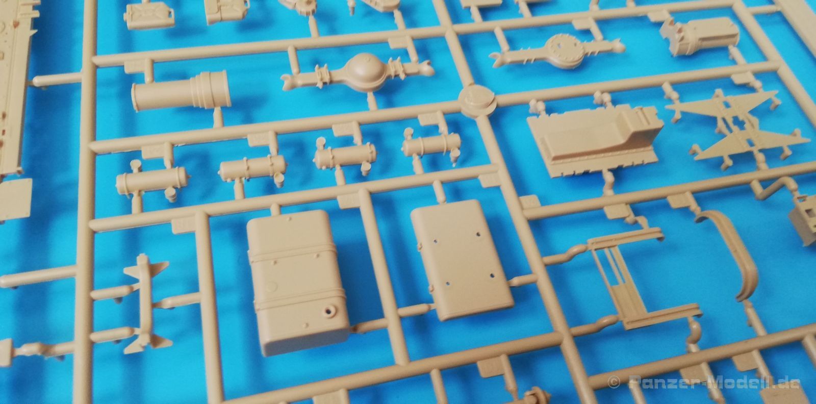 Die M939 Serie von LKW wurde Ende der 1970er Jahre als Ersatz für die Lkw-Serien M39 und M809 entwickelt und befindet sich seitdem im Einsatz bei der U.S. Army und dem U.S. Marine Corps. Wie auch bei den Vorgängerserien wurde bei den M939 eine ganze Familie von Lastkraftwagen entwickelt, unter anderem Muldenkipper, Sattelzugmaschinen, Kofferfahrzeuge, Abschleppwagen und Spezialkarosserien. Insgesamt wurden 44.590 Stück produziert Auch in Deutschland waren und sind diese Standard LKW ein gewohnter Anblick bei den hier stationierten U.S. Einheiten. Der Hersteller I Love Kit bringt nun laut des Kartons die Version M923A2 auf den Markt. Hieraus ergeben sich zwei Fragen: Wer ist I Love Kit und ist es ein M923A2? Der Hersteller war bis vor einiger Zeit als Merit bekannt, und ist eine der Marken aus dem Hause Trumpeter/ Hobby Boss. Hier ist also einiges an Erfahrung in Sachen Formenbau vorhanden, und der Hersteller ist kein Neuling auf diesem Gebiet. Nun zum Modell. Gemäß den Angaben soll es sich um einen M923A2 LKW handeln. Diese wurden ab 1987 neu für das U.S. Militär produziert und zeichneten sich durch einige, teilweise auch äußerlich erkennbare, Merkmale aus. Hier wären die Reifendruckregelanlage, der angeschrägte Tank und die zusätzlichen Zurrösen an der Unterseite der Frontstoßstange zu nennen. Alle diese Merkmale hat das Modell nicht, so stellt es doch den Vorgänger M923A1 dar. Dieser hatte bereits sie größeren Reifen 14:00 R20 mit der Einzelbereifung auf den Hinterachsen im Gegensatz zum M923 mit den kleineren Riefen 11:00 R20 und der Doppelbereifung auf den Hinterachsen. Der Bausatzinhalt umfasst siegen Sandfarbene und einen klaren Spritzling, eine Fahrerkabine welche separat beiliegt, zwei PE Platinen, einen Draht, eine Feder einen Decalbogen, sieben Reifen aus Vinyl, Masken zum Abkleben der Scheiben und eine Bauanleitung. Alle Bauteile machen einen guten Eindruck. Es sind viele Details und Hinterschneidungen vorhanden, wobei einige Details etwas schärfen hätten ausfallen können. Fischhäute oder Auswerfermarken an später sichtbaren Stellen sind auch bei genauem Hinsehen nicht zu entdecken. Die vorhandenen Fotoätzteile sind beim Bau zu verwenden, optionale Plastikteile sind nicht vorgesehen. Der Bau des LKW beginnt typischerweise mit dem Rahmen. Hier werden bereits viele schöne Details sichtbar, von den sehr schönen Getriebebauteilen bis zu den sehr gut ausgeführten Blattfedern. Die Ersatzradhalterung mit dem Hilfskran für die großen Reifen ist bei diesem Bausatz sehr gut dargestellt und wird mit einigen Fotoätzteilen verfeinert. Die sieben beiliegenden Reifen aus Vinyl machen einen guten Eindruck, es ist lediglich eine sehr feine Naht auf der Lauffläche vorhanden. Diese kann man mit einem scharfen Skalpell jedoch recht einfach entfernen. Erfreulicherweise sind die Herstellerangaben auf den Reifenflanken vorhanden. Auch die Pritsche ist wieder mit tollen Details ausgestattet. So ist zum Beispiel Draht beigelegt, aus dem die Verzurrösen an der Pritsche gebogen werden müssen. Zu diesem Zweck ist an einem der Spritzlinge eine Biegehilfe vorhanden. Auch wird einiges an Fotoätzteilen an der Pritsche benötigt. Optional können auf der Pritsche Sitzbänke ausgeklappt oder hochgeklappt angebracht werden. Leider fehlt eine Darstellung der Spriegel oder einer Plane. Hier muss der Modellbauer selber tätig werden, oder auf Produkte aus dem Aftermarket zurückgreifen (Mit etwas Anpassen sollte die Plane vom M54A2 von AFV-Club passen, falls benötigt). Die Bauanleitung im typischen Trumpeter/ Hobby Boss Stil ist etwas kleiner als DIN A4, und führt in fünfundzwanzig leicht verständlichen Baustufen zum Ziel. Als Bemalungsvorschläge sind zwei Fahrzeuge vorhanden.