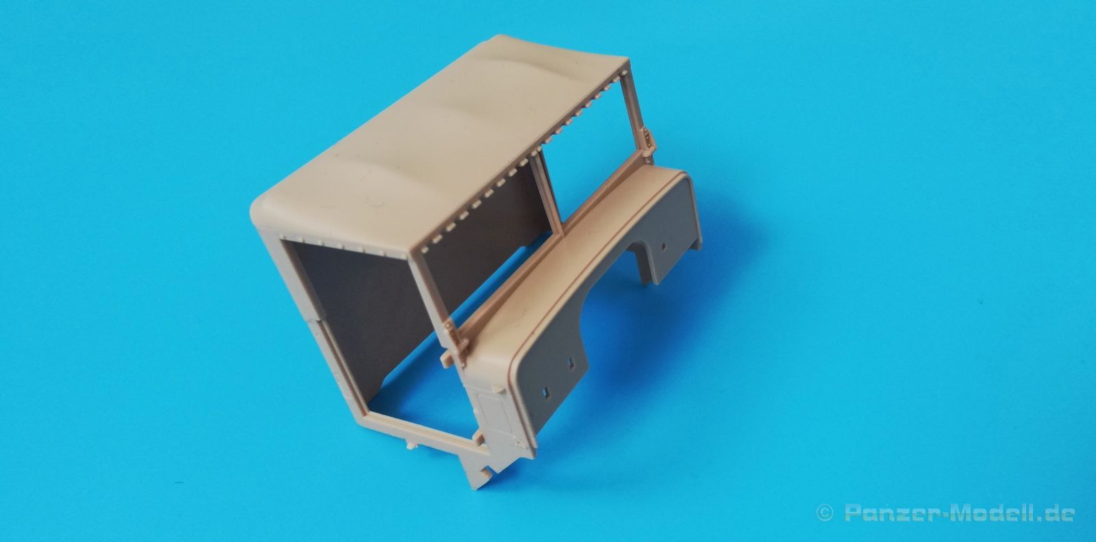 Wenn ich richtig liege, zeigen sie einen Lkw der 45th Corps Support Group (45th CSG) aus den Schofield Barracks in Honolulu/ Hawaii in NATO Anstrich. Den zweiten Vorschlag kann ich leider nicht zuordnen, jedoch ist hier ein Fahrzeug im sandfarbenen Anstrich zu sehen. Die Decals sind scharf und ohne Versatz gedruckt Erfreulicherweise sind hier einige Maskierschablonen für die Scheiben des Fahrzeuges enthalten, so dass bei der Lackierung des Fahrzeuges nicht viel Schiefgehen kann. Mein Fazit: Ein guter Bausatz, der für den Profi und den fortgeschrittenen Anfänger (Aufgrund der Fotoätzteile und des zu biegenden Drahtes) sehr gut geeignet ist.