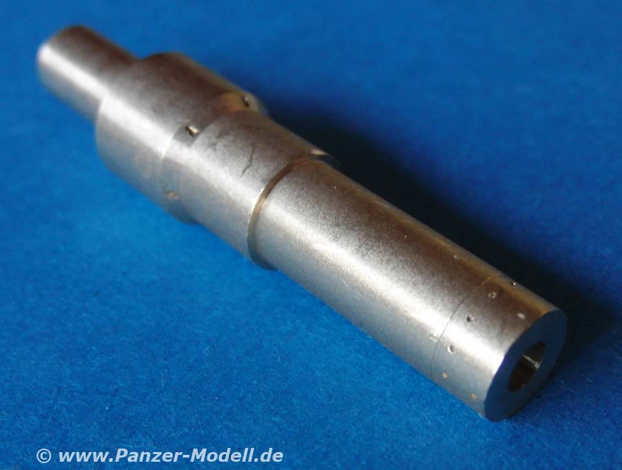 Desweiteren sind neue Motorlüfter, Stoßdämpfer, zwei verschiedene Rauchabsauger, Abdeckbalg, drei verschiedene Mündungen und ein paar Kleinteile enthalten. Dazu sind vier metallgedrehte Teile für das 120mm Kanonenrohr enthalten, die mit den Resinteilen zusammengesteckt werden. Der Clou dabei ist, dass man wahlweise das L/44 Rohr der Leopard 2 A4 und A5 oder das L/55 Rohr der A6 und A6M bauen kann und dabei die korrekte Mündung aus Resin anbaubar, denn es sind drei verschiedene enthalten. Die Metallteile machen einen guten Eindruck und sind sehr sauber gedreht. Die Resinteile des Rohrs sind ebenfalls sauber und wissen zu gefallen. Die Struktur des alten Rauchabsaugers ist angedeutet und scheint bei extremer Nahaufnahme ein wenig zu grob zu sein - aus normaler Betrachtungsentfernung passt das allerdings wieder ganz gut. Der neue Rauchabsauger ist sehr fein und ein wenig rau strukturiert - so hat jeder die Auswahl was ihm besser gefällt.