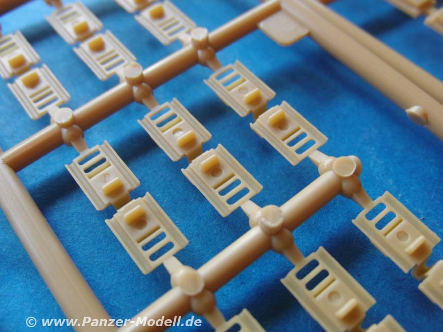Die Spritzgussteile von Bronco sind fein und fehlerfrei gespritzt stellen die DIEHL 570P Kette für leopard 2 dar. Durch die raffinierte Bauweise bleibt die Kette beweglich, was besonders zum Bemalen und Aufziehen von Vorteil ist.