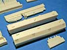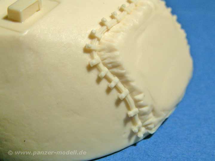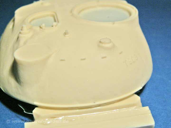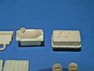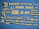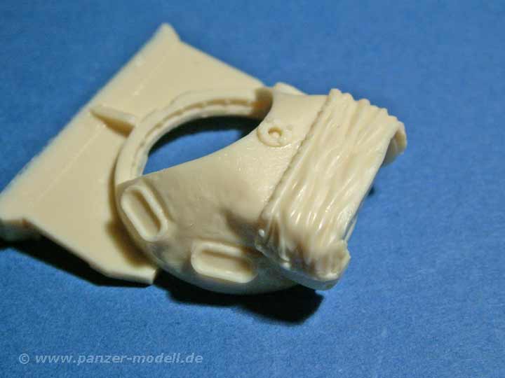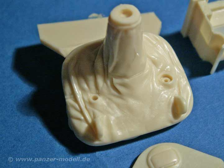 Das Set ist der Hammer - soviel vorweg. In einer recht großen Schachtel finden sich knapp 90 Resinteile die in einer unglaublich guten Gussqualität daherkommen - allein die Pberwanne in einem Stück ist eine wahre Freude, denn Luftbläschen oder Verzug (wie man es bei großen Teilen ja oft findet) sind hier absolute Fehlanzeige - stattdessen finden sich hier feinste wiedergegebene Details, kleine Griffe und absolut saubere und einheitliche Lüftergrätings, die in dieser Variante das flache Motordeck bestimmen. Aber auch auf die leicht rauhe Gussstruktur der Wanne und des Turms wurd nicht verzichtet. Auch dr Turm ist eine Augenweide mit dieser rauhen Struktur und den feinen Ösen und Verzurrungen der Schutzplane an der Kanonenblende! Desweiteren finden sich hier natürlich die alte Kommandantenkuppel mit MG, eine neue Kanonenblende mit neuem Rohr und neuer Mündungsbremse, weiteres Turmzubehör und die Entfernungsmesser. Natürlich ist auch ein neues Wannenheck dabei, das exzellent wiedergegeben ist und mit den entsprechenden Anbauteilen versehen werden kann. Ein ganz wichtiges Merkmal ist die Spannrolle, die zwischen letzter Laufrolle und Treibrad sitzt, die in diesem Set natürlich nicht fehlt. Doch der Detailwahnsinn geht weiter - weitere Klein-Anbauteile, wie Scheinwerfer, Abschleppösen, Kanonenverzurrung, usw sind enthalten wie eben auch ein großer PE-Bogen. Dieser macht aus diesen sehr guten Set ein ultimatives, denn es ergänzt in hervorragender Weise die Teile, die für Resinguss zu fein wären - da wären z.B. die Schutzbügel für die Beleuchtungsanlage, sämliche Halterungen der Kettenbleche und als Versteifungen - als besonderer Clou werden diese Nietenbleche noch mit feinen Resinnieten versehen werden sollen, was die Optik enorm aufwertet - die Nieten liegen dem Set natürlich bei und müssen nur von der Basis abgetrennt werden (es handelt sich um die Teile "10", denn das kommt auf der Bauanleitung nicht so klar raus).