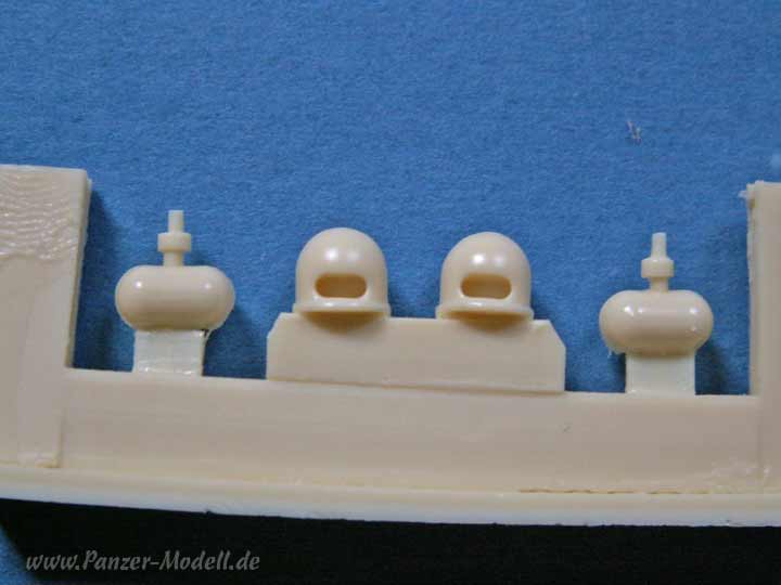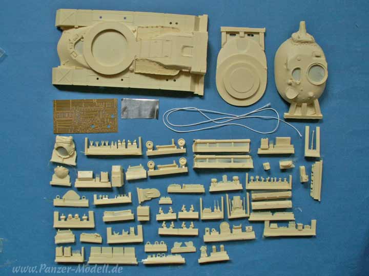 Im Karton finden sich neben einer komplett neuen Oberwanne mit hochgezogenem Motordeck und dem komplett neuen Turm mit sämtlichen Anbauteilen. Viele der Teile sind bereits aus dem A1 Umbausatz bekannt und in gleich guter Qualität vorhanden.