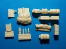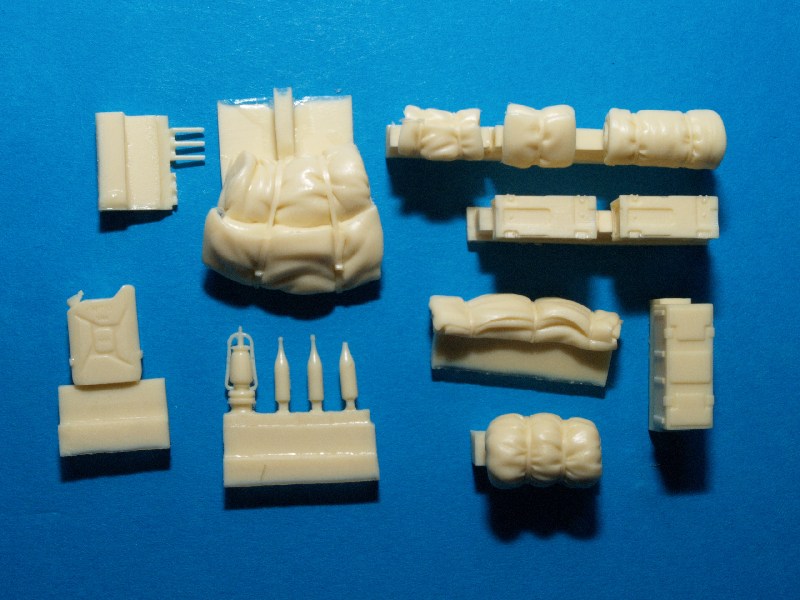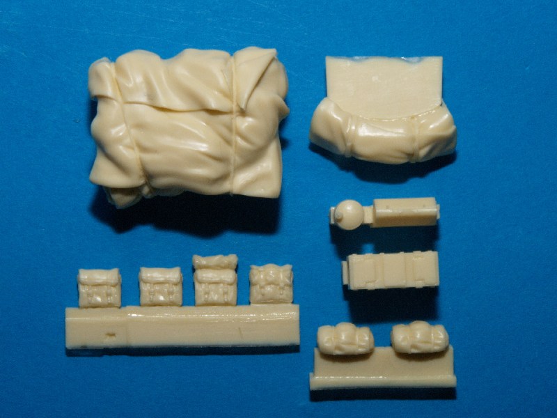 Mit diesem Set kann man Broncos Humber Scout Car deutlich aufwerten. und passend beladen. In dem Karton finden sich zwar eine Menge Zurüstteile, beim Betrachten des Packungsbildes fällt aber auf, dass die gesamte Beladung doch recht stimmig wirkt. In dem Set finden sich neben diversen Kisten und Benzinkanistern auch einige Planen, welche an die Kontur des Humber Scout Cars angepasst wurden. Die Qualität der einzelnen Teile aus cremefarbenen Resin ist sehr gut, so sucht man Luftblasen vergeblich und die Angüsse sind an Stellen angebracht, die nach dem Verbau später nicht mehr sichtbar sind.