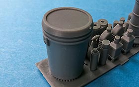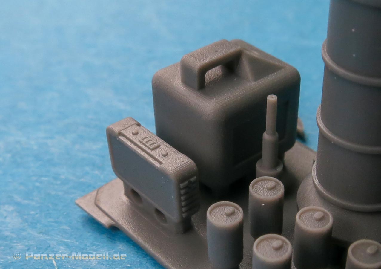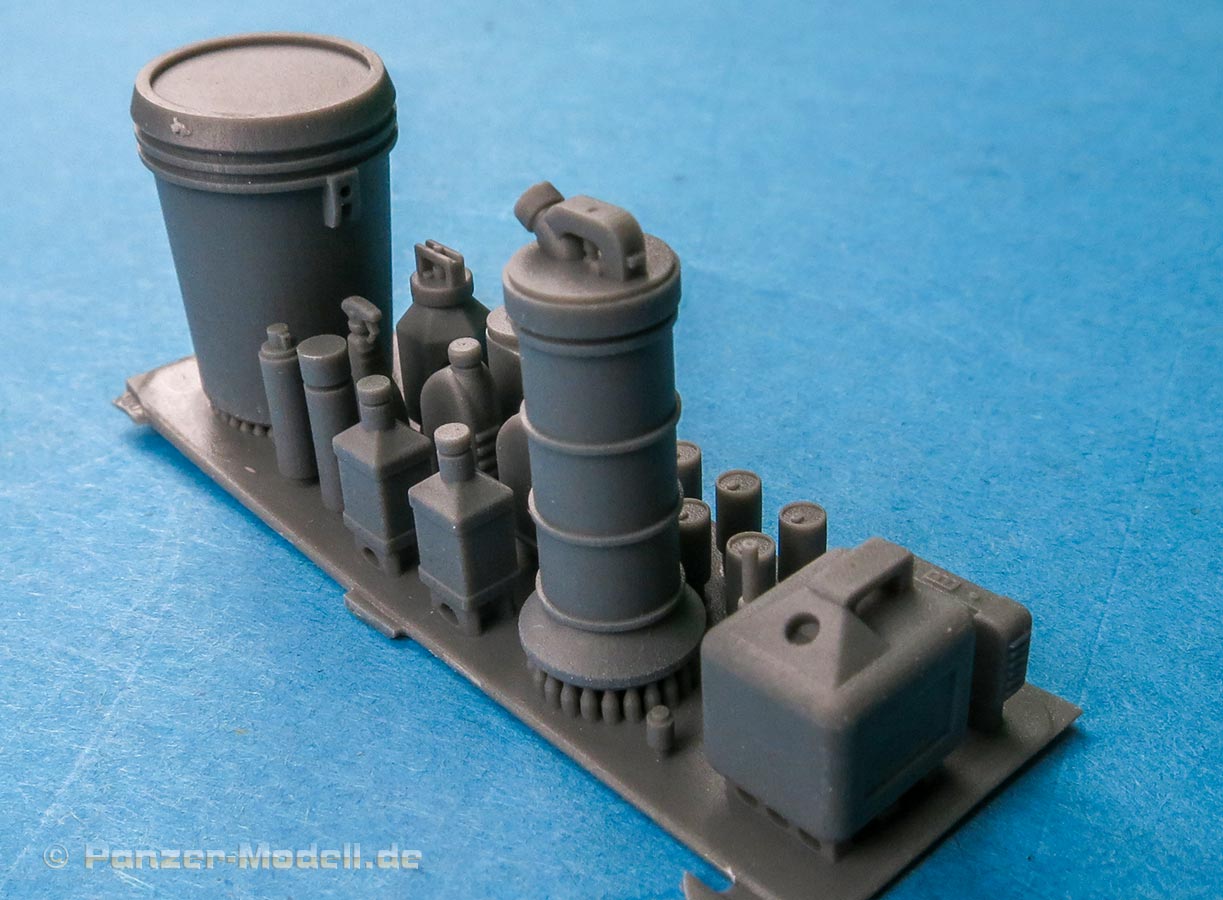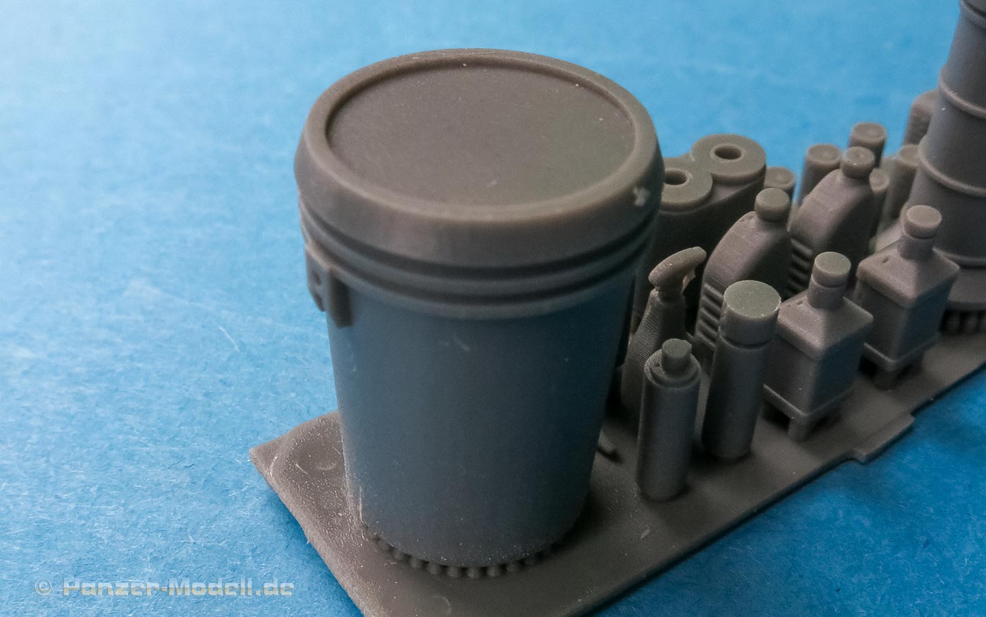 LIANG Model aus China bietet dem Modellbauer moderne Getränkeflaschen und -kisten gleich im Maßstab 1:35. Das vorgestellte Set besteht aus einer hellgrauen Druckbasis und einem Decalbogne (fehlte in meinem Muster). Der Druck sieht exzellent und sauber aus, mit sehr feinen Details. Auf der Druckbasis finden sich knapp 20 Bauteile, die diverse Behältnisse aus dem zivilen Leben beinhaltet. Darunter eine größere Tonne, Dosen, Kanister, Sprühflaschen, Küchenrollen, usw. Die Teile sitzen auf recht kleinen Stützstrukturen und sollten schnell angetrennt sein. Mit den beiliegenden Decals kann man die Teile alle entsprechend versehen damit sie zusammen mit der Bemalung die einzelnen Teile exzellent aussehen. Ein nettes Set, das mit entsprechender Bemalung seine Wirkung zeigt.