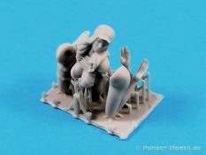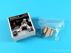 Es ist erstaunlich was im Bestand der o.g. Firma alles zu finden ist. Diesmal liegt uns eine Figur vor, die mit dem reinigen bzw. säubern eines Panzers (oder ähnlichen Fahrzeug) beschäftigt ist. Anatomisch ist die Dame durchaus korrekt und schön modelliert, wenn für 1:35 auch relativ zierlich. Auf der Grundplatte finden wir insgesamt fünf sehr fein gedruckte Teile. Der Rumpf ist mit den Beinen und Armen zu komplettieren. Die Details, vom Gesicht angefangen, umrahmt von einer wallenden Haarpracht über die Finger der Hände bis zu den Füßen können in ihrer Gesamtheit durchaus überzeugen. Mit gekonnter Bemalung dürfte die etwas freizügige Maid durch aus "Hingucker" werden. Als Einzelstück auf einem Sockel oder auf einem Dio¦ LIANG Model ist auf dem europäischen Markt mittlerweile kein Unbekannter mehr..