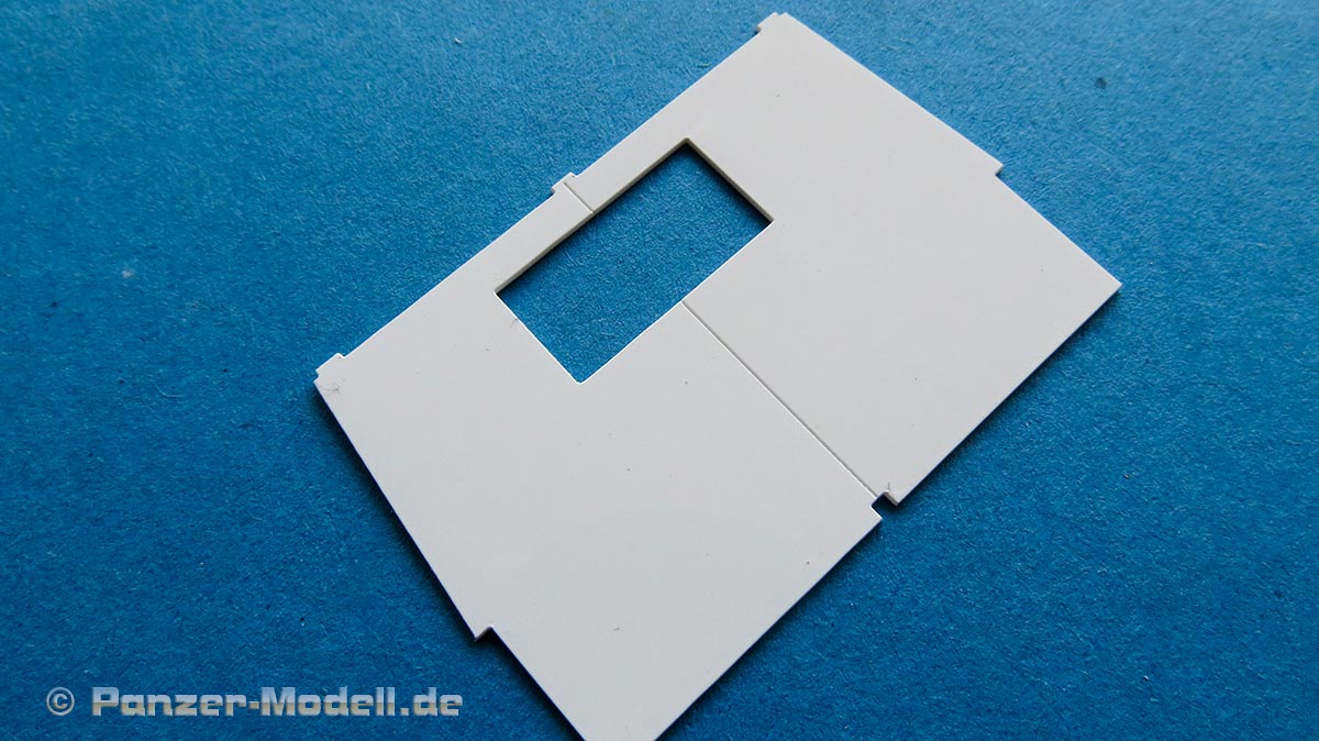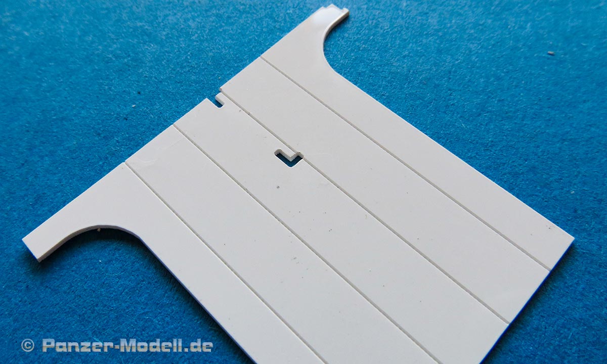 Für die Panzerungselemente sind astrein sauber gelaserte Plastikplatten enthalten. Diese lassen sich mit normalem Plastikkleber verkleben. Auf den Plastikplatten sind die entsprechenden Details direkt mit eingeprägt - absolut sauber und akkurat, dass es eine Freude ist. Glücklicherweise sind an den originalen Panzerplatten auch nicht mit vielen Oberflächendetails versehen.