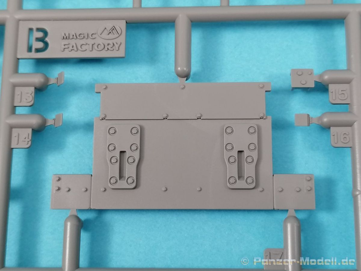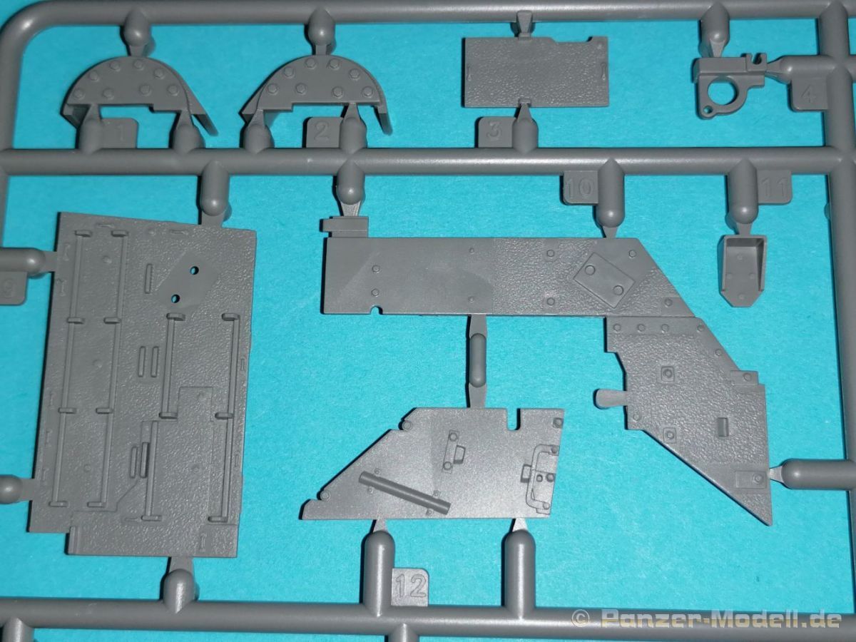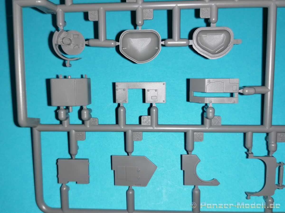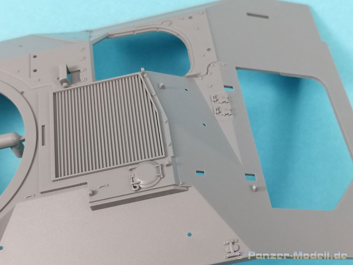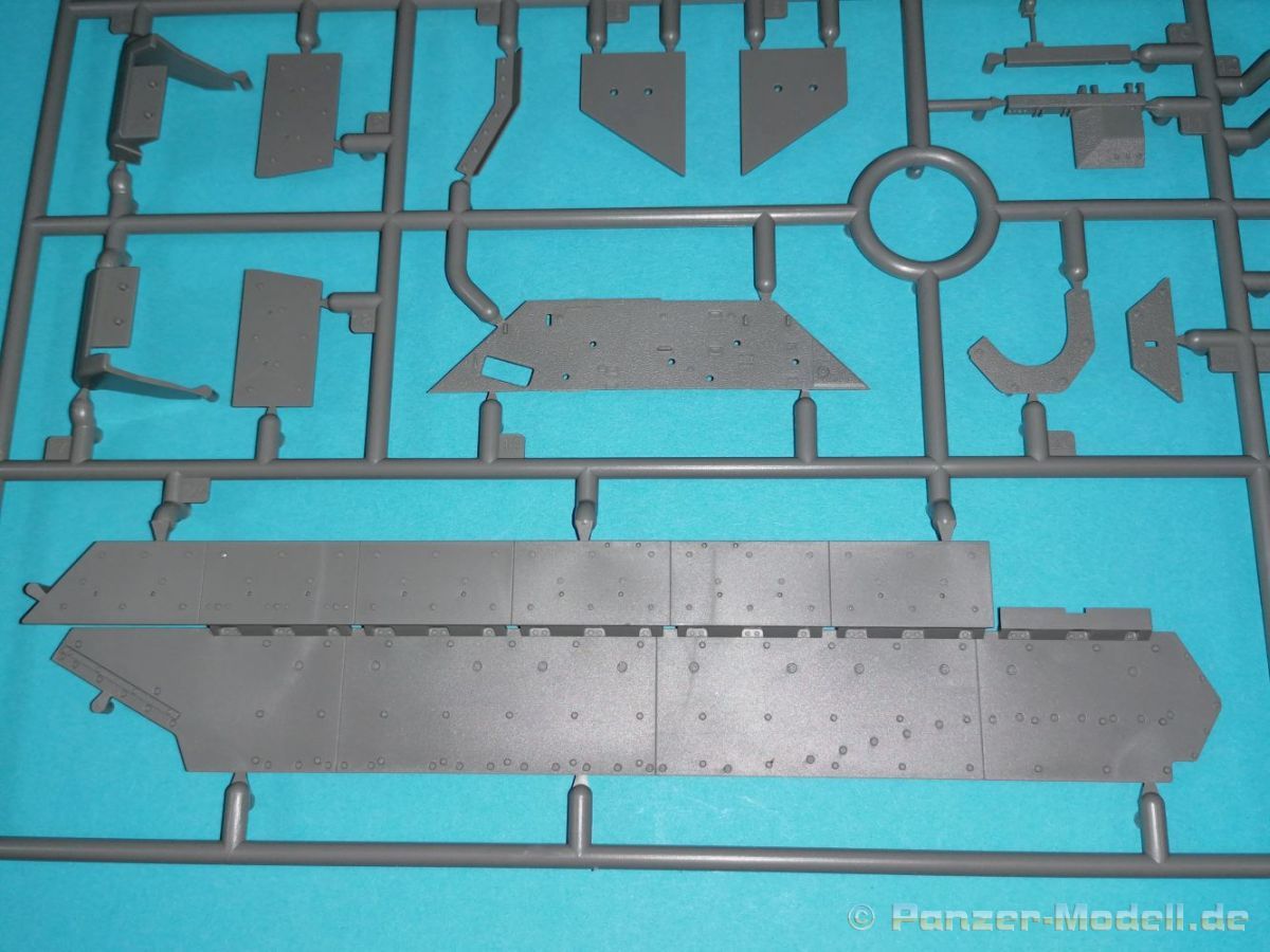 Auch Magic Factory hat sich mittlerweile dem Bradley zugewandt. Gut verpackt kommen die Bauteile in einem Top-Opener mit den Maßen 35x24x11,5 cm auf unsere Basteltische. 17 Rahmen in einem angenehmen Hellgrau, ein Spritzling mit Klarteilen, eine Panzer- und Oberwanne, dazu zwei PE-Platinen, einige Vinylteile und ein Decalbogen sowie eine kleinere als DIN-A4 Bauanleitung in Heftform. Schon auf den ersten Blick zeigt sich der Guß der Bauteile auf allerhöchstem Niveau. Es macht schon Spaß sich die einzelnen Gußrahmen Stück für Stück näher anzusehen. Auswerfermarken, Fischhaut, Senker, Formenversatz und/oder verzogene Teile sind keine auszumachen. Auswerfer sind samt und sonders in Bereichen die sich nach dem Zusammenbau dem Blick entziehen. Punkten können bei den Bauteilen die durchweg scharfen Details. Das gilt ebenso für die kleinen Teile. Erste Sahne! Eine Probepassung von Unter- und Oberwanne, absolut perfekt und spaltenfrei, deutet auch auf eine sehr gute Passform des Bausatzes hin. Wo nötig wurde die Slide-Mould-Technik angewandt. So sind die Mündungen der kleinsten Rohre der Waffen offen. Die Mündungsbremse der Maschinenkanone ist hervorragend umgesetzt und bedarf keinerlei Nacharbeit. Ebenfalls interessant die Tatsache das der Antirutschbelag feinst wiedergegeben ist. Hier kann eigentlich alles überzeugen. Auch kleinsten Details wie Nieten, Bolzen, Scharnieren, Verschlüssen etc. wurde Beachtung geschenkt. Die Klarteile, die ihren Namen zu Recht verdienen, geben keinen Anlaß zur Kritik. Alles schick! Die PEs, geschützt durch zwei Folien reihen sich in ihrer Feinheit in die hohe Qualität des Kits ein. Vorteil der größeren Platine sind bereits versäuberte Teile die direkt verbaut werden können. Auf der kleineren Platine finden sich diverse Abdeckgitter und als Gimmick noch eine Schablone für die Laufrollen. Was will man mehr. Einen überzeugenden Eindruck hinterlassen die Decals, die absolut im Register sind und auch farblich gefallen. Die noch offenen Vinylteile (Abdeckungen etc.) würde ich nicht verwenden da eine Verklebung schlecht oder gar nicht zu realisieren ist. Das kann aber jeder für sich entscheiden. Und damit geht es auch schon zur Bauanleitung. Diese umfasst 22 Seiten und bringt das Modell in 46 Baustufen zum Abschluß. Für die Bemalungsvorschläge etc. gibt es zusätzlich ein vierseitiges Faltblatt mit weiteren Informationen und Hinweisen. Während auf dem Deckblatt der Panzer im Riß mit seinen drei Varianten abgebildet ist geht es auf der nächste Seite mit einem Text zum Original weiter (chinesisch und englisch). Dazu die üblichen Hinweise zum Werkzeug und die Piktogramme für den Bau. Auf Seite zwei folgt dann wie gewohnt die Übersicht aller Bauteile bevor der Bau auf Seite drei startet. Anmerkung: Vor Baubeginn sollte man sich mit der Anleitung vertraut machen. Diese ist relativ komplex und enthält in den einzelnen Schritten evtl. leicht übersehbare Hinweise. Der geneigte Modellbauer sollte sich zuerst die Version aussuchen die er bauen möchte und anschließend die Hinweise in der Anleitung markieren. Denn nichts ist frustrierender als wenn man vom “rechten Pfad” abgewichen ist und das zu spät merkt. Da die Schrift relativ klein ist könnte eine Lupembrille von Vorteil sein.