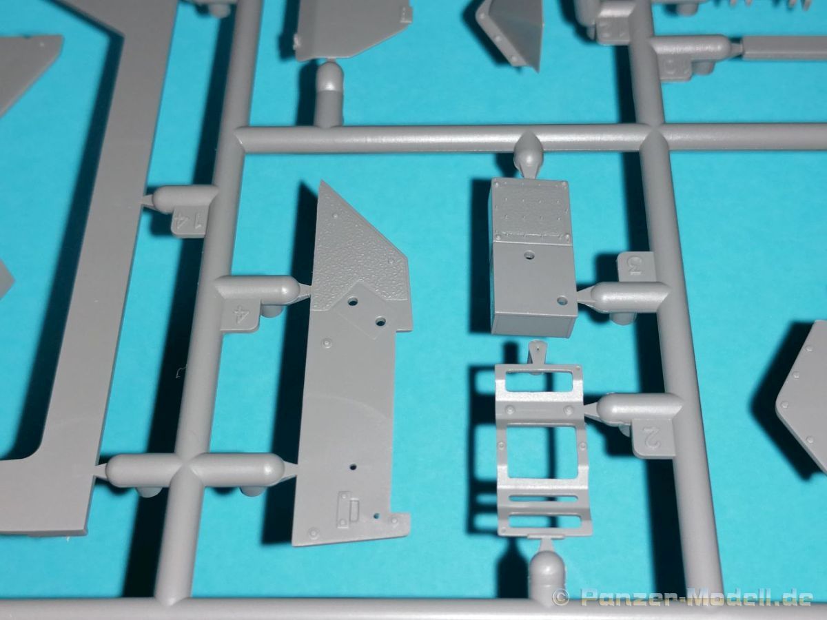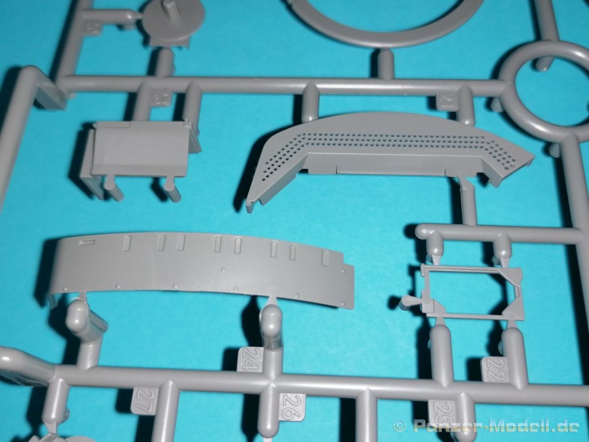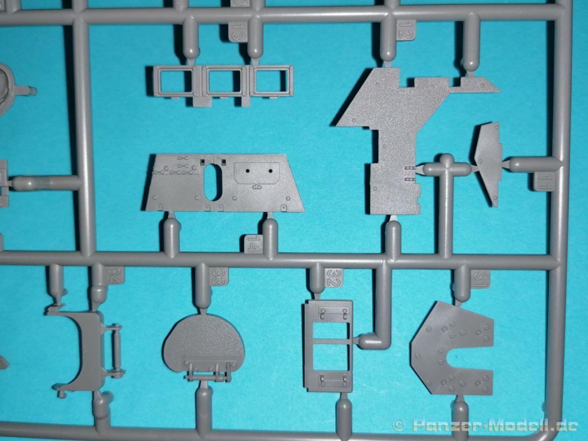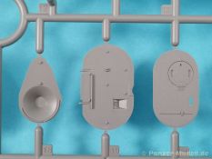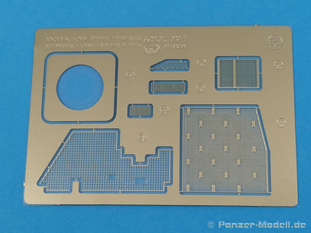 Auch Magic Factory hat sich mittlerweile dem Bradley zugewandt. Gut verpackt kommen die Bauteile in einem Top-Opener mit den Maßen 35x24x11,5 cm auf unsere Basteltische. 17 Rahmen in einem angenehmen Hellgrau, ein Spritzling mit Klarteilen, eine Panzer- und Oberwanne, dazu zwei PE-Platinen, einige Vinylteile und ein Decalbogen sowie eine kleinere als DIN-A4 Bauanleitung in Heftform. Schon auf den ersten Blick zeigt sich der Guß der Bauteile auf allerhöchstem Niveau. Es macht schon Spaß sich die einzelnen Gußrahmen Stück für Stück näher anzusehen. Auswerfermarken, Fischhaut, Senker, Formenversatz und/oder verzogene Teile sind keine auszumachen. Auswerfer sind samt und sonders in Bereichen die sich nach dem Zusammenbau dem Blick entziehen. Punkten können bei den Bauteilen die durchweg scharfen Details. Das gilt ebenso für die kleinen Teile. Erste Sahne! Eine Probepassung von Unter- und Oberwanne, absolut perfekt und spaltenfrei, deutet auch auf eine sehr gute Passform des Bausatzes hin. Wo nötig wurde die Slide-Mould-Technik angewandt. So sind die Mündungen der kleinsten Rohre der Waffen offen. Die Mündungsbremse der Maschinenkanone ist hervorragend umgesetzt und bedarf keinerlei Nacharbeit. Ebenfalls interessant die Tatsache das der Antirutschbelag feinst wiedergegeben ist. Hier kann eigentlich alles überzeugen. Auch kleinsten Details wie Nieten, Bolzen, Scharnieren, Verschlüssen etc. wurde Beachtung geschenkt. Die Klarteile, die ihren Namen zu Recht verdienen, geben keinen Anlaß zur Kritik. Alles schick! Die PEs, geschützt durch zwei Folien reihen sich in ihrer Feinheit in die hohe Qualität des Kits ein. Vorteil der größeren Platine sind bereits versäuberte Teile die direkt verbaut werden können. Auf der kleineren Platine finden sich diverse Abdeckgitter und als Gimmick noch eine Schablone für die Laufrollen. Was will man mehr. Einen überzeugenden Eindruck hinterlassen die Decals, die absolut im Register sind und auch farblich gefallen. Die noch offenen Vinylteile (Abdeckungen etc.) würde ich nicht verwenden da eine Verklebung schlecht oder gar nicht zu realisieren ist. Das kann aber jeder für sich entscheiden. Und damit geht es auch schon zur Bauanleitung. Diese umfasst 22 Seiten und bringt das Modell in 46 Baustufen zum Abschluß. Für die Bemalungsvorschläge etc. gibt es zusätzlich ein vierseitiges Faltblatt mit weiteren Informationen und Hinweisen. Während auf dem Deckblatt der Panzer im Riß mit seinen drei Varianten abgebildet ist geht es auf der nächste Seite mit einem Text zum Original weiter (chinesisch und englisch). Dazu die üblichen Hinweise zum Werkzeug und die Piktogramme für den Bau. Auf Seite zwei folgt dann wie gewohnt die Übersicht aller Bauteile bevor der Bau auf Seite drei startet. Anmerkung: Vor Baubeginn sollte man sich mit der Anleitung vertraut machen. Diese ist relativ komplex und enthält in den einzelnen Schritten evtl. leicht übersehbare Hinweise. Der geneigte Modellbauer sollte sich zuerst die Version aussuchen die er bauen möchte und anschließend die Hinweise in der Anleitung markieren. Denn nichts ist frustrierender als wenn man vom “rechten Pfad” abgewichen ist und das zu spät merkt. Da die Schrift relativ klein ist könnte eine Lupembrille von Vorteil sein.