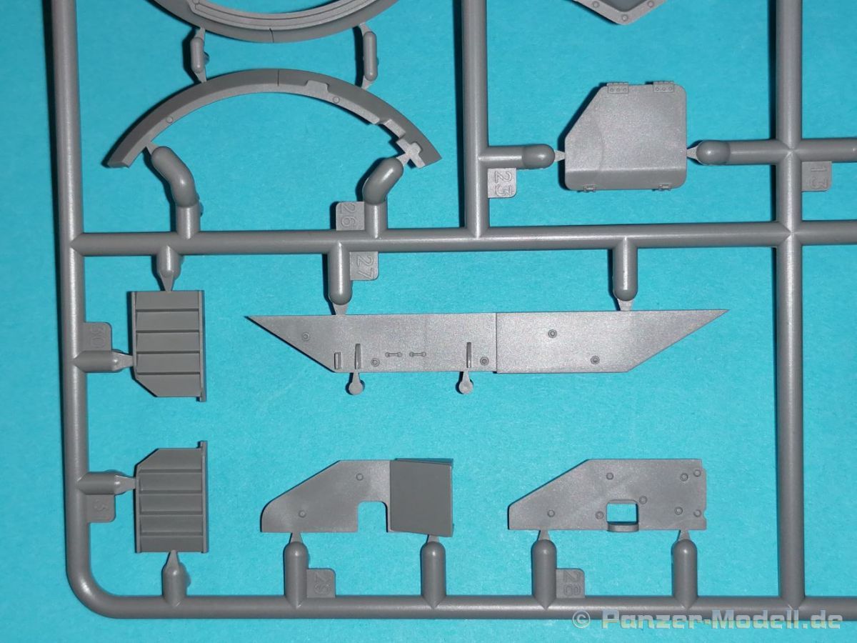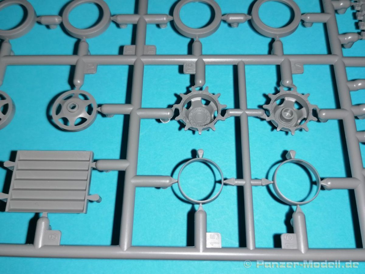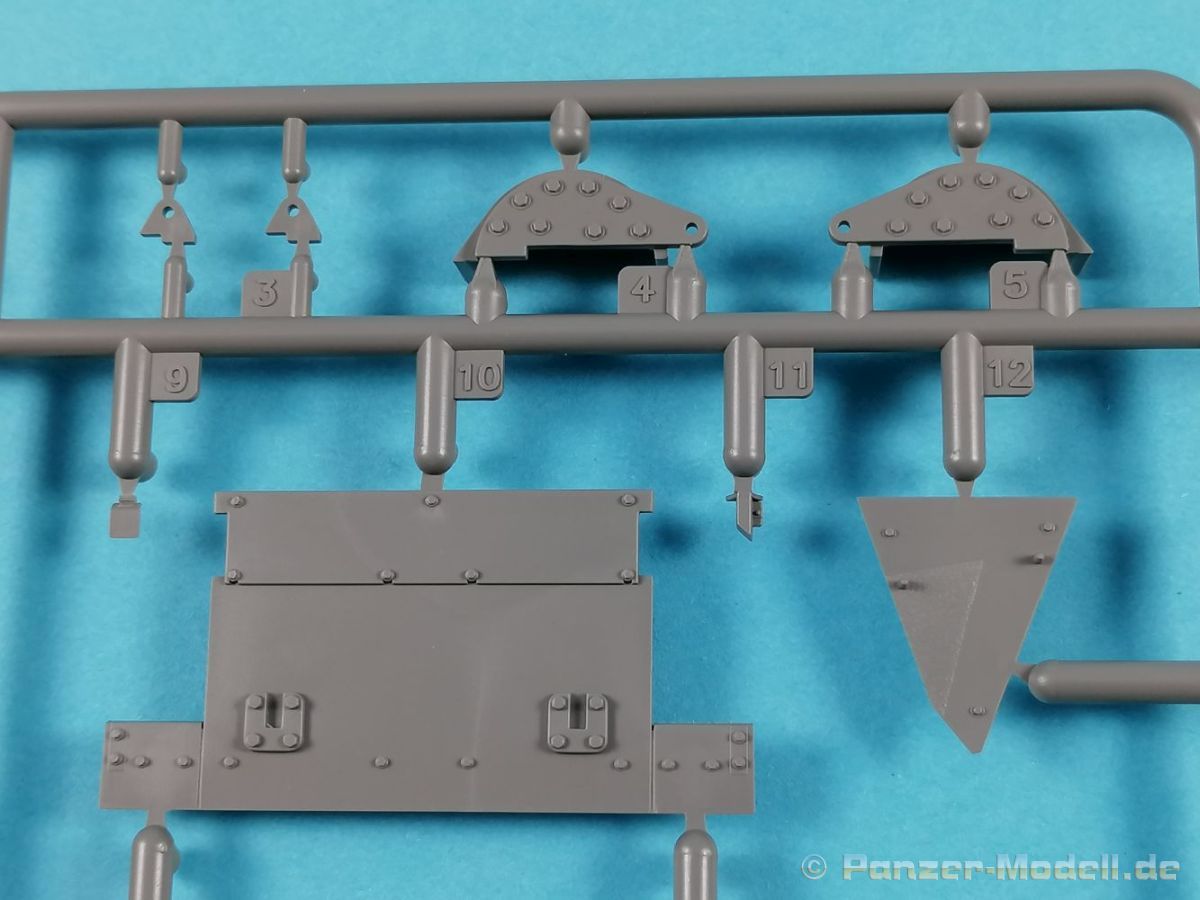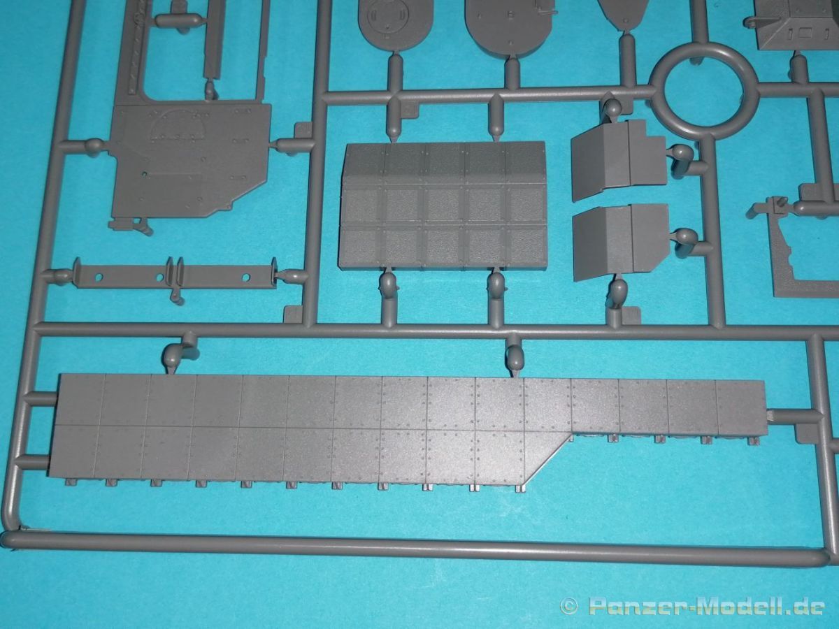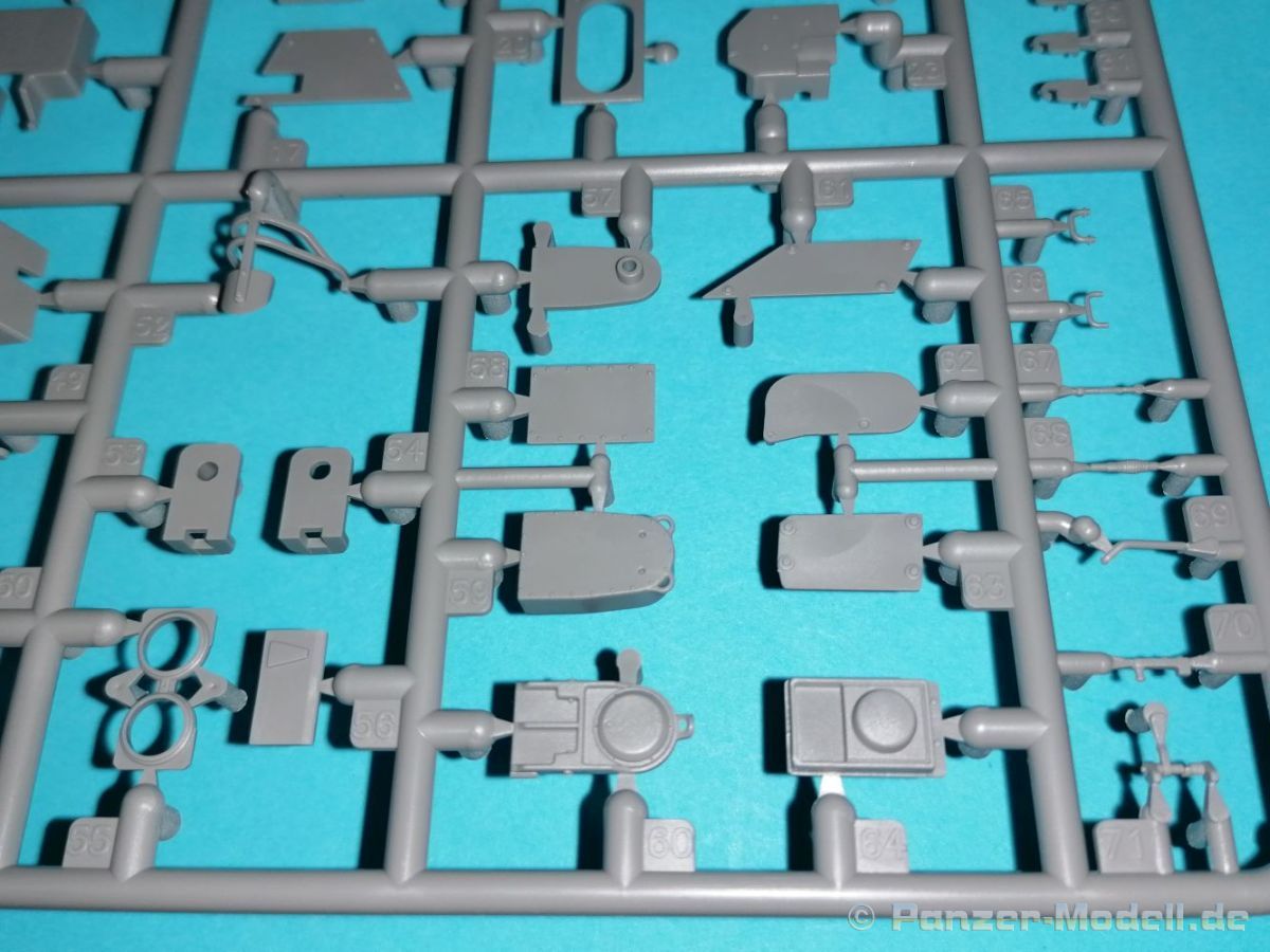 Auch Magic Factory hat sich mittlerweile dem Bradley zugewandt. Gut verpackt kommen die Bauteile in einem Top-Opener mit den Maßen 35x24x11,5 cm auf unsere Basteltische. 17 Rahmen in einem angenehmen Hellgrau, ein Spritzling mit Klarteilen, eine Panzer- und Oberwanne, dazu zwei PE-Platinen, einige Vinylteile und ein Decalbogen sowie eine kleinere als DIN-A4 Bauanleitung in Heftform. Schon auf den ersten Blick zeigt sich der Guß der Bauteile auf allerhöchstem Niveau. Es macht schon Spaß sich die einzelnen Gußrahmen Stück für Stück näher anzusehen. Auswerfermarken, Fischhaut, Senker, Formenversatz und/oder verzogene Teile sind keine auszumachen. Auswerfer sind samt und sonders in Bereichen die sich nach dem Zusammenbau dem Blick entziehen. Punkten können bei den Bauteilen die durchweg scharfen Details. Das gilt ebenso für die kleinen Teile. Erste Sahne! Eine Probepassung von Unter- und Oberwanne, absolut perfekt und spaltenfrei, deutet auch auf eine sehr gute Passform des Bausatzes hin. Wo nötig wurde die Slide-Mould-Technik angewandt. So sind die Mündungen der kleinsten Rohre der Waffen offen. Die Mündungsbremse der Maschinenkanone ist hervorragend umgesetzt und bedarf keinerlei Nacharbeit. Ebenfalls interessant die Tatsache das der Antirutschbelag feinst wiedergegeben ist. Hier kann eigentlich alles überzeugen. Auch kleinsten Details wie Nieten, Bolzen, Scharnieren, Verschlüssen etc. wurde Beachtung geschenkt. Die Klarteile, die ihren Namen zu Recht verdienen, geben keinen Anlaß zur Kritik. Alles schick! Die PEs, geschützt durch zwei Folien reihen sich in ihrer Feinheit in die hohe Qualität des Kits ein. Vorteil der größeren Platine sind bereits versäuberte Teile die direkt verbaut werden können. Auf der kleineren Platine finden sich diverse Abdeckgitter und als Gimmick noch eine Schablone für die Laufrollen. Was will man mehr. Einen überzeugenden Eindruck hinterlassen die Decals, die absolut im Register sind und auch farblich gefallen. Die noch offenen Vinylteile (Abdeckungen etc.) würde ich nicht verwenden da eine Verklebung schlecht oder gar nicht zu realisieren ist. Das kann aber jeder für sich entscheiden. Und damit geht es auch schon zur Bauanleitung. Diese umfasst 22 Seiten und bringt das Modell in 46 Baustufen zum Abschluß. Für die Bemalungsvorschläge etc. gibt es zusätzlich ein vierseitiges Faltblatt mit weiteren Informationen und Hinweisen. Während auf dem Deckblatt der Panzer im Riß mit seinen drei Varianten abgebildet ist geht es auf der nächste Seite mit einem Text zum Original weiter (chinesisch und englisch). Dazu die üblichen Hinweise zum Werkzeug und die Piktogramme für den Bau. Auf Seite zwei folgt dann wie gewohnt die Übersicht aller Bauteile bevor der Bau auf Seite drei startet. Anmerkung: Vor Baubeginn sollte man sich mit der Anleitung vertraut machen. Diese ist relativ komplex und enthält in den einzelnen Schritten evtl. leicht übersehbare Hinweise. Der geneigte Modellbauer sollte sich zuerst die Version aussuchen die er bauen möchte und anschließend die Hinweise in der Anleitung markieren. Denn nichts ist frustrierender als wenn man vom “rechten Pfad” abgewichen ist und das zu spät merkt. Da die Schrift relativ klein ist könnte eine Lupembrille von Vorteil sein.