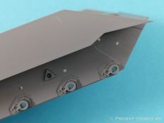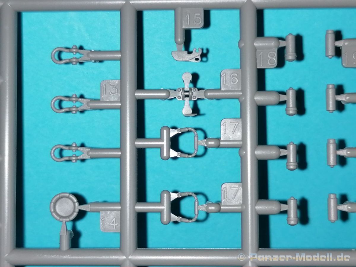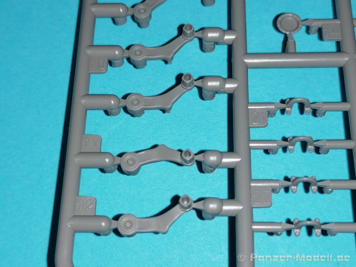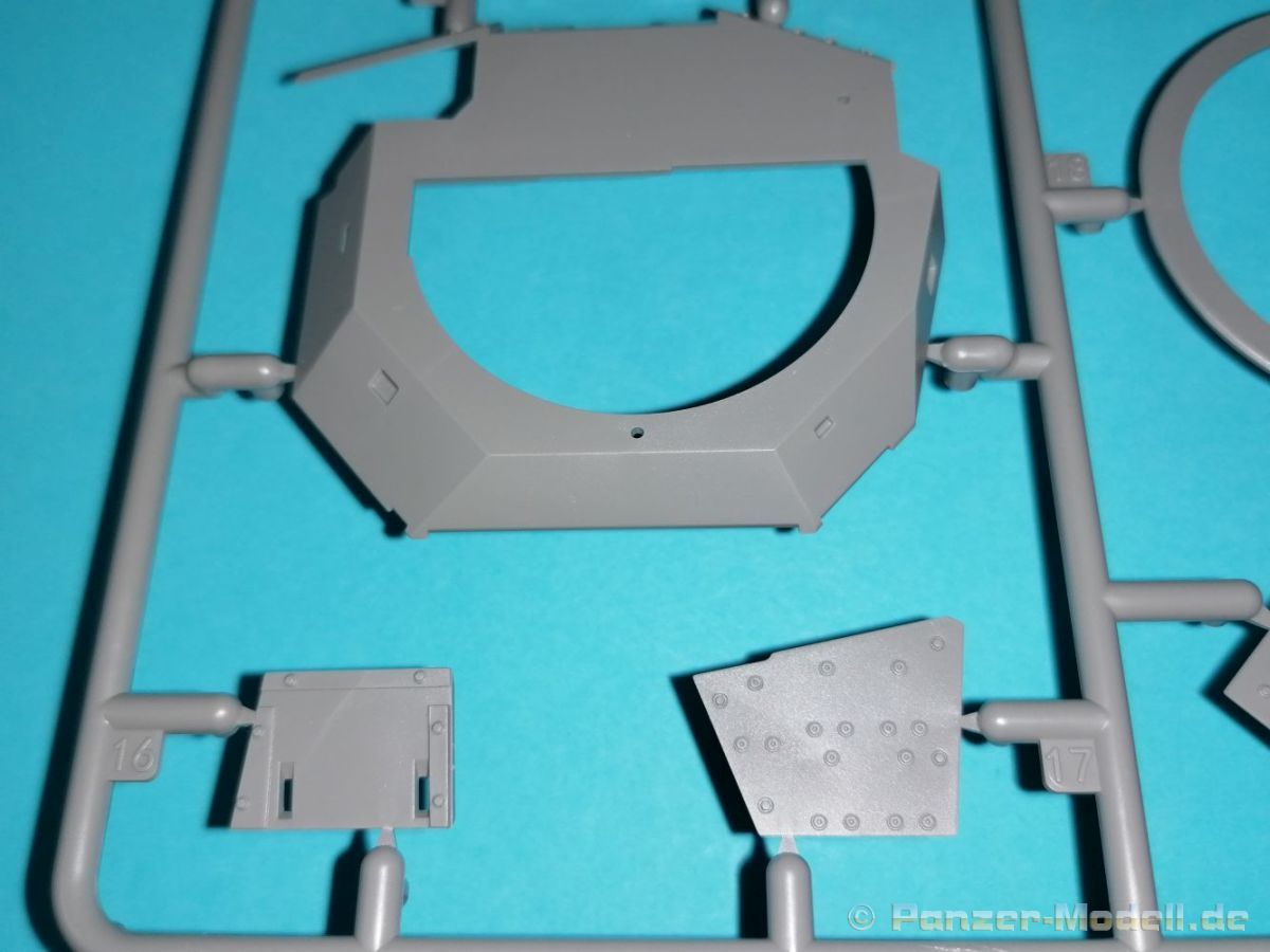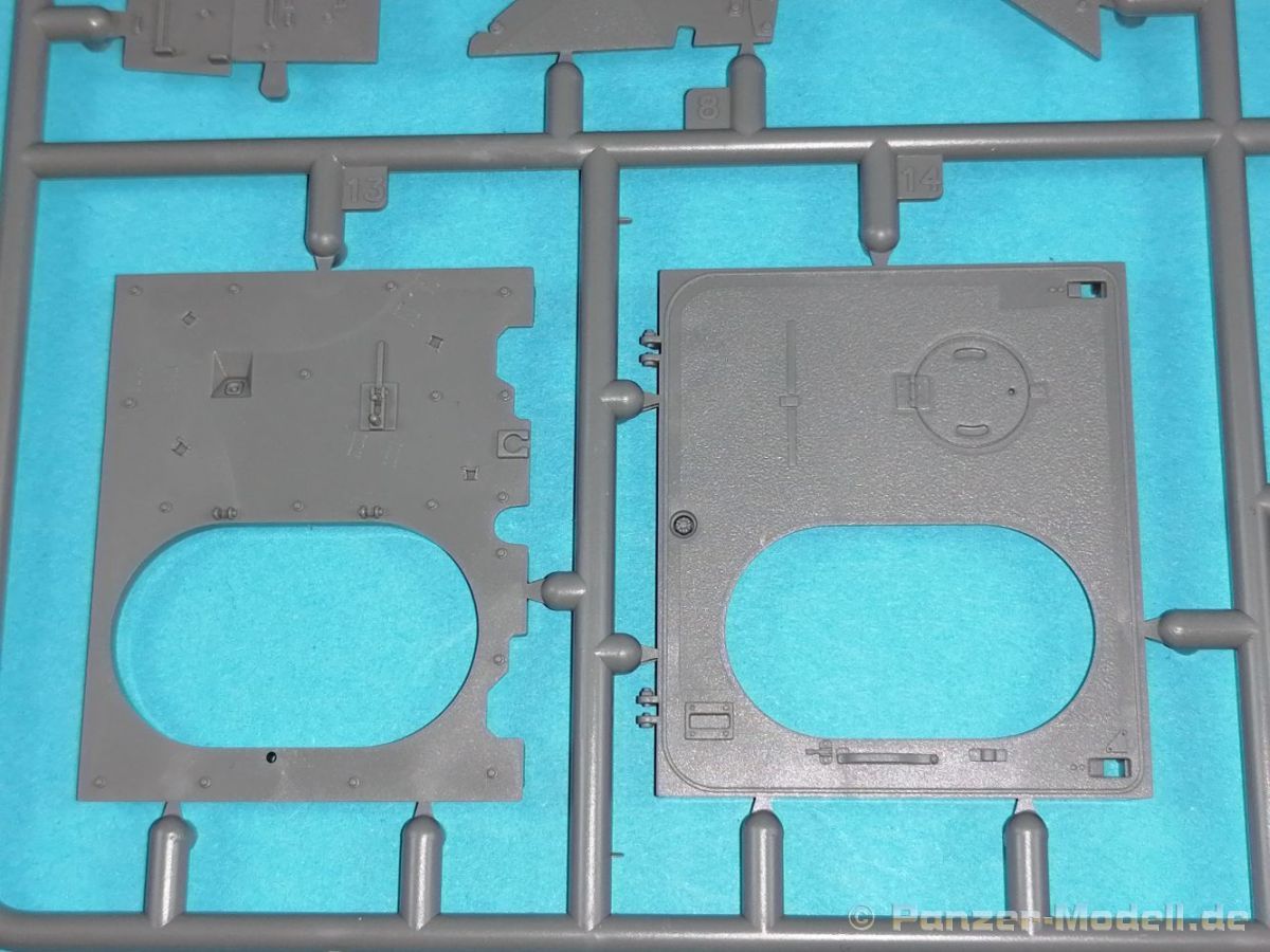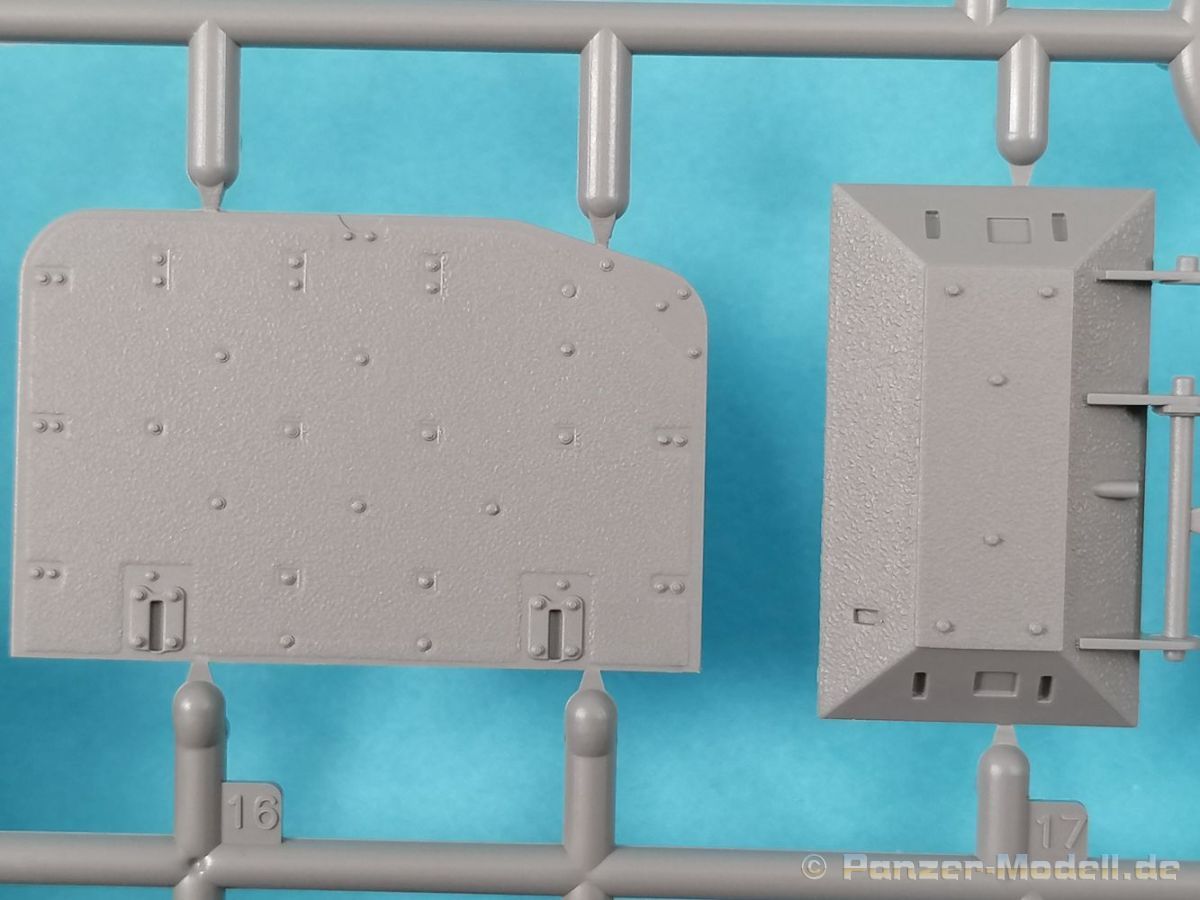 Auch Magic Factory hat sich mittlerweile dem Bradley zugewandt. Gut verpackt kommen die Bauteile in einem Top-Opener mit den Maßen 35x24x11,5 cm auf unsere Basteltische. 17 Rahmen in einem angenehmen Hellgrau, ein Spritzling mit Klarteilen, eine Panzer- und Oberwanne, dazu zwei PE-Platinen, einige Vinylteile und ein Decalbogen sowie eine kleinere als DIN-A4 Bauanleitung in Heftform. Schon auf den ersten Blick zeigt sich der Guß der Bauteile auf allerhöchstem Niveau. Es macht schon Spaß sich die einzelnen Gußrahmen Stück für Stück näher anzusehen. Auswerfermarken, Fischhaut, Senker, Formenversatz und/oder verzogene Teile sind keine auszumachen. Auswerfer sind samt und sonders in Bereichen die sich nach dem Zusammenbau dem Blick entziehen. Punkten können bei den Bauteilen die durchweg scharfen Details. Das gilt ebenso für die kleinen Teile. Erste Sahne! Eine Probepassung von Unter- und Oberwanne, absolut perfekt und spaltenfrei, deutet auch auf eine sehr gute Passform des Bausatzes hin. Wo nötig wurde die Slide-Mould-Technik angewandt. So sind die Mündungen der kleinsten Rohre der Waffen offen. Die Mündungsbremse der Maschinenkanone ist hervorragend umgesetzt und bedarf keinerlei Nacharbeit. Ebenfalls interessant die Tatsache das der Antirutschbelag feinst wiedergegeben ist. Hier kann eigentlich alles überzeugen. Auch kleinsten Details wie Nieten, Bolzen, Scharnieren, Verschlüssen etc. wurde Beachtung geschenkt. Die Klarteile, die ihren Namen zu Recht verdienen, geben keinen Anlaß zur Kritik. Alles schick! Die PEs, geschützt durch zwei Folien reihen sich in ihrer Feinheit in die hohe Qualität des Kits ein. Vorteil der größeren Platine sind bereits versäuberte Teile die direkt verbaut werden können. Auf der kleineren Platine finden sich diverse Abdeckgitter und als Gimmick noch eine Schablone für die Laufrollen. Was will man mehr. Einen überzeugenden Eindruck hinterlassen die Decals, die absolut im Register sind und auch farblich gefallen. Die noch offenen Vinylteile (Abdeckungen etc.) würde ich nicht verwenden da eine Verklebung schlecht oder gar nicht zu realisieren ist. Das kann aber jeder für sich entscheiden. Und damit geht es auch schon zur Bauanleitung. Diese umfasst 22 Seiten und bringt das Modell in 46 Baustufen zum Abschluß. Für die Bemalungsvorschläge etc. gibt es zusätzlich ein vierseitiges Faltblatt mit weiteren Informationen und Hinweisen. Während auf dem Deckblatt der Panzer im Riß mit seinen drei Varianten abgebildet ist geht es auf der nächste Seite mit einem Text zum Original weiter (chinesisch und englisch). Dazu die üblichen Hinweise zum Werkzeug und die Piktogramme für den Bau. Auf Seite zwei folgt dann wie gewohnt die Übersicht aller Bauteile bevor der Bau auf Seite drei startet. Anmerkung: Vor Baubeginn sollte man sich mit der Anleitung vertraut machen. Diese ist relativ komplex und enthält in den einzelnen Schritten evtl. leicht übersehbare Hinweise. Der geneigte Modellbauer sollte sich zuerst die Version aussuchen die er bauen möchte und anschließend die Hinweise in der Anleitung markieren. Denn nichts ist frustrierender als wenn man vom “rechten Pfad” abgewichen ist und das zu spät merkt. Da die Schrift relativ klein ist könnte eine Lupembrille von Vorteil sein.