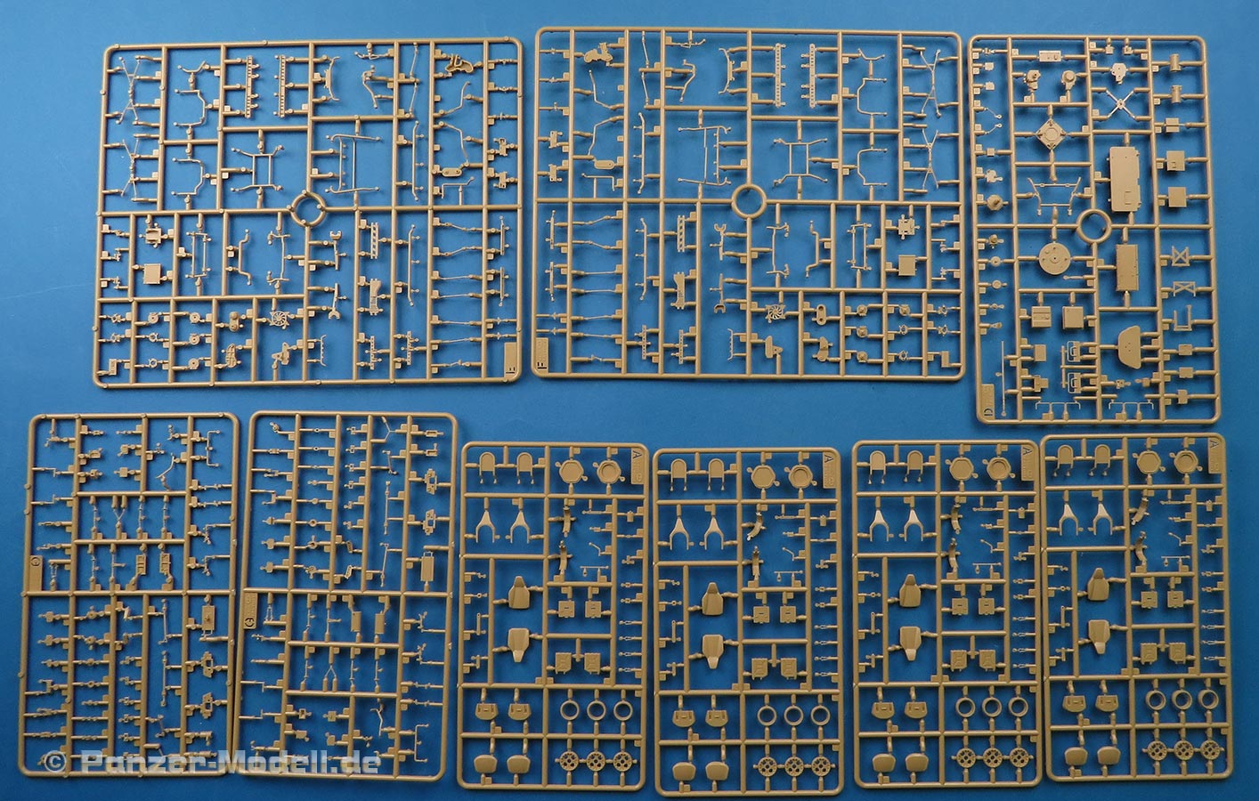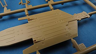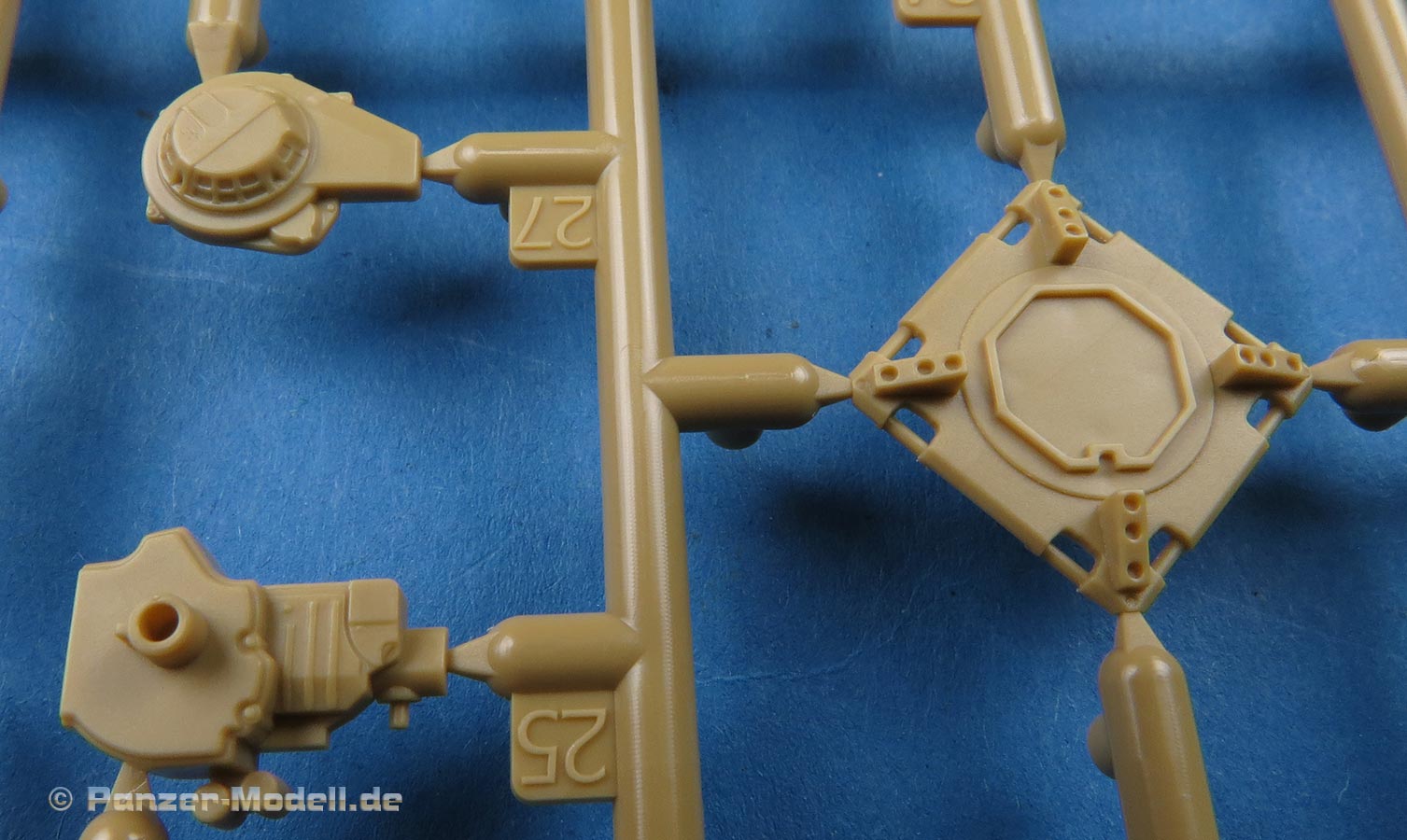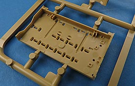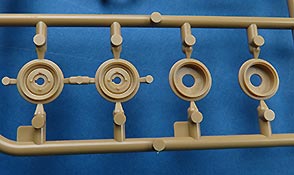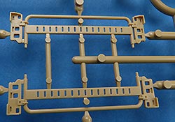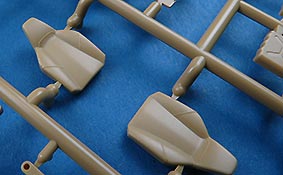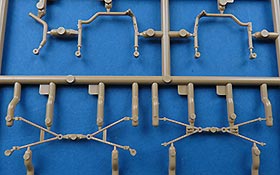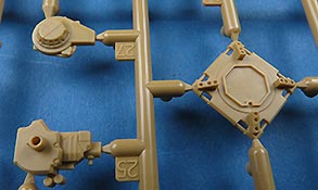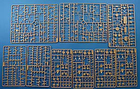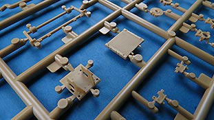 Die Teile sind sauber ausgespritzt, mit scharfen Details, ohne Versatz und Verzug. Angüsse sind so angebracht, dass ein Abtrennen der Teile einfach und ohne große Nacharbeit vonstattengehen sollte. Auswerfer sind oft nur flach und meist auf die Angüsse gesetzt oder auf Innenseiten von Teilen, die nach dem Bau kaum mehr einsehbar sind.