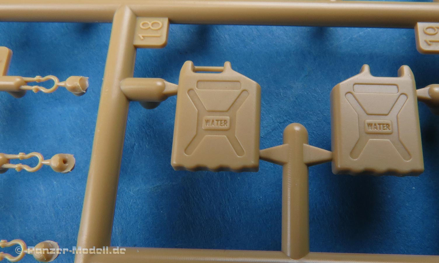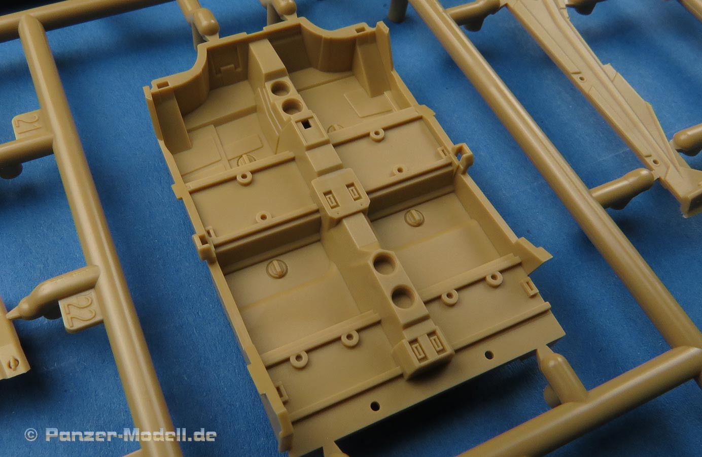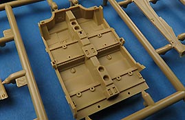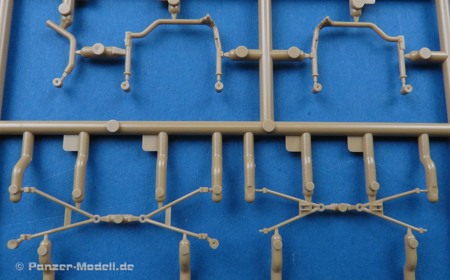 Die Teile sind sauber ausgespritzt, mit scharfen Details, ohne Versatz und Verzug. Angüsse sind so angebracht, dass ein Abtrennen der Teile einfach und ohne große Nacharbeit vonstattengehen sollte. Auswerfer sind oft nur flach und meist auf die Angüsse gesetzt oder auf Innenseiten von Teilen, die nach dem Bau kaum mehr einsehbar sind.