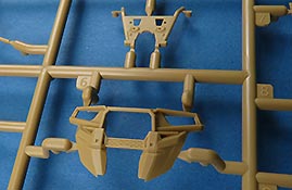 Für die normale Version liegen 4 mehrteilige Sitze, für die Anti-Dronen Version nur 2 Sitze bei. Der Überrollkäfig setzt sich aus mehreren Streben zusammen, die alle sauber und fehlerfrei gespritzt sind - die Herausforderung liegt vermutlich darin, alles so miteinander zu verkleben, dass alle Endstücke Kontakt haben und am Ende nichts verzogen ist.