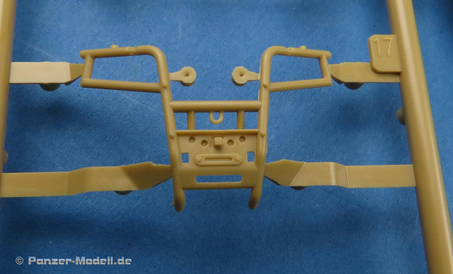 Die vordere Abdeckung ist mehrteilig und auch der Rammschutz setzt sich aus mehreren Teilen zusammen. Alles recht gefällig und sauber gespritzt.
