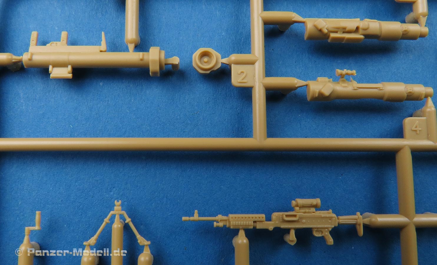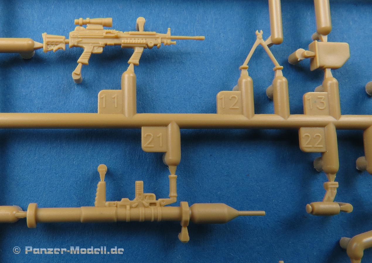 Dem Bausatz liegen auch ein Haufen sehr schöner und fein gespritzter Infanteriewaffen bei, die entweder einzeln oder am Fahrzeug lafettiert genutzt werden können.
