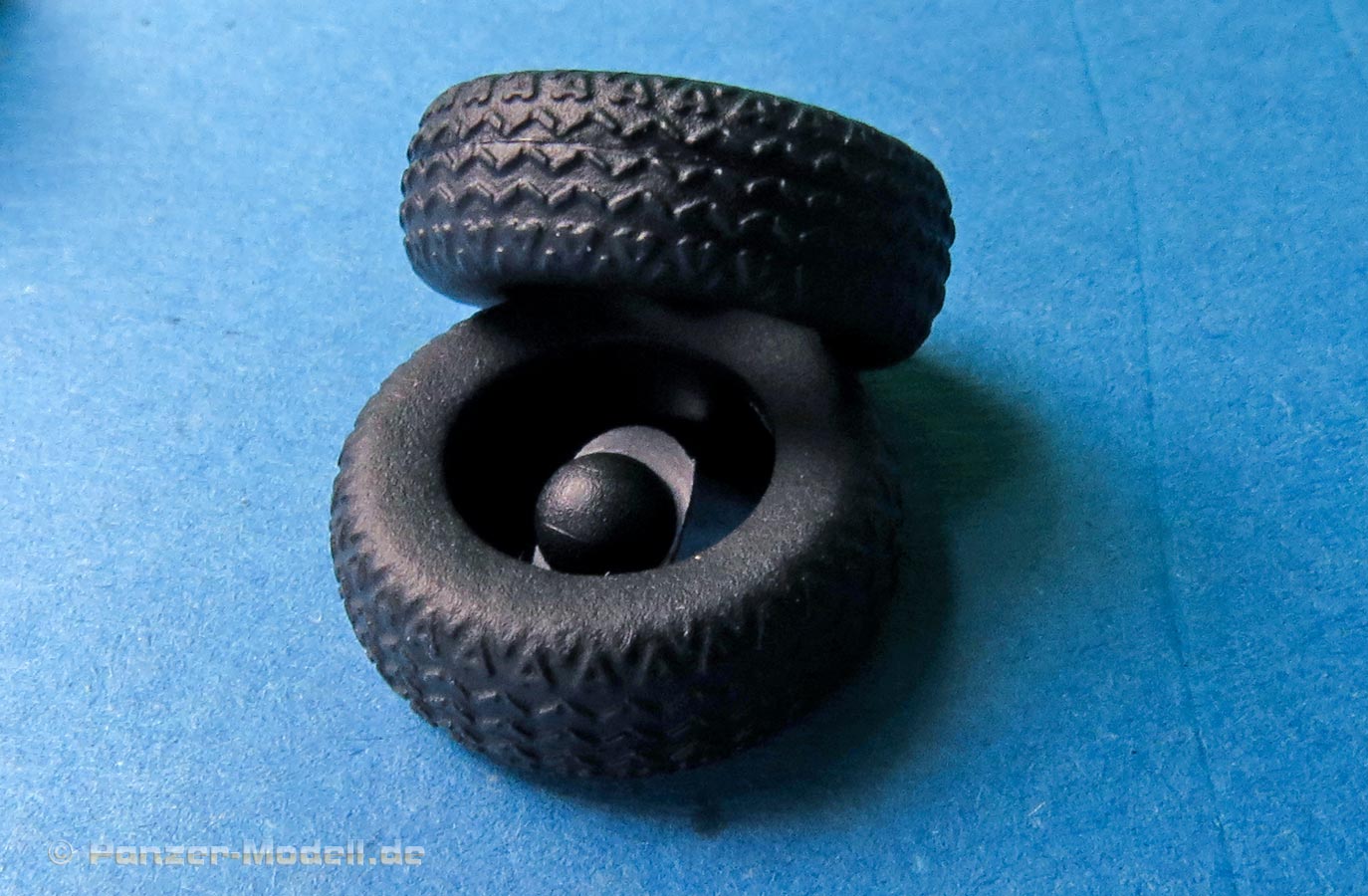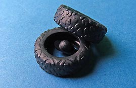 Die Reifen setzen sich aus einer zweiteiligen Felge aus Spritzguss und einem schwarzen Vinylreifen zusammen. die Reifen machen einen recht guten Eindruck mit passendem Profil.