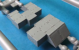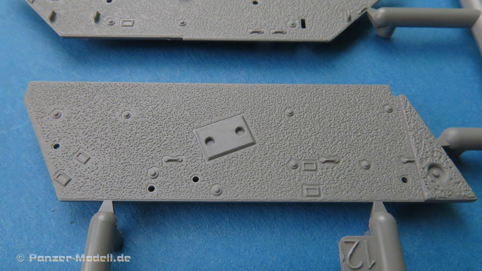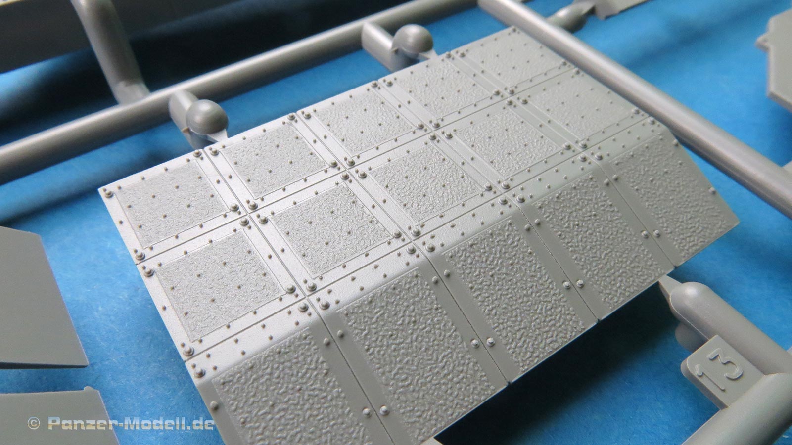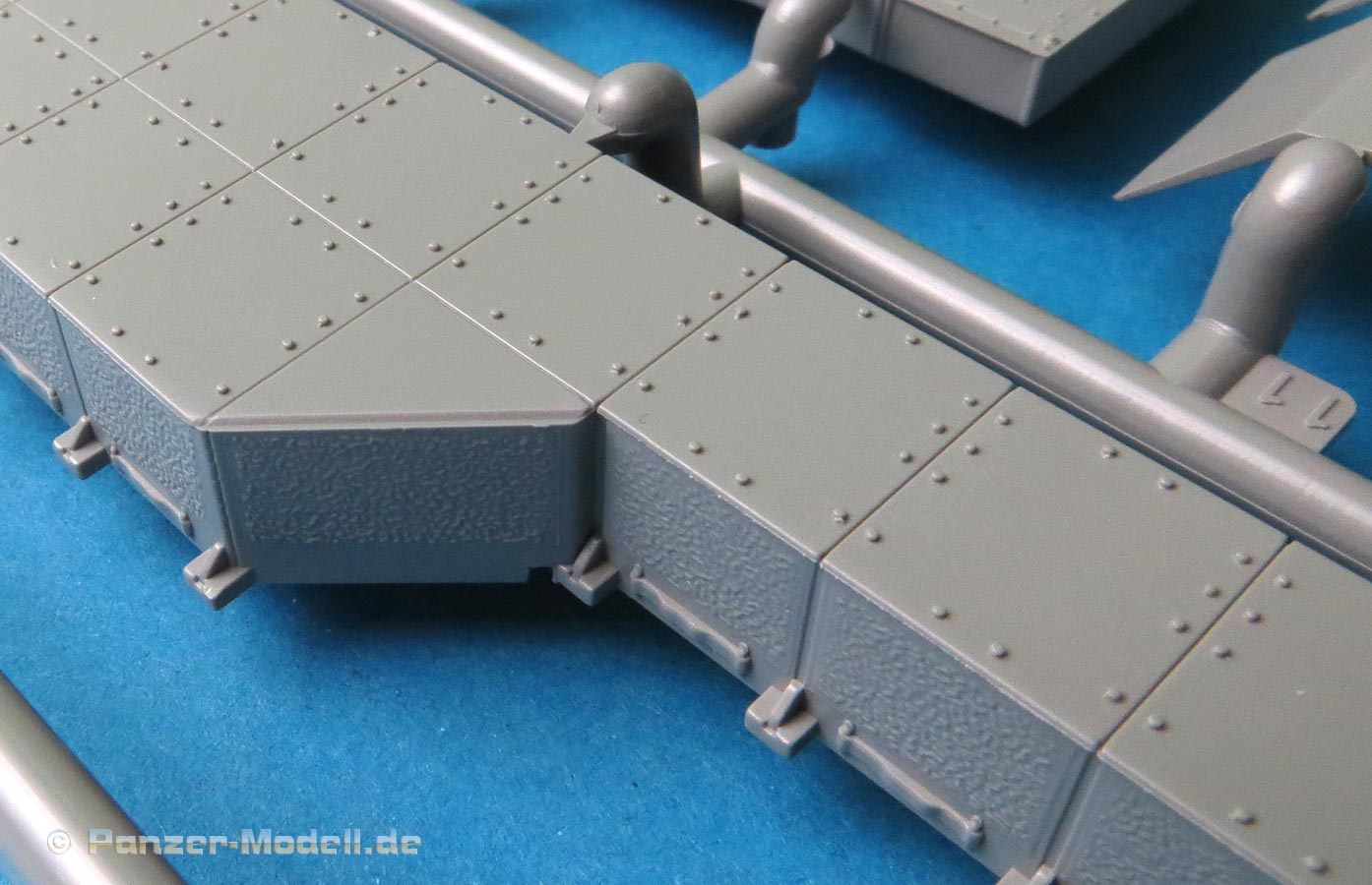 Die Zusatzpanzerungselemente kommen jeweils m ganzen Block der auf einem Halterahmen sitzt - die Details der Rillen und Schraubenköpfe ist superfein und sauber. Diese sind optional verbaubar.