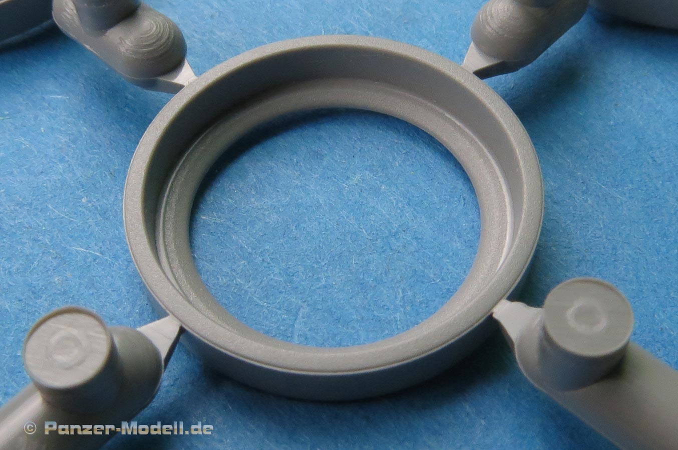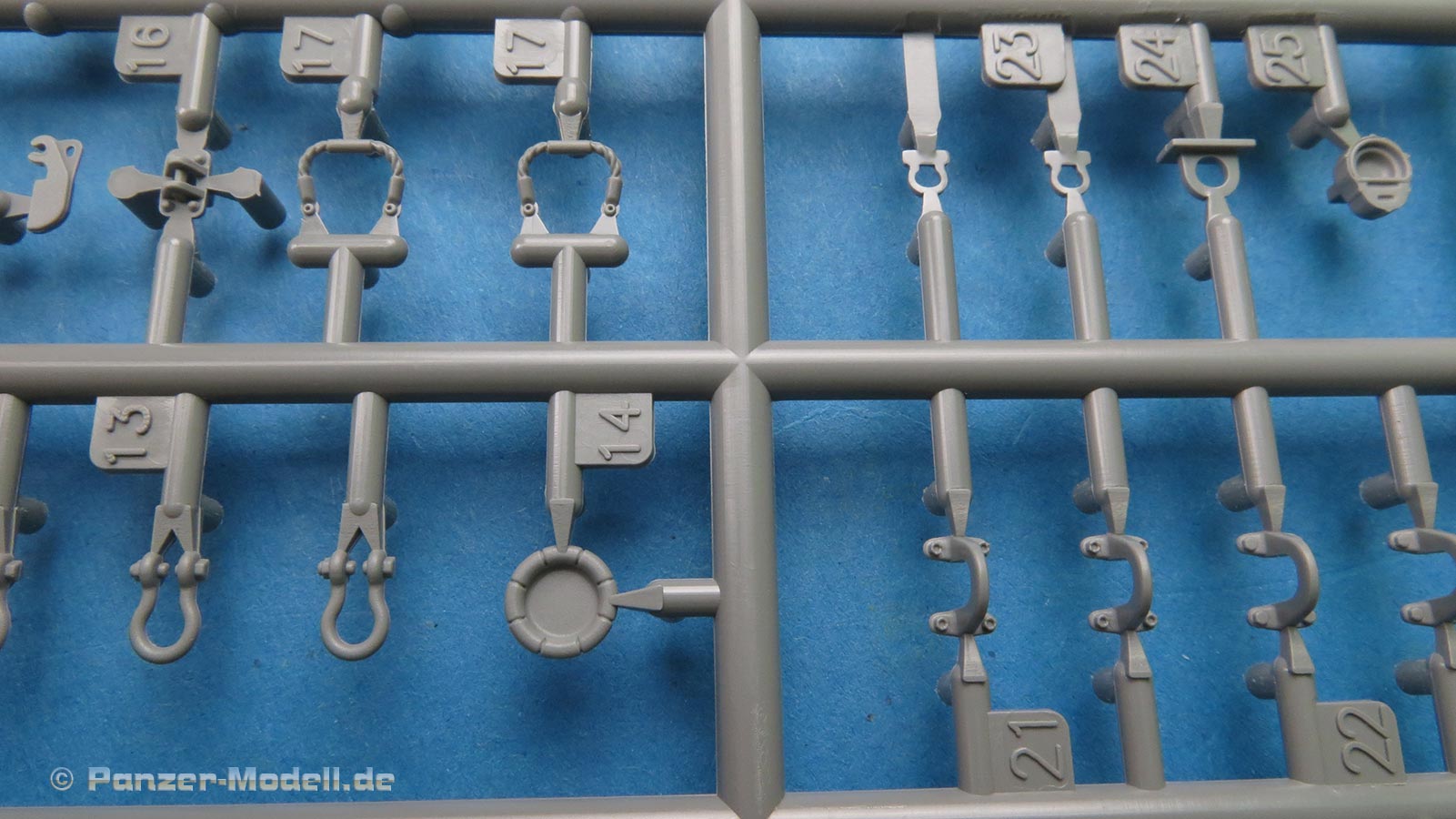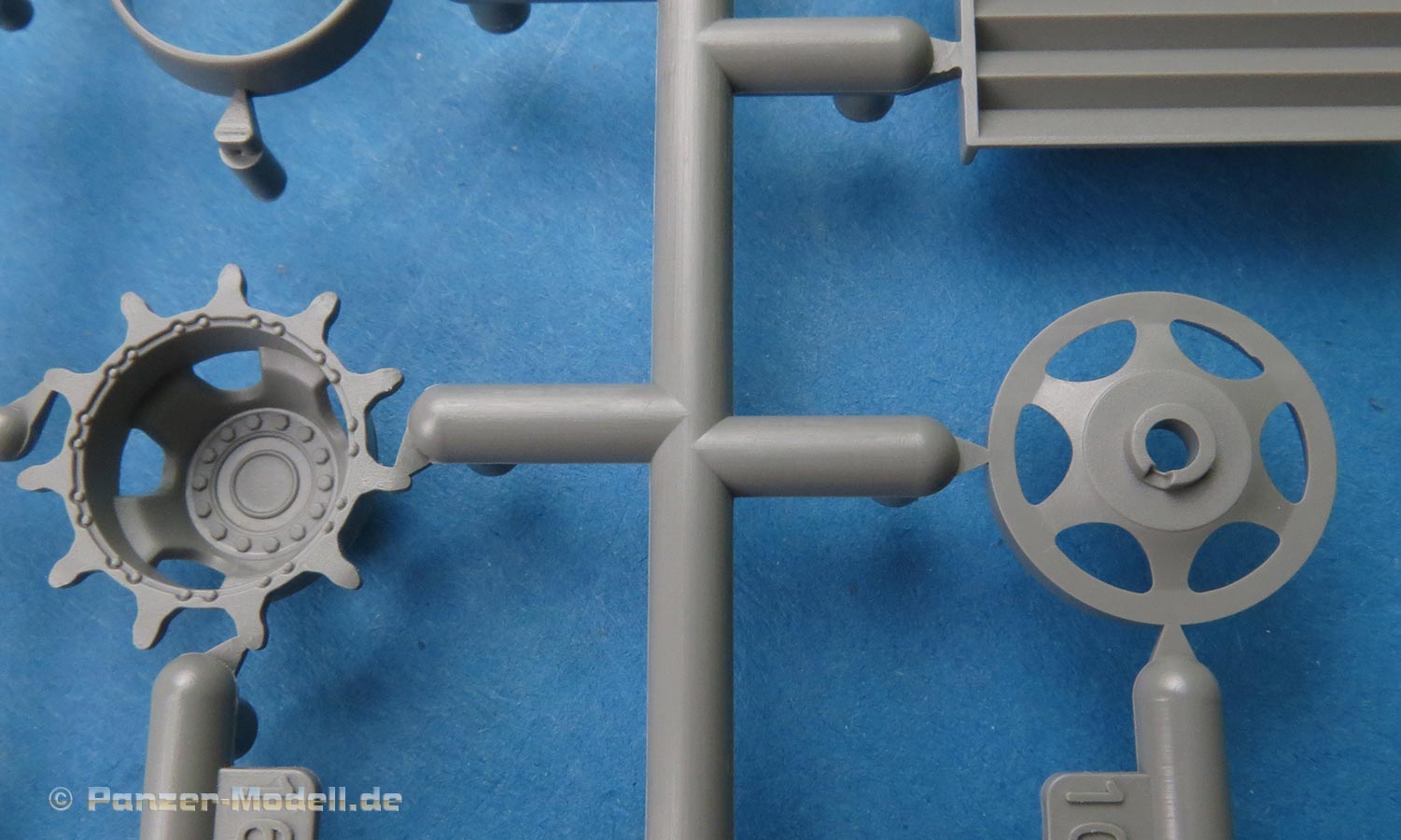 Die Einzelglieder zeigen leider auf jedem Glied deutliche Auswerfermarken, was schade ist, da es die sonst sehr schön detaillierten Ketten nach unten zieht. Wobei man auch hier schauen muss, dass diese Bereiche am Ende durch die Umläufe und auch durch die Seitenschürzen schwer einsehbar sind.