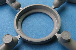 Die Laufrollen bestehen dabei aus den Felgenteilen und den beiden Gummierungen um die Hinterschneidung der Räder gut darzustellen.