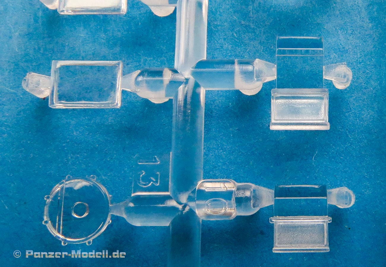 Die großen Schutzglasscheiben rund um die Kommandantenluke sind aus einem Gestell mit den einsetzbaren klaren Bauteilen.