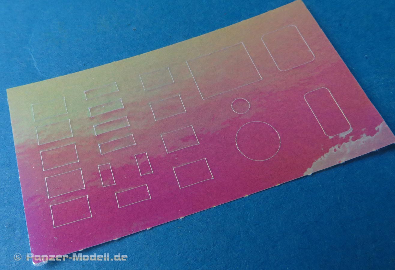 Die einzelnen Luken sind, wie oben schon erwähnt offen oder geschlossen baubar - und so wie es aussieht, bleiben diese sogar beweglich baubar. Die Details an den Luken sind ganz hervorragend, gerade mit den Winkelspiegeln. Für diese liegen zum einen irisierende Folien bei um diese farblich realistisch darzustellen aber auch Maskierfolien bei um sie bei der Bemalung vor Farbe zu schützen.