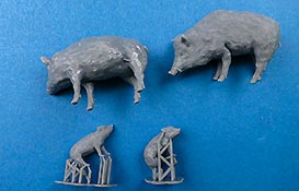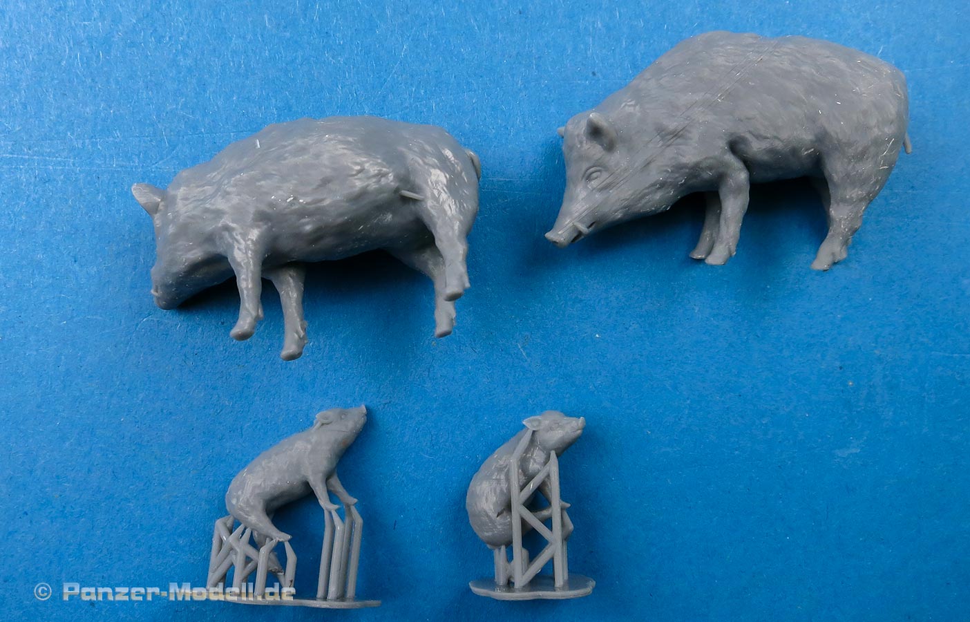 Im vorliegenden Set finden wir eine Druckplatte mit insgesamt 4 Figuren an Wildschweinen - zwei erwachsene Tiere und zwei Frischlinge.