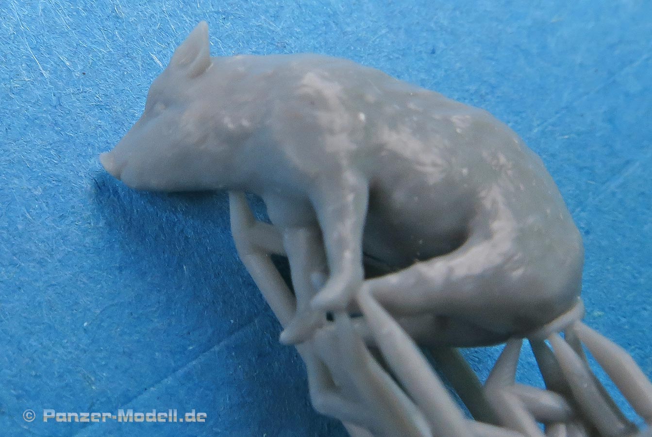 Auf den ersten Blick schöne, feine Details, die im Vergleich zu vorigen Resingusstieren deutlich im Detailgrad zugelegt haben. Allerdings lassen sich hier und da ein paar Drucklinien ausmachen, die man ggf. etwas versäubern müsste.