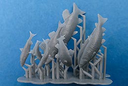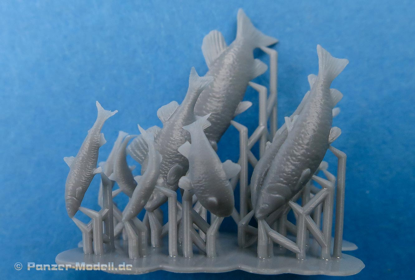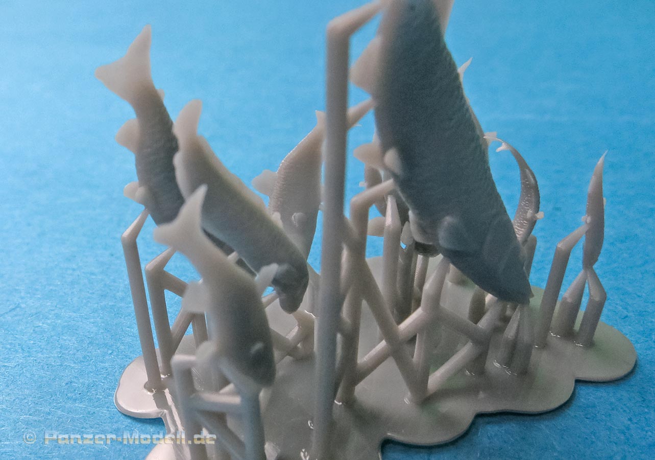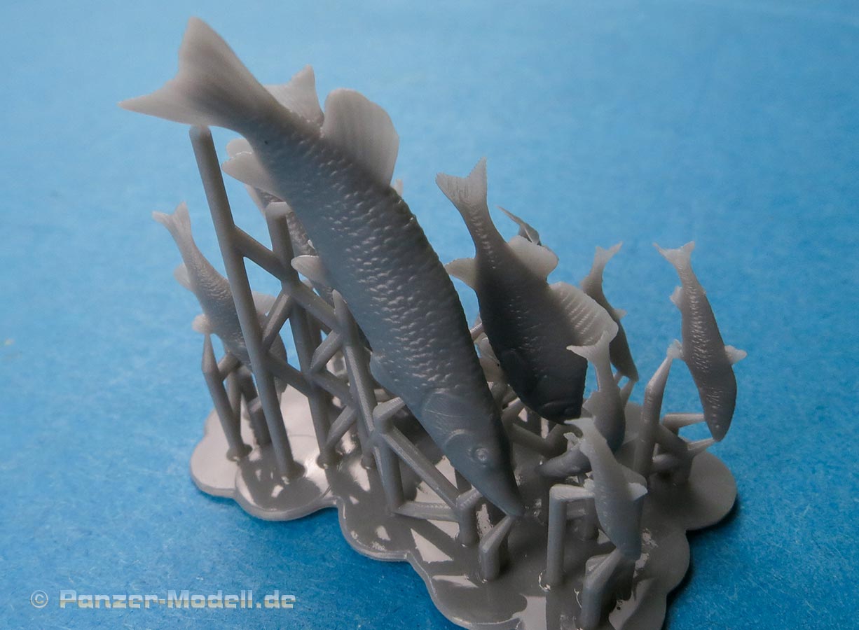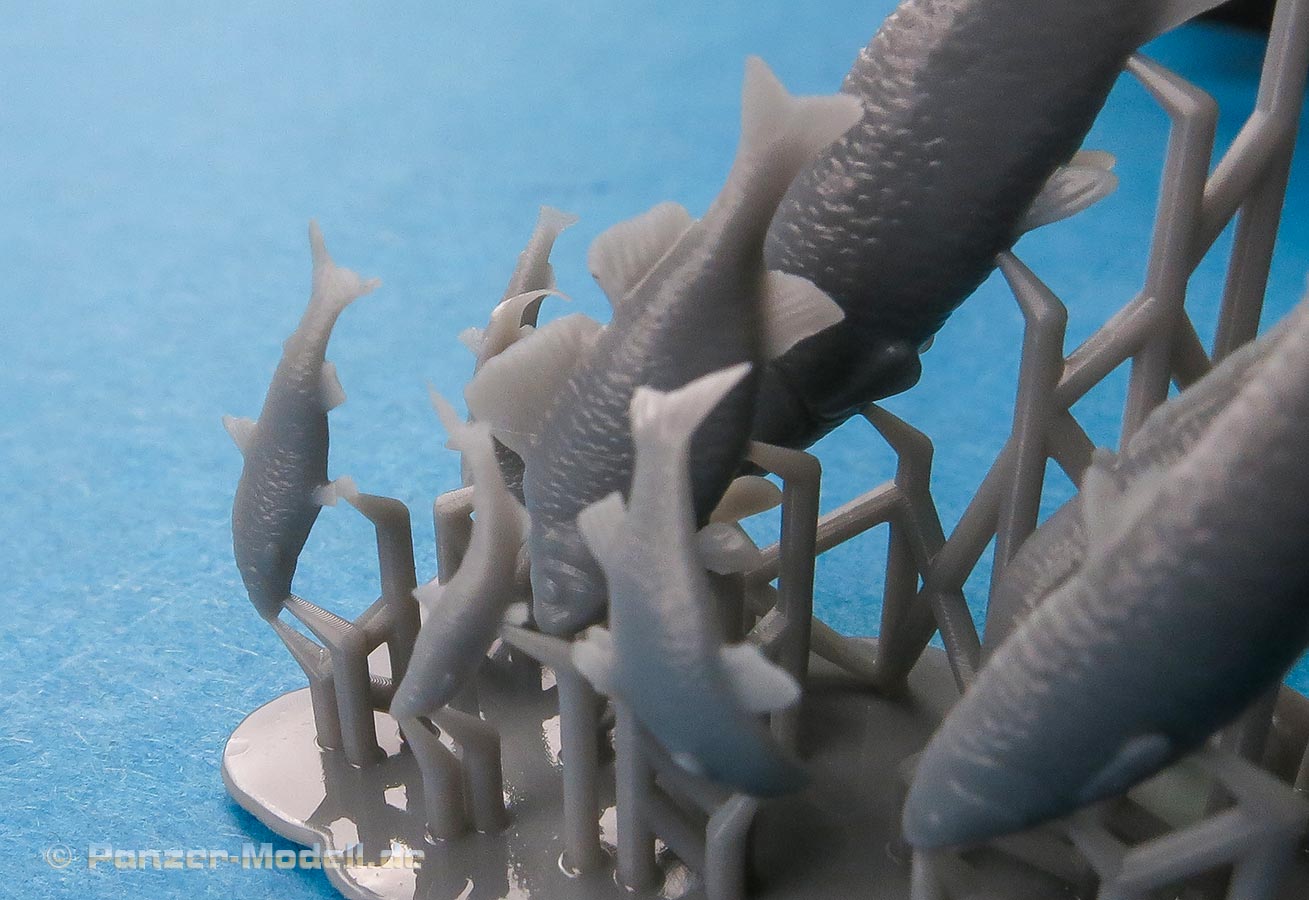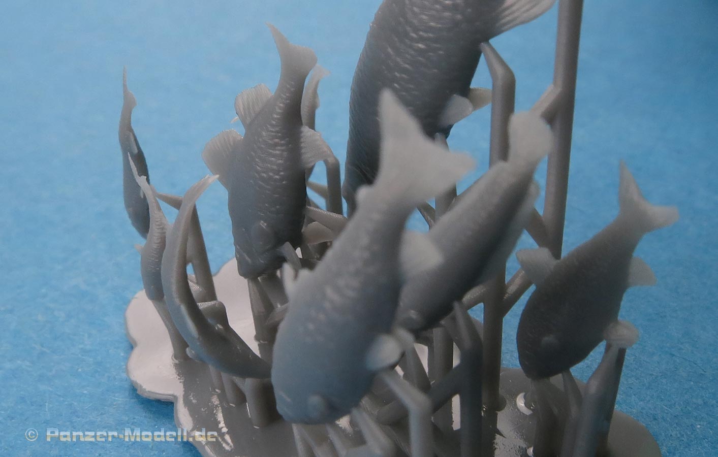 Bei allen Fischen kann man schön eine detaillierte Schuppenstruktur erkennen. Die anderen Details wie die Maul, Augen und Flossen sind schön sauber und sehr fein dargestellt.